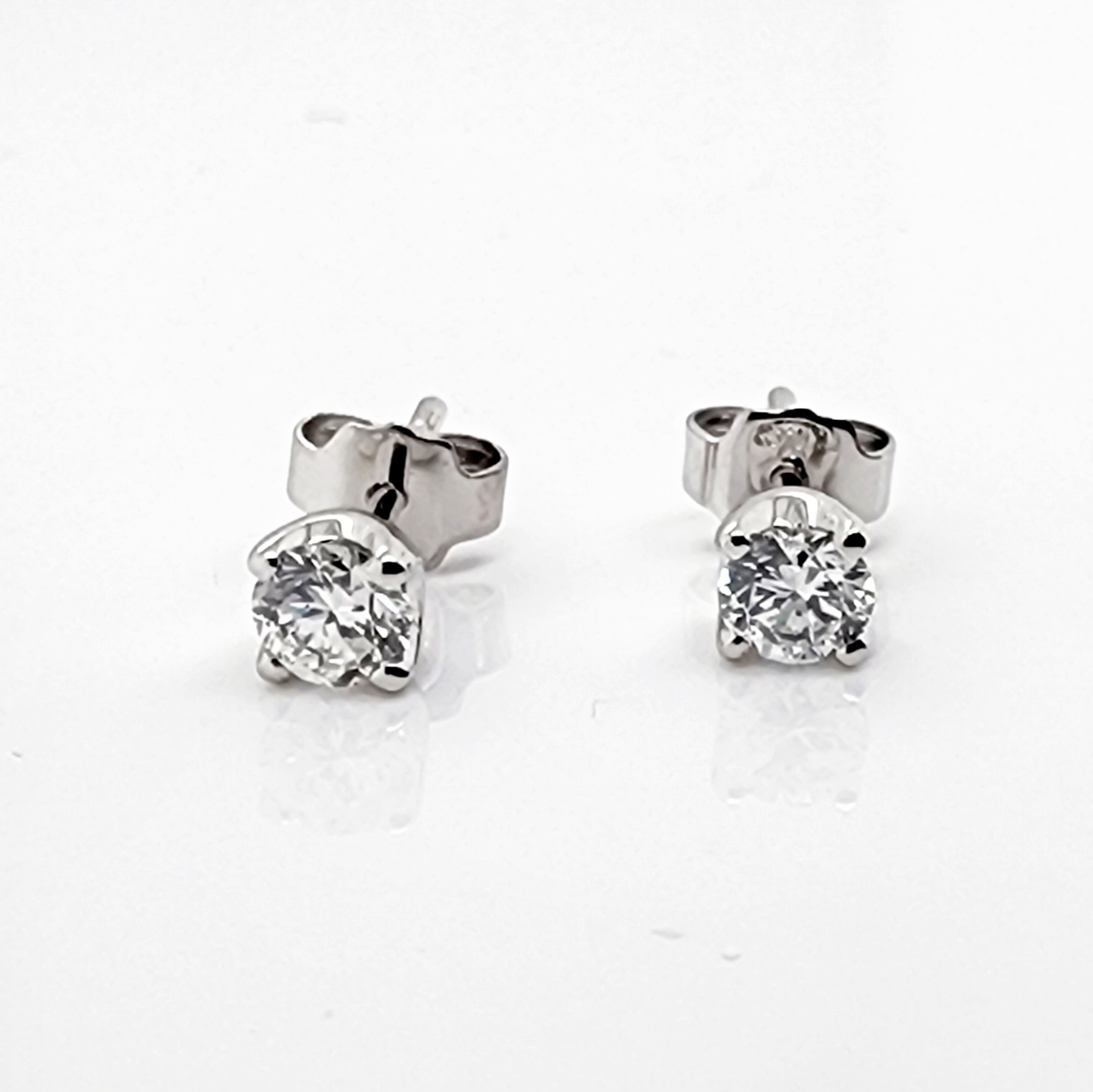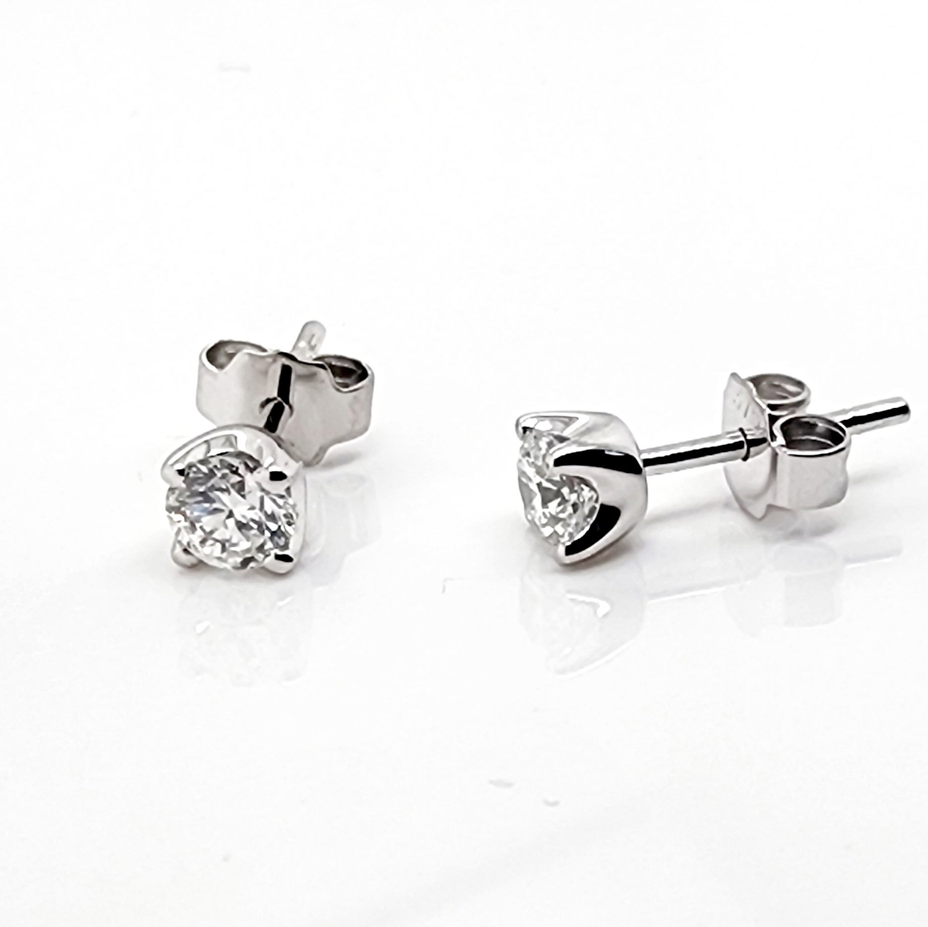 Crafted in 9ct white gold, these elegant stud earrings feature a total of 0.51 carats of lab-grown diamonds. Each earring is set with a single 4.1mm round brilliant cut diamond, securely held in a classic 4-claw setting. The studs are finished with traditional butterfly backs, ensuring a comfortable and secure fit for everyday wear.