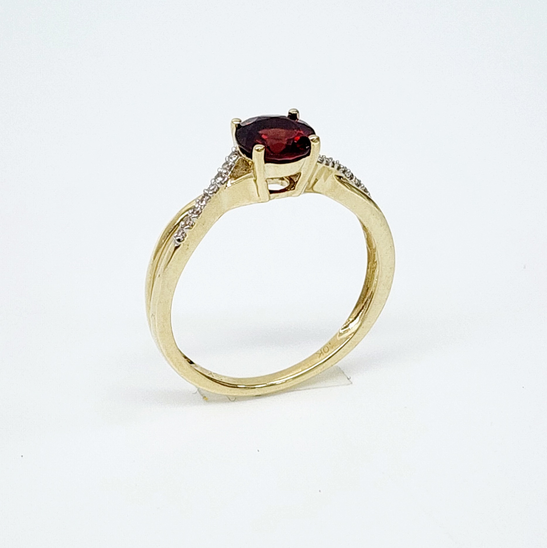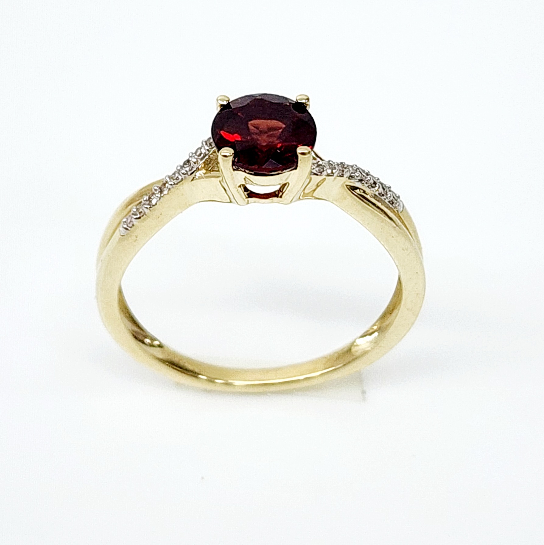 10ct Yellow Gold 0.05ct Diamond with 1.00ct Round Garnet Crossover Ring – SKR17132GT