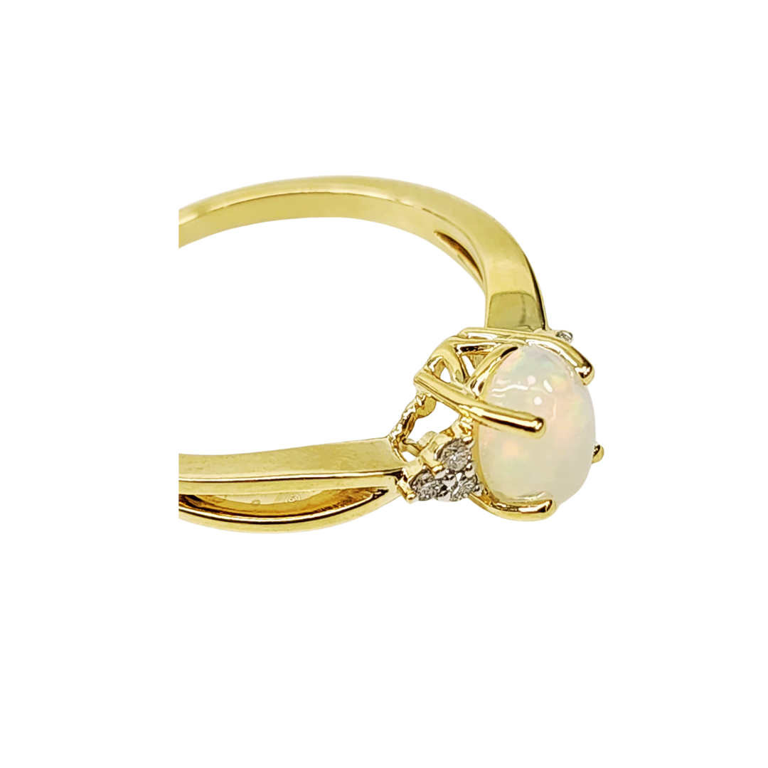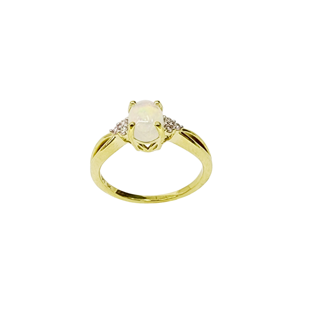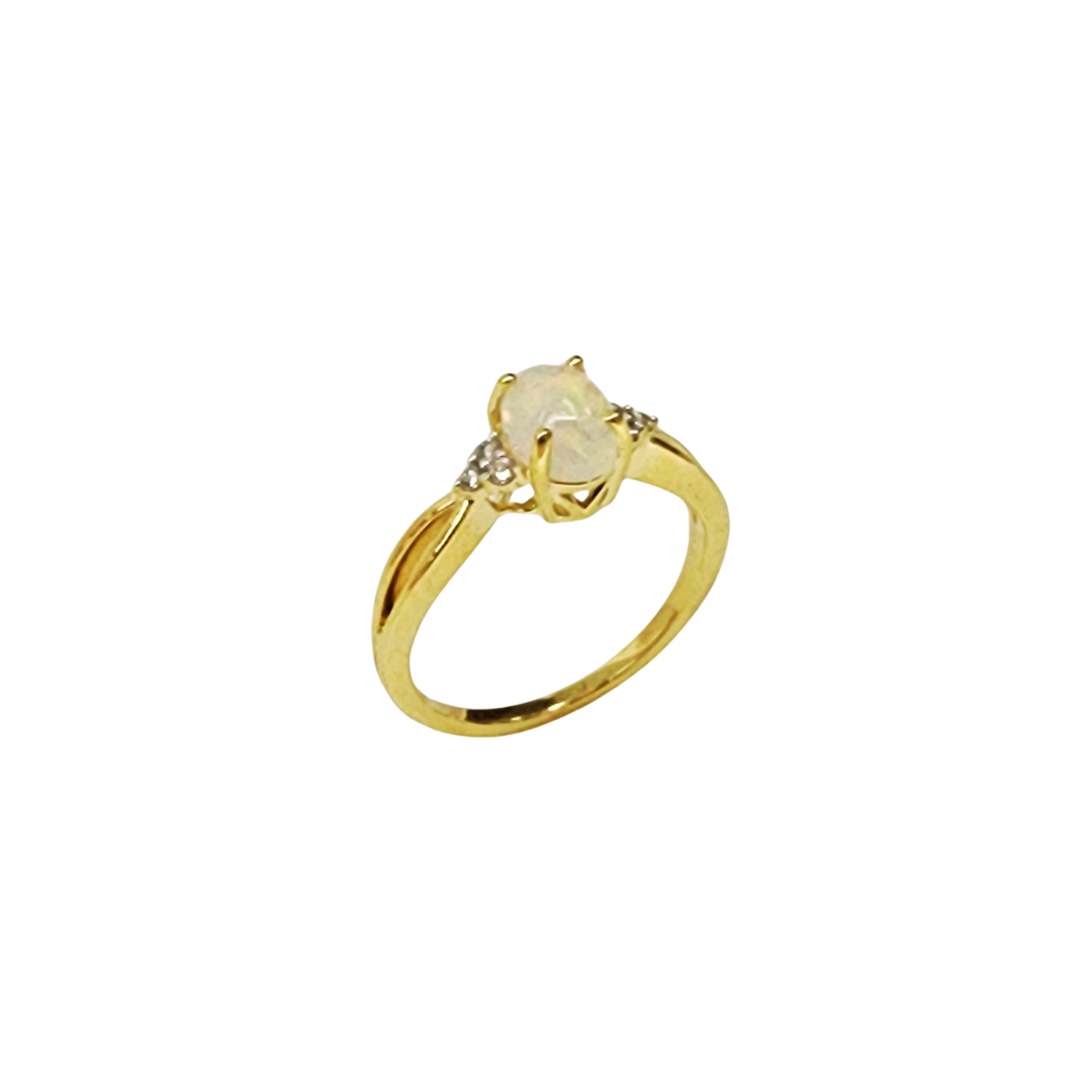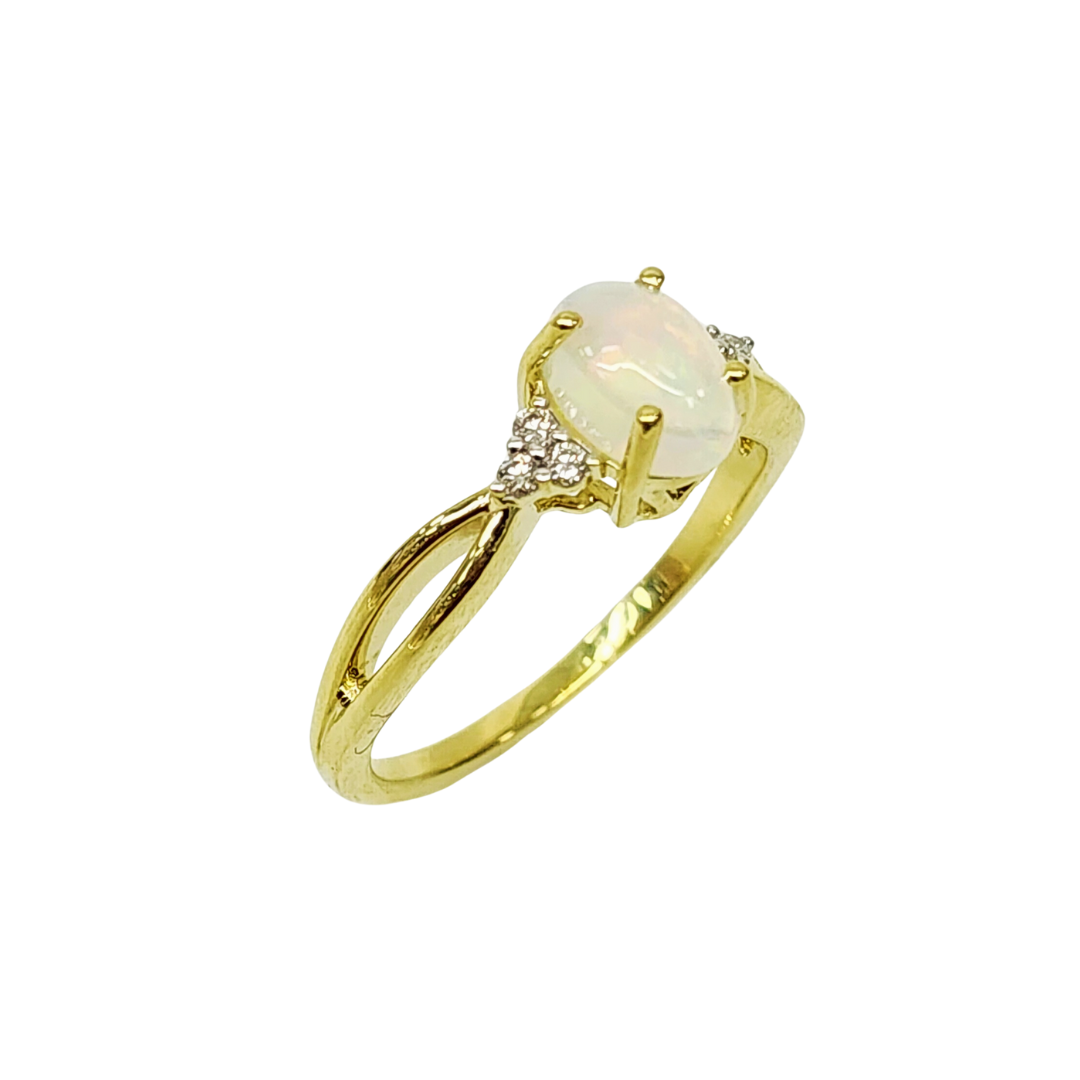 10ct Yellow Gold 0.65ct White Opal with Diamond Setting Ring
