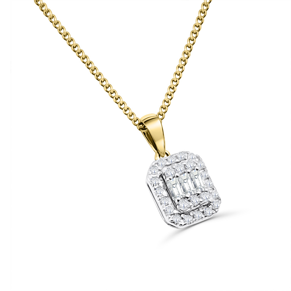 10ct Yellow Gold Baguette & Round Diamond Cluster Pendant