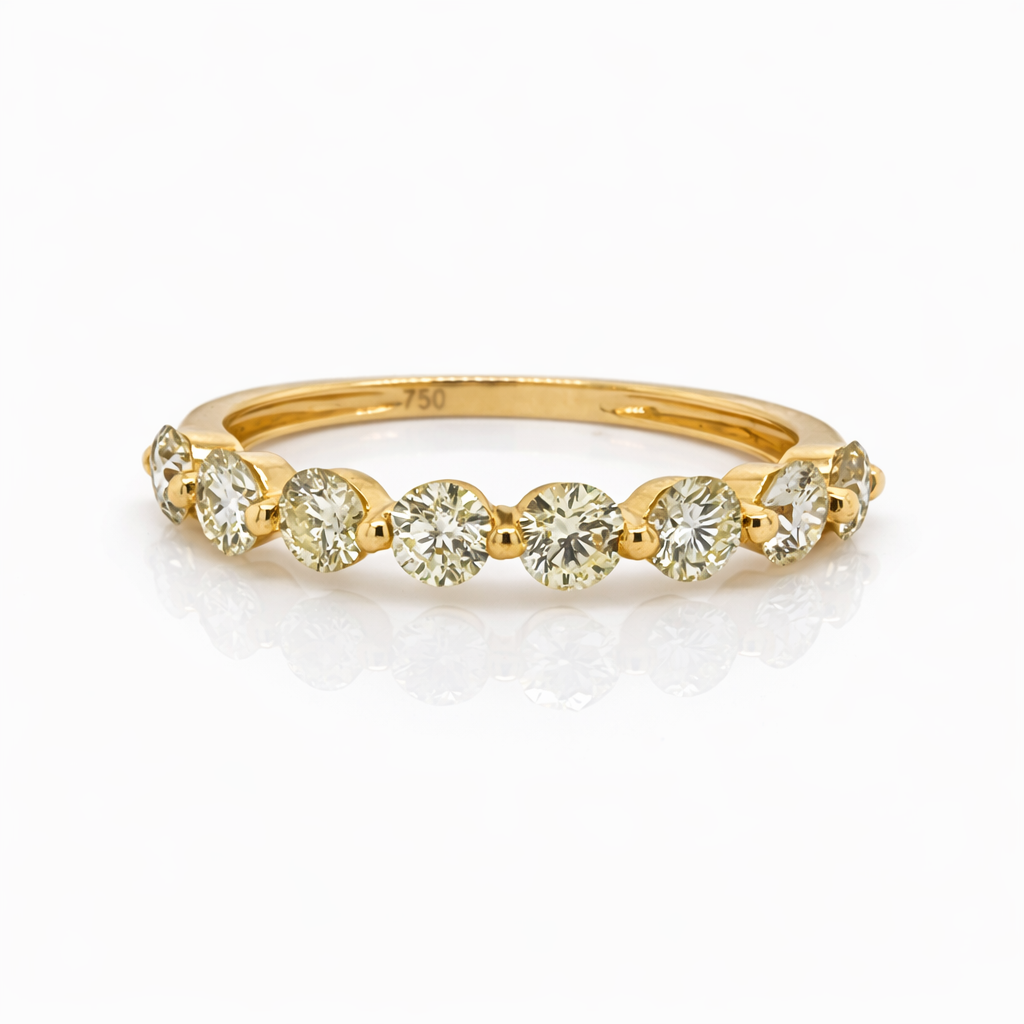 18ct Yellow Gold 0.748ct Natural Diamond Wedding Band 8 Stone Claw Set – 18KR39508EL