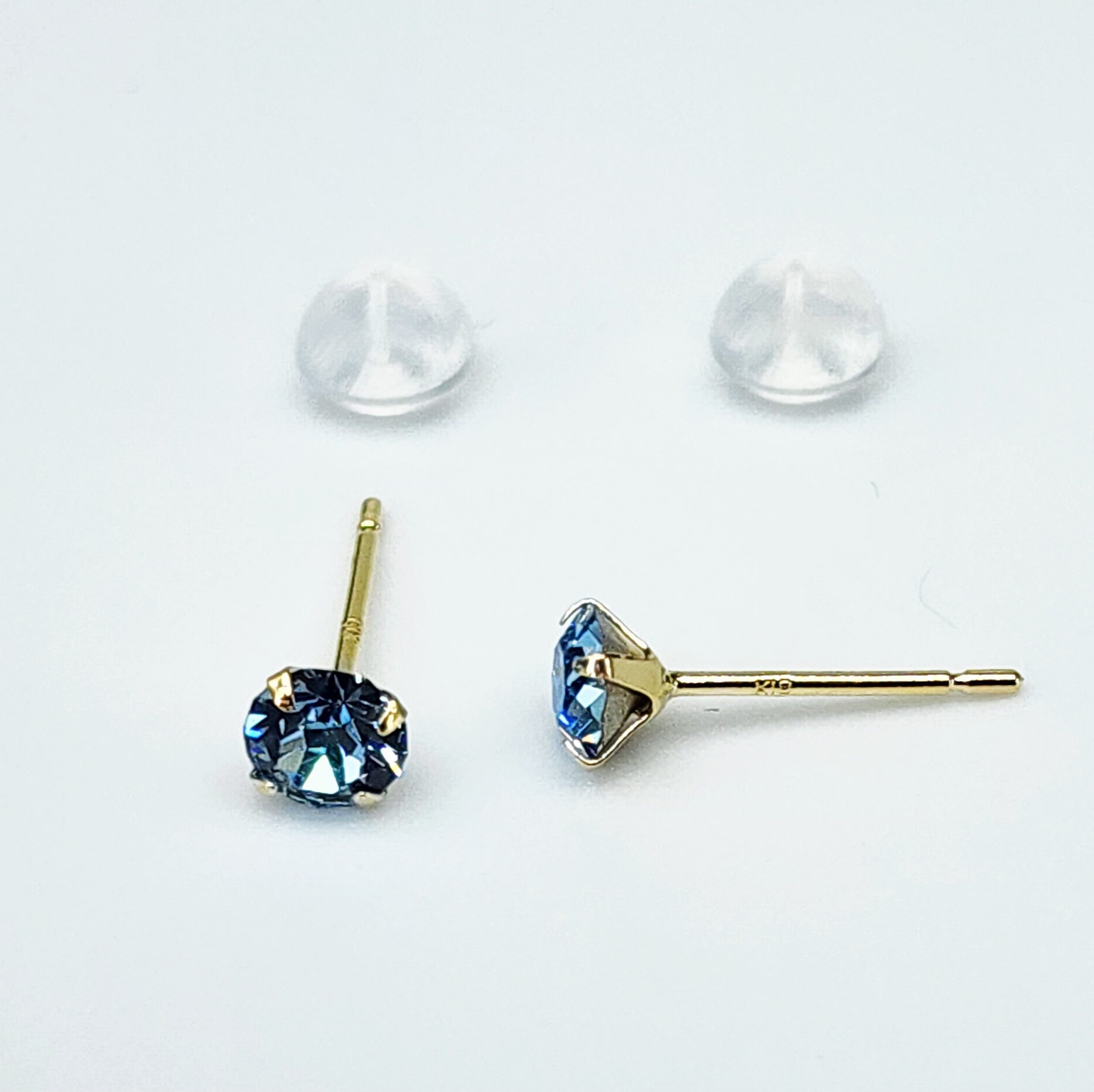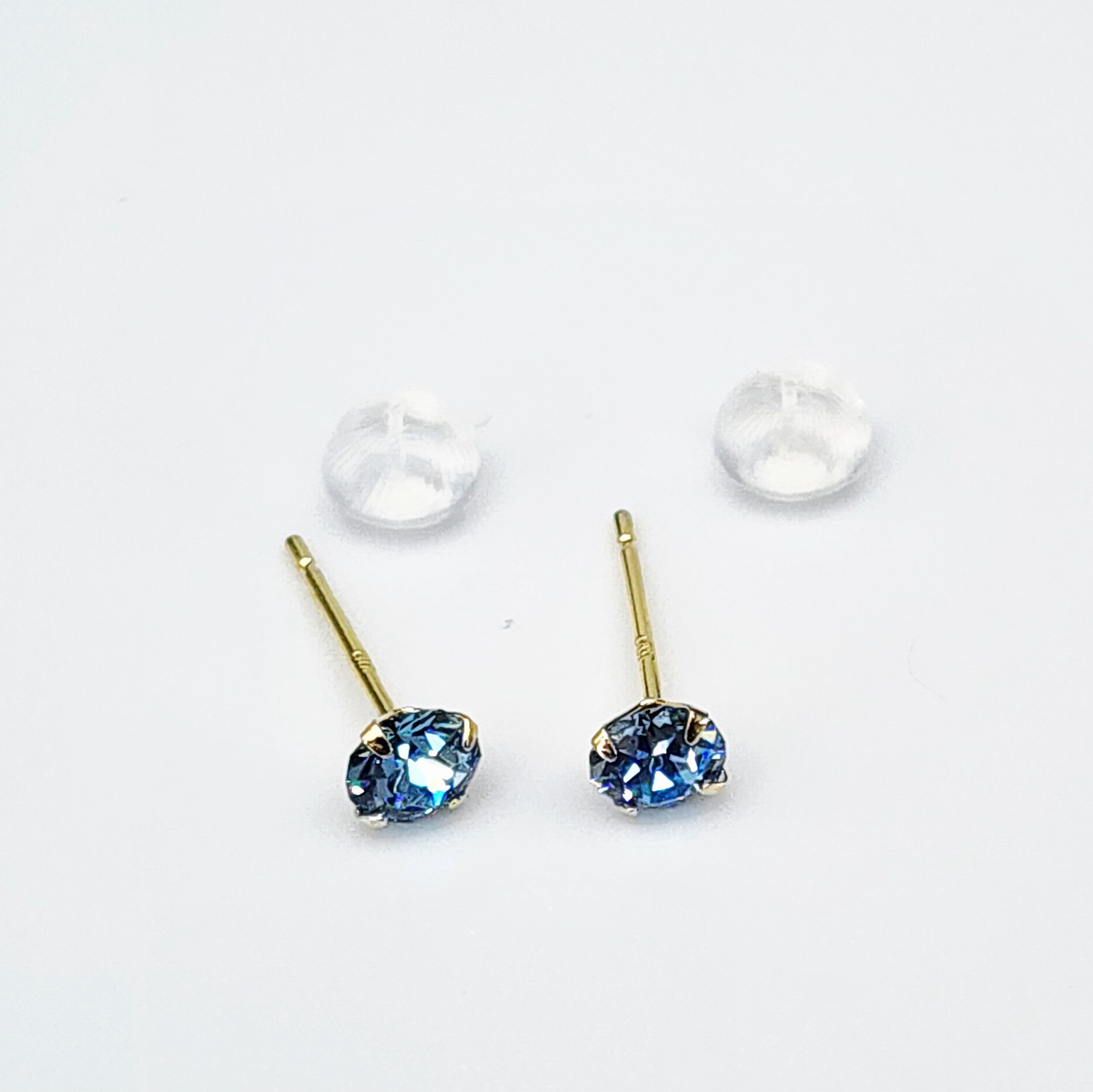 18ct Yellow Gold 4mm Round 4 Claw Blue Topaz Coloured Cubic Zirconia Stud Earrings – K18CZBLTOPAZ