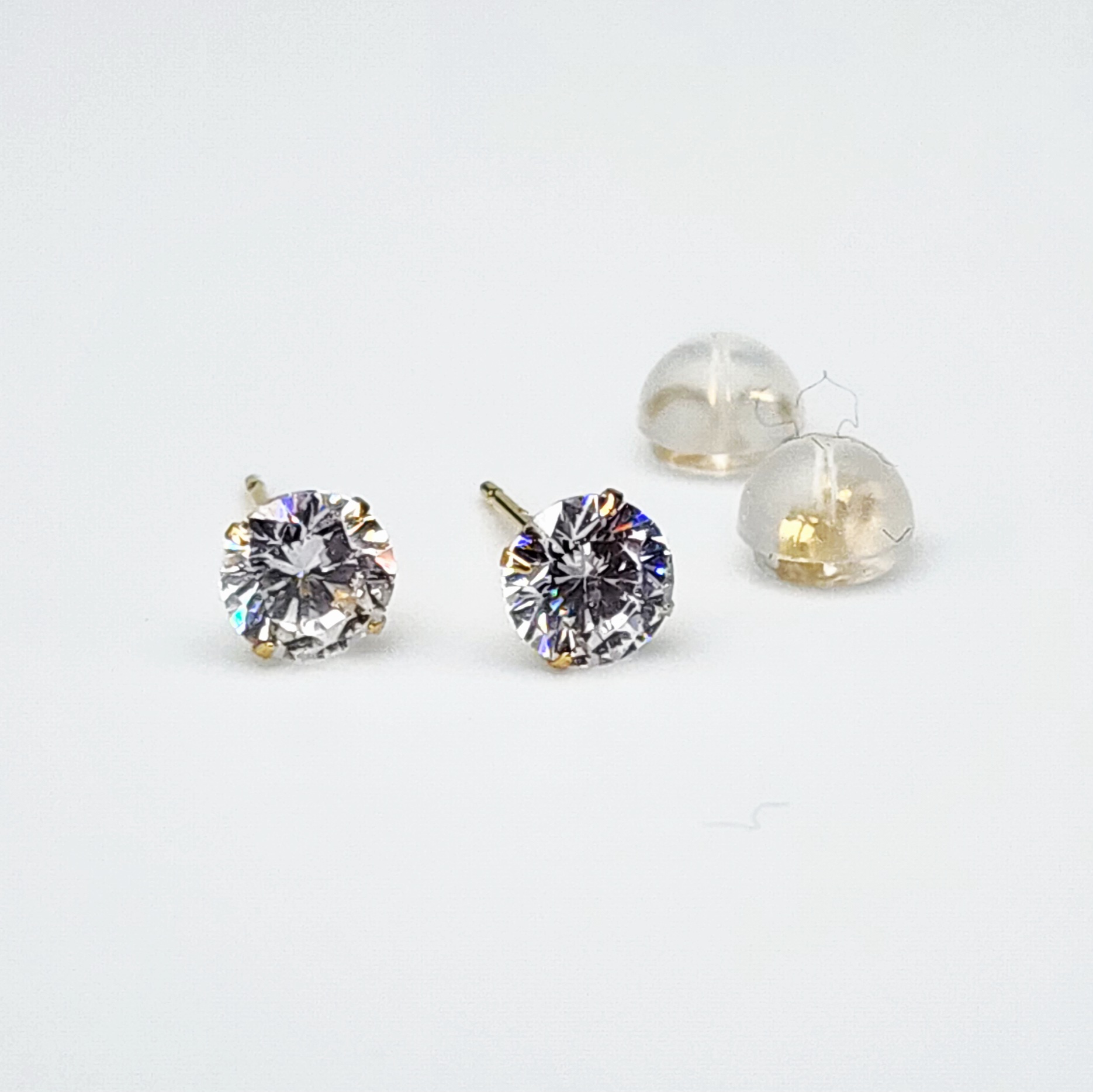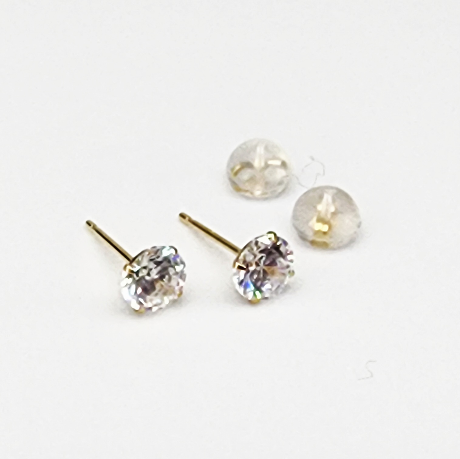 18ct Yellow Gold 5mm Round 4 Claw Cubic Zirconia Stud Earrings – K18-5MMCZ
