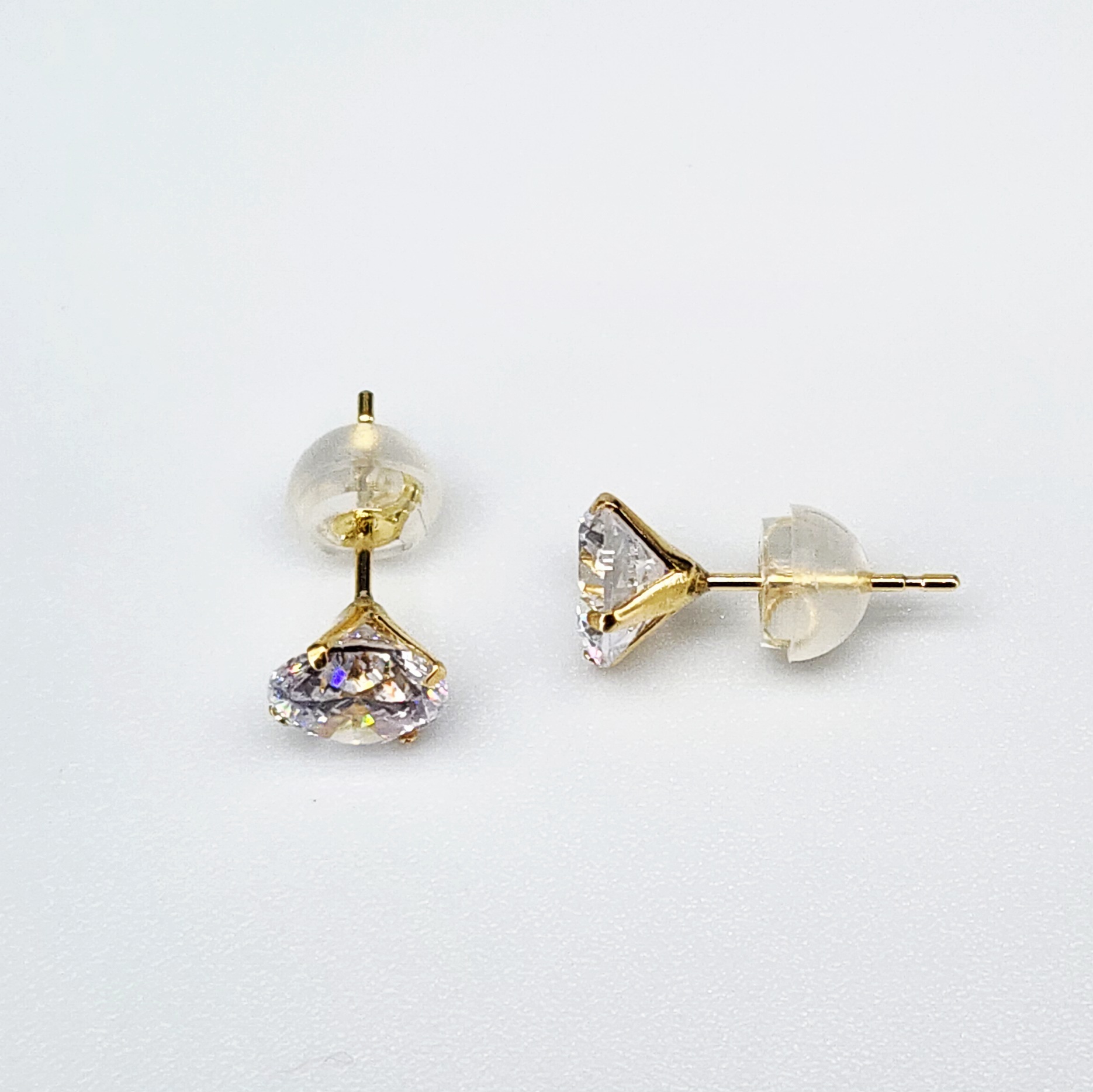 18ct Yellow Gold 6mm Round 4 Claw Cubic Zirconia Stud Earrings – K18-6MMCZ