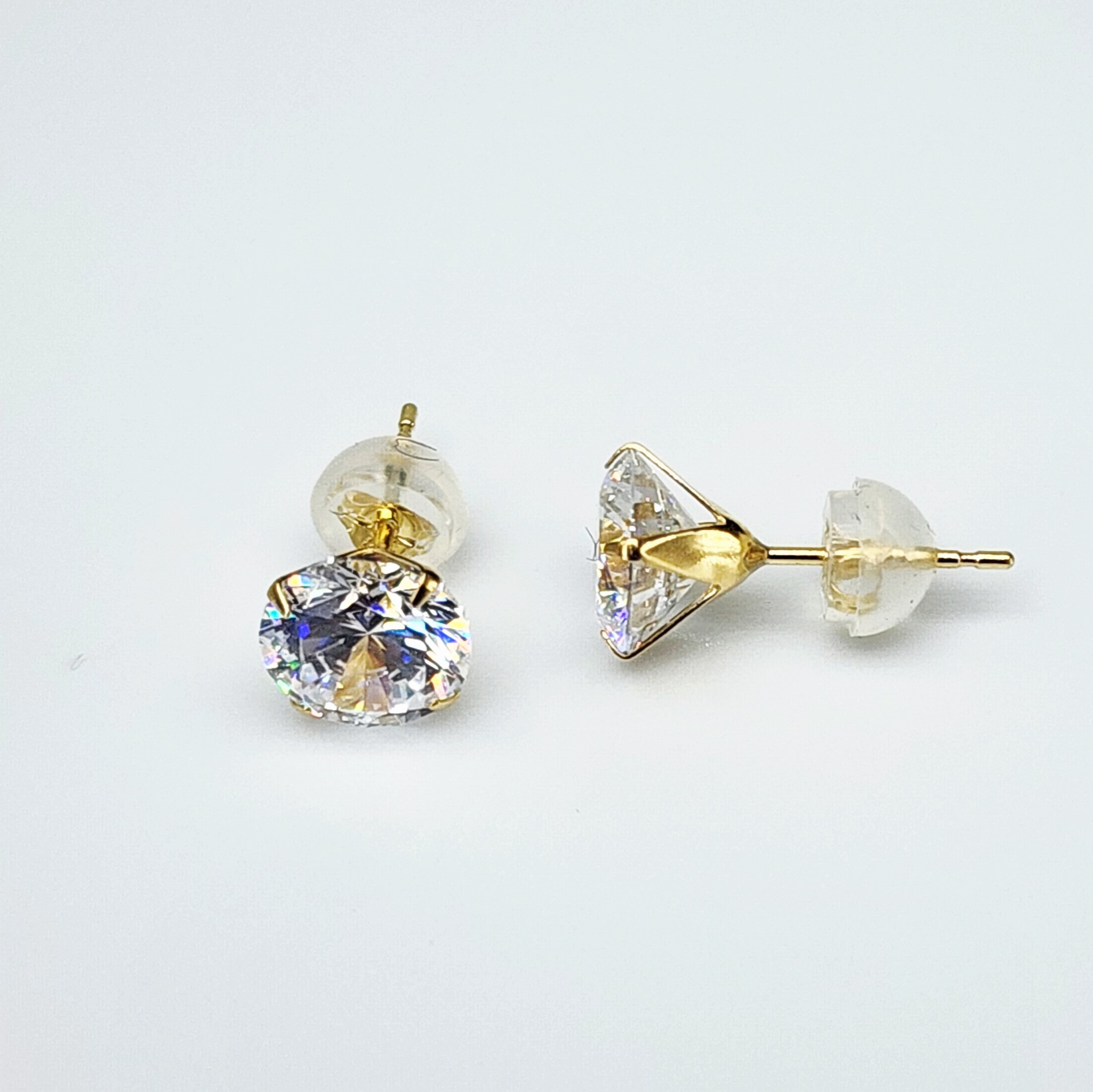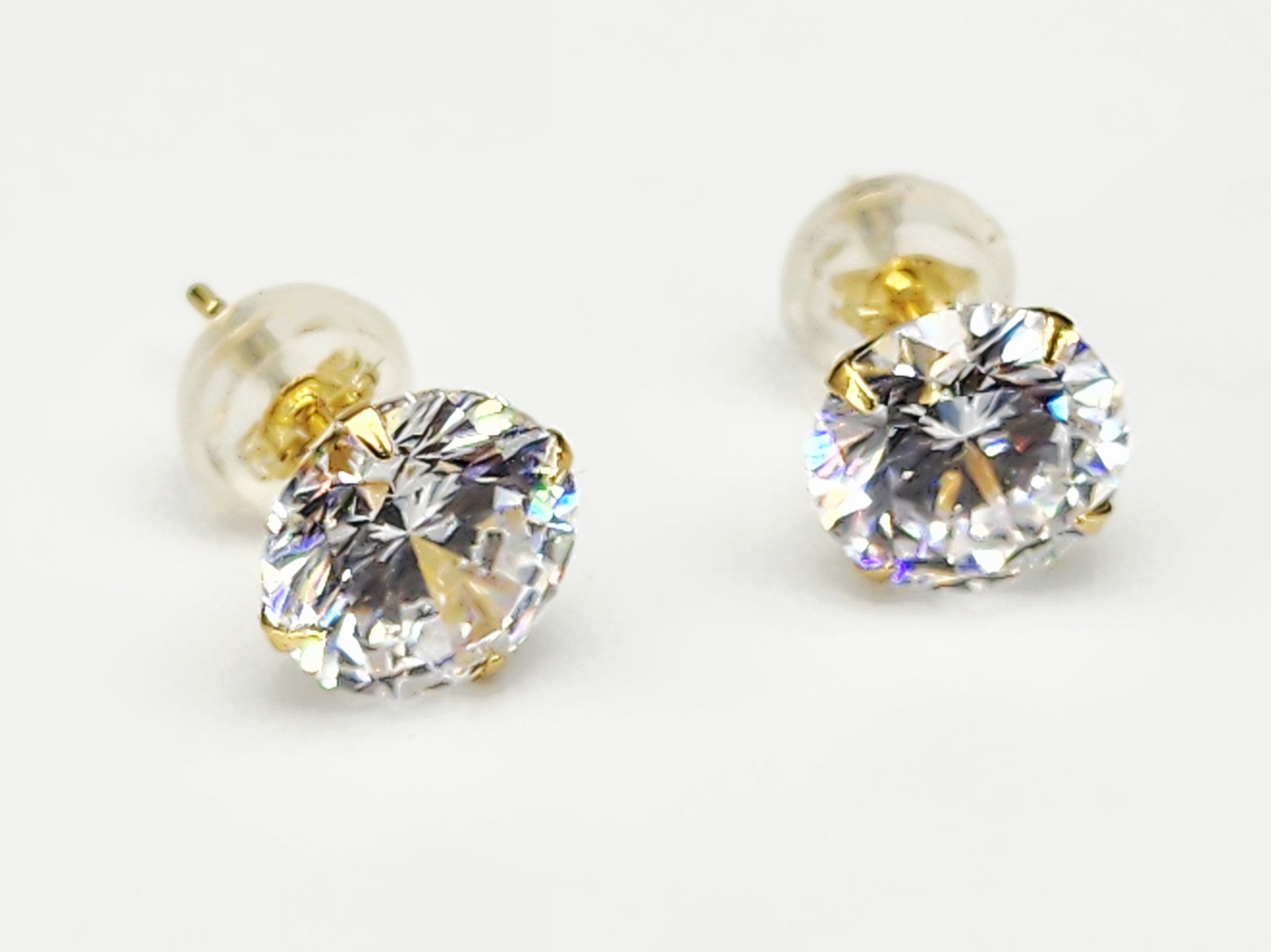 18ct Yellow Gold 7mm Round 4 Claw Cubic Zirconia Stud Earrings – K18-7MMCZ