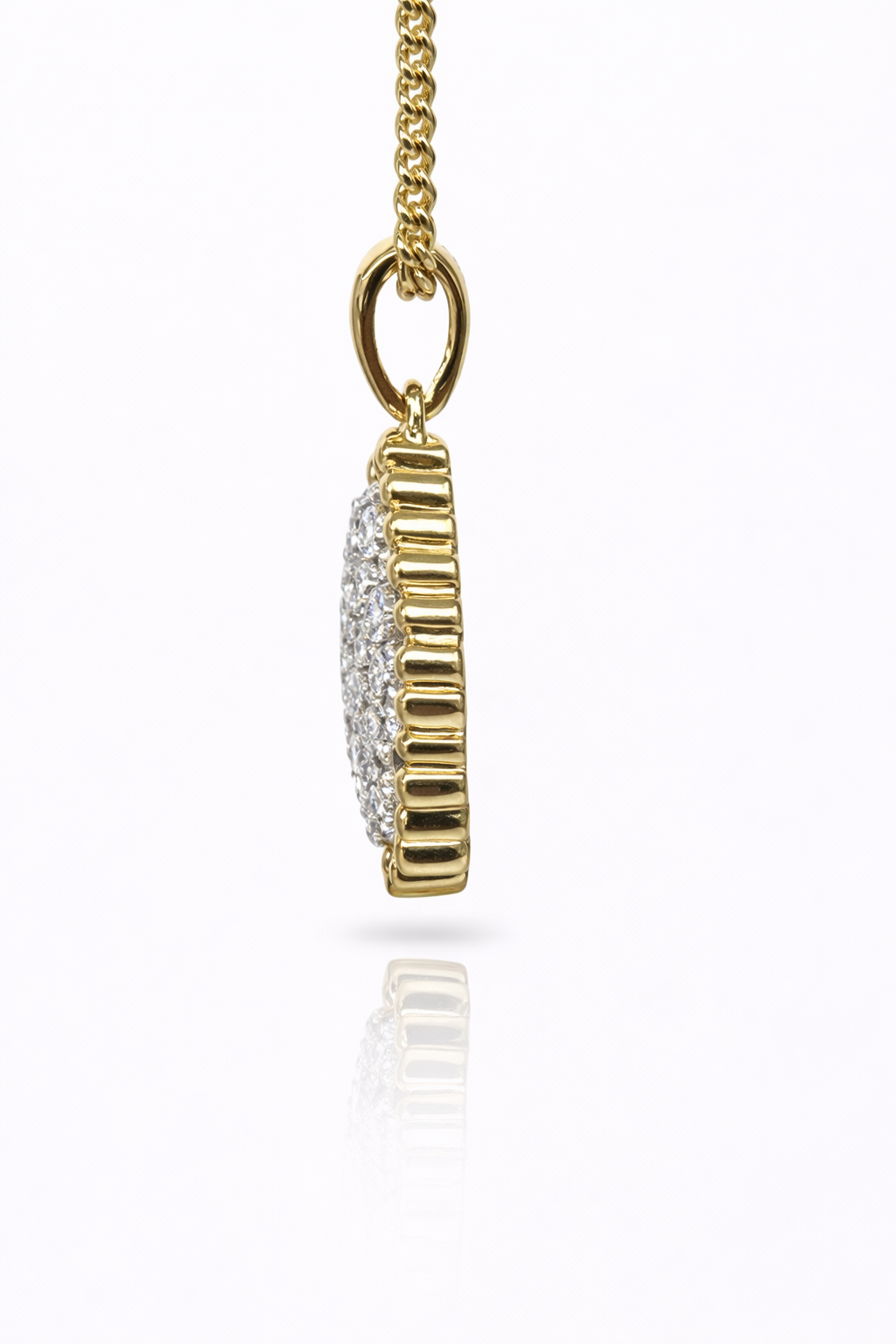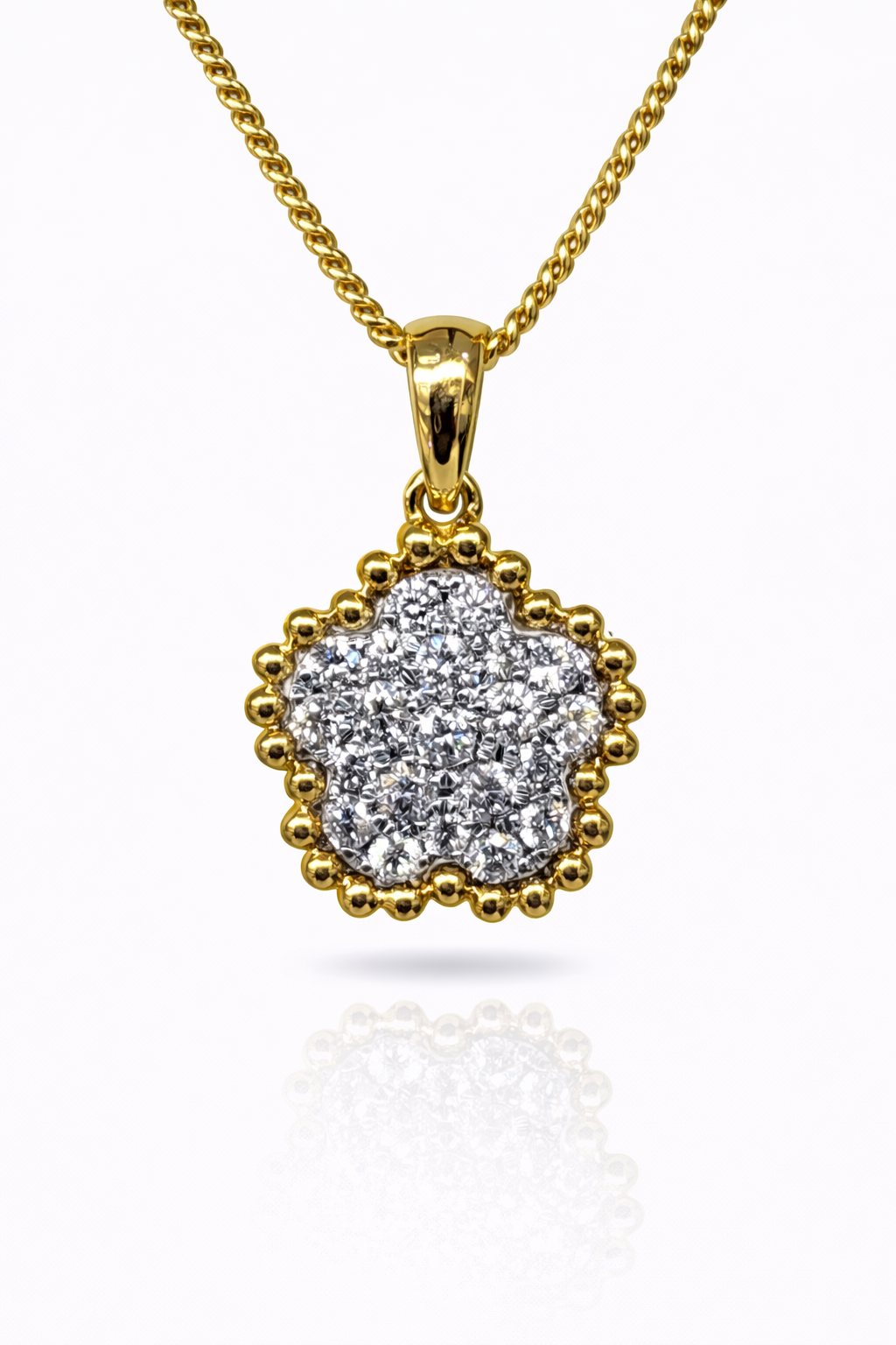 Add timeless sparkle to your everyday look with this beautiful 18ct yellow gold diamond pendant, crafted in a flattering clover-inspired cluster design. The centre features a dazzling arrangement of natural round brilliant cut diamonds, carefully claw set to maximise light and brilliance, creating a rich, high-end finish.