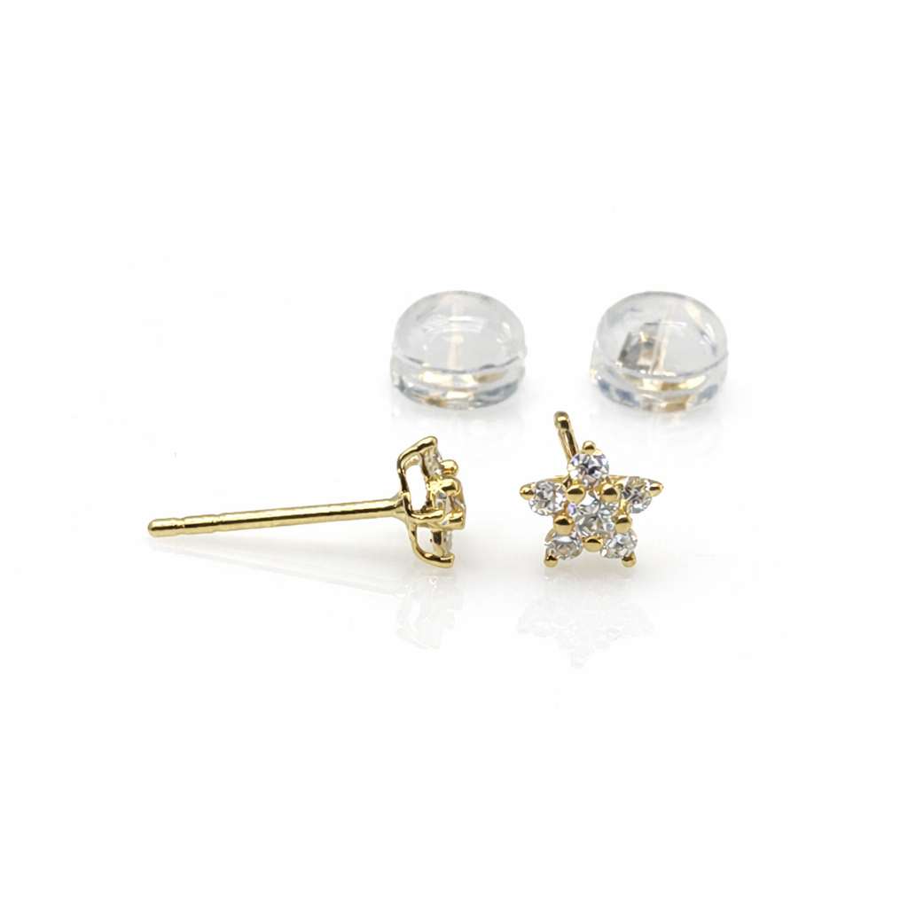 18ct Yellow Gold Natural Diamond Star Stud Earrings 5.5mm (0.232ct TDW) Claw Set + Silicone Secured Butterflies – 18KRSE7901L