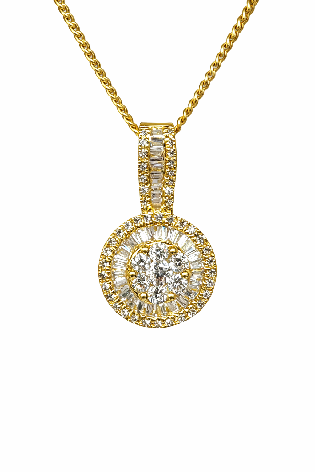 18ct Yellow Gold Natural Diamond Halo Pendant 0.29ct – Round & Baguette Cut – 18KR29957PAL