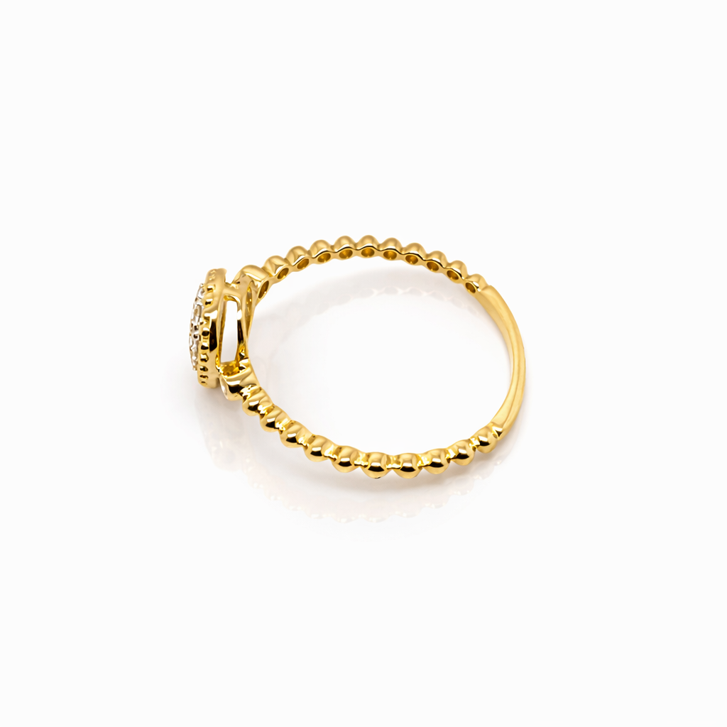 The band is crafted in polished 18ct yellow gold with a stylish beaded profile, offering both visual interest and a comfortable fit. The diamonds have a total combined weight of 0.174 carats, making this ring perfect for everyday elegance or as a meaningful gift for special occasions.