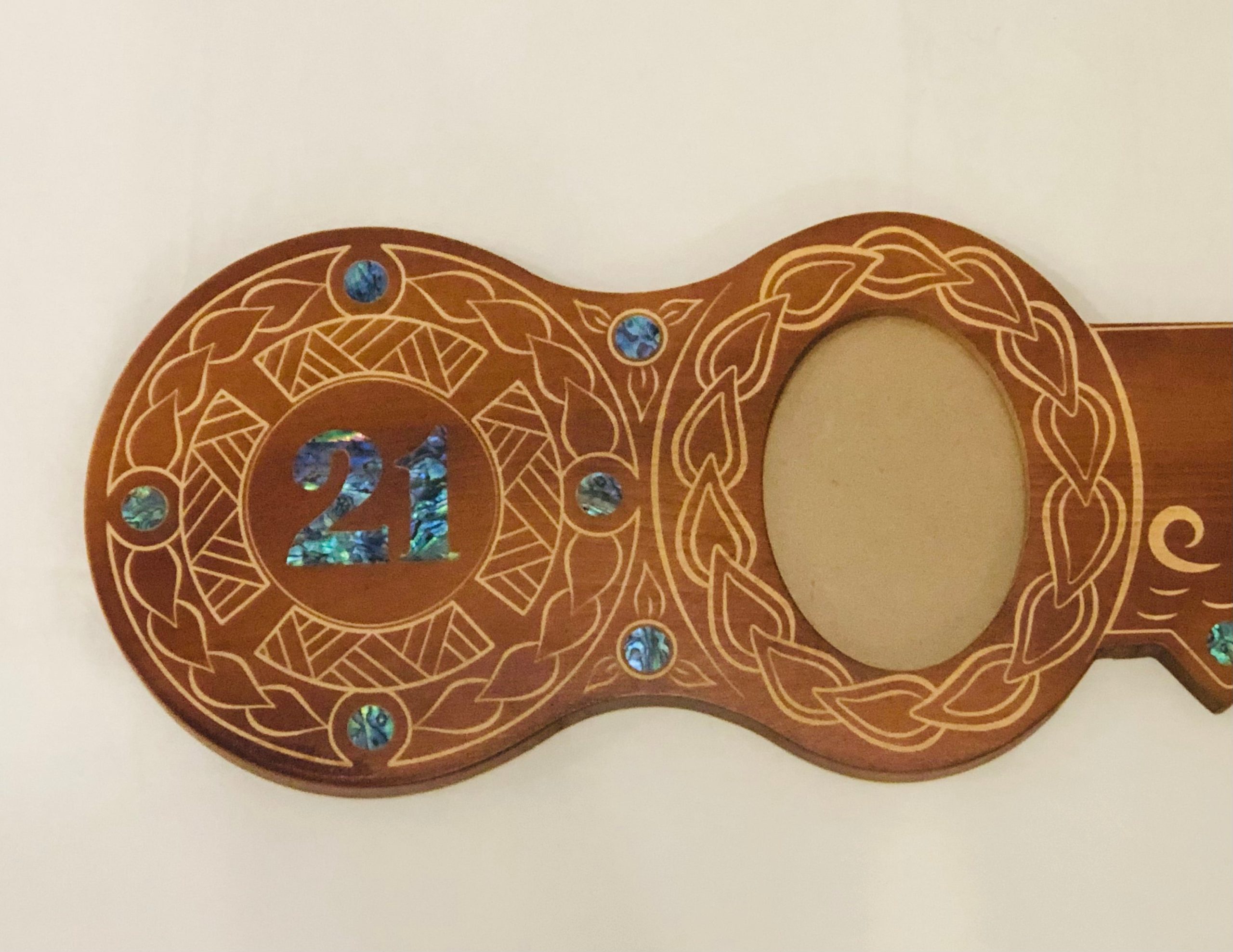 21st Island Design Key with Laser Engraved Patterns & Paua Shell 21 Inlay with Round?Paua Shell Inlays – Design 2125