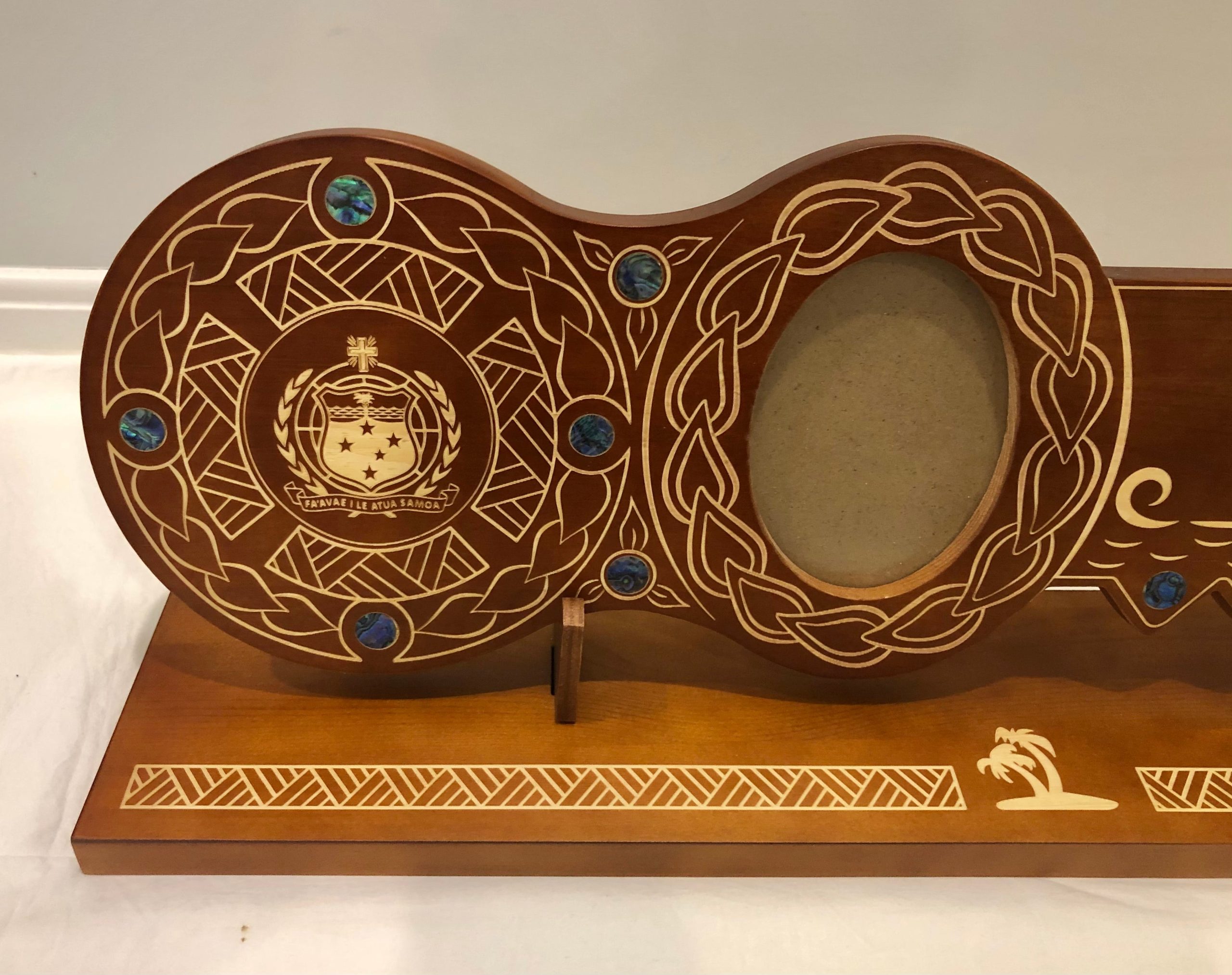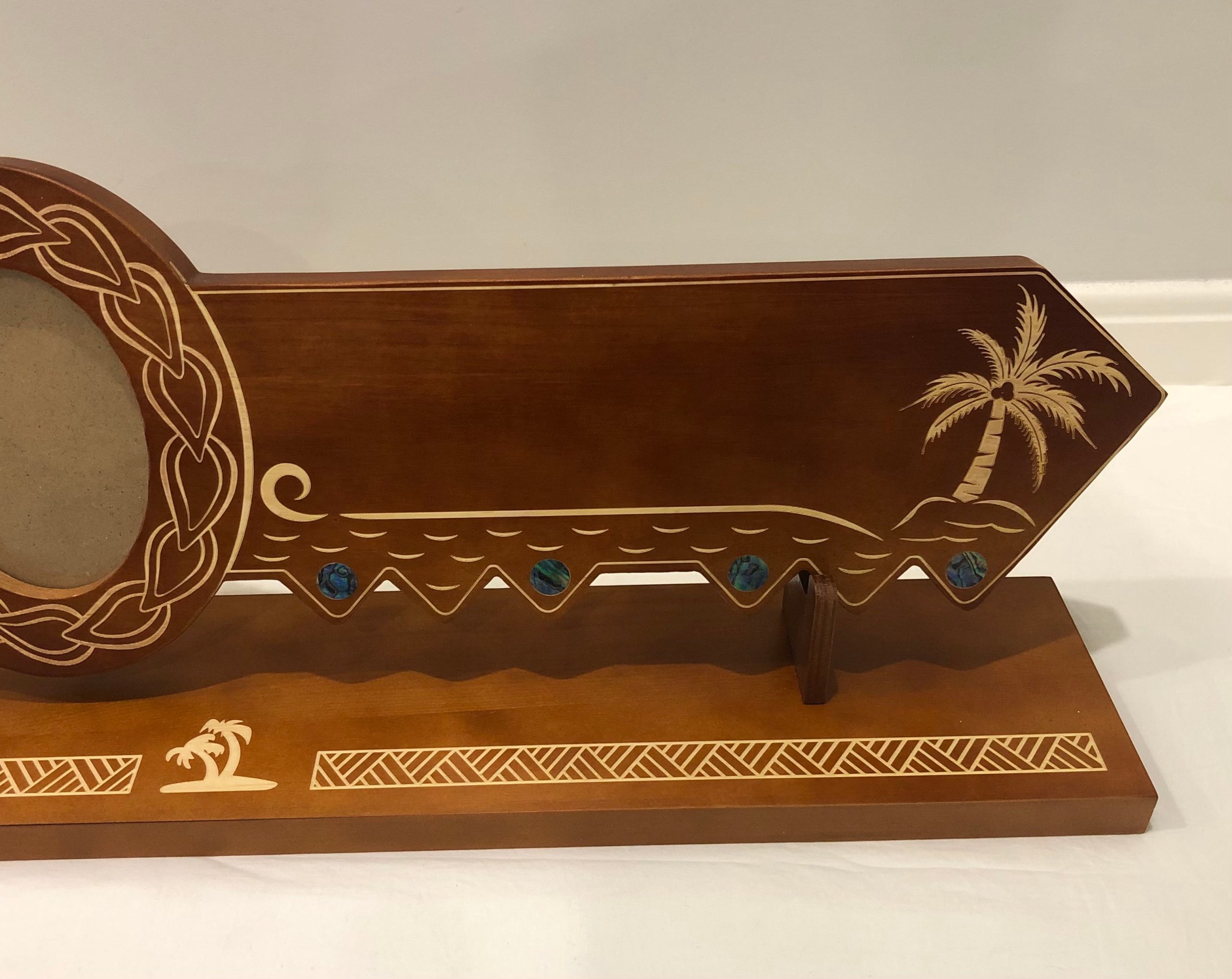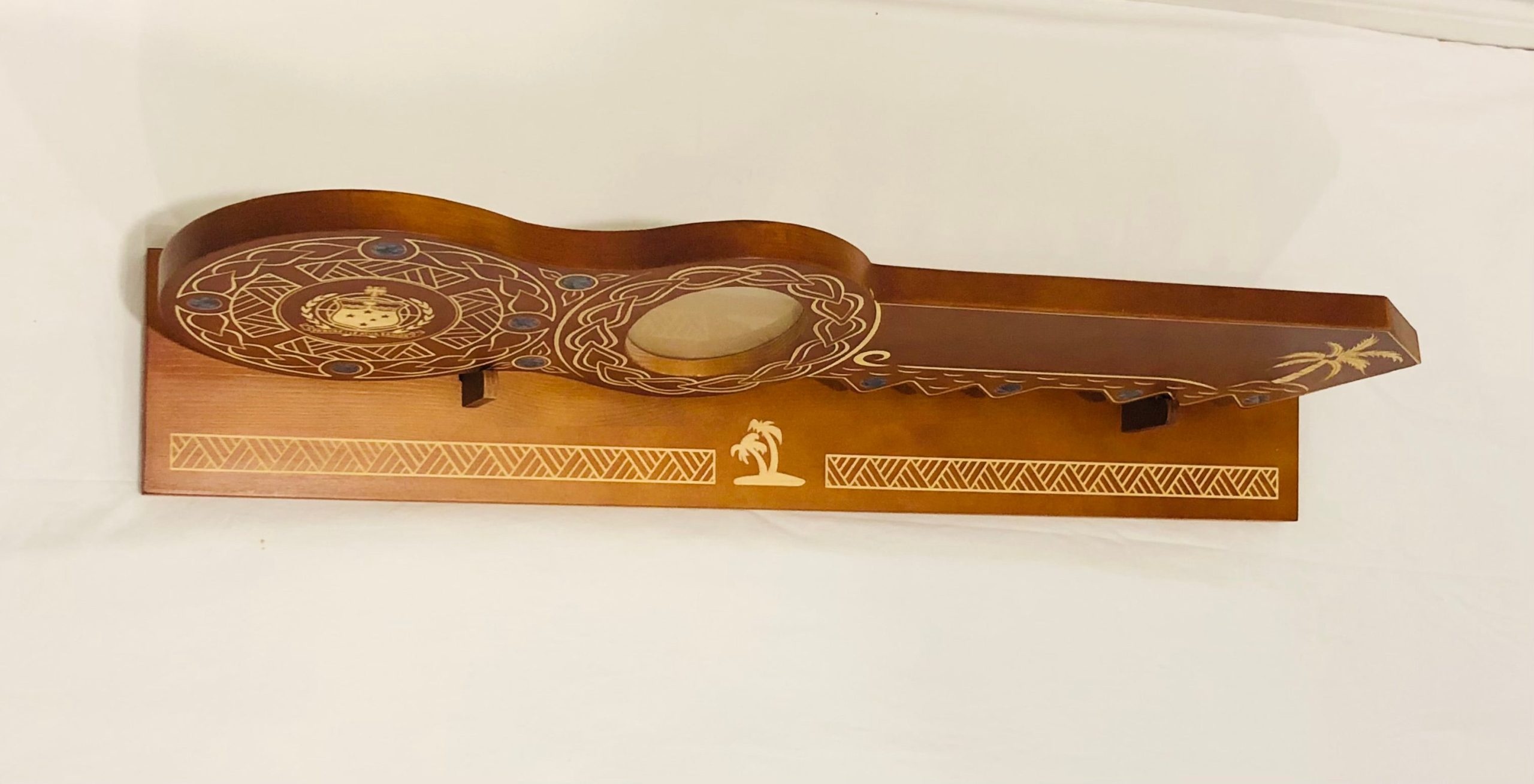 21st Island Design Key with Laser Engraved Patterns & Samoan Sila with Round Paua Shell Inlays and Matching Stand – Design 2127 (Stand)