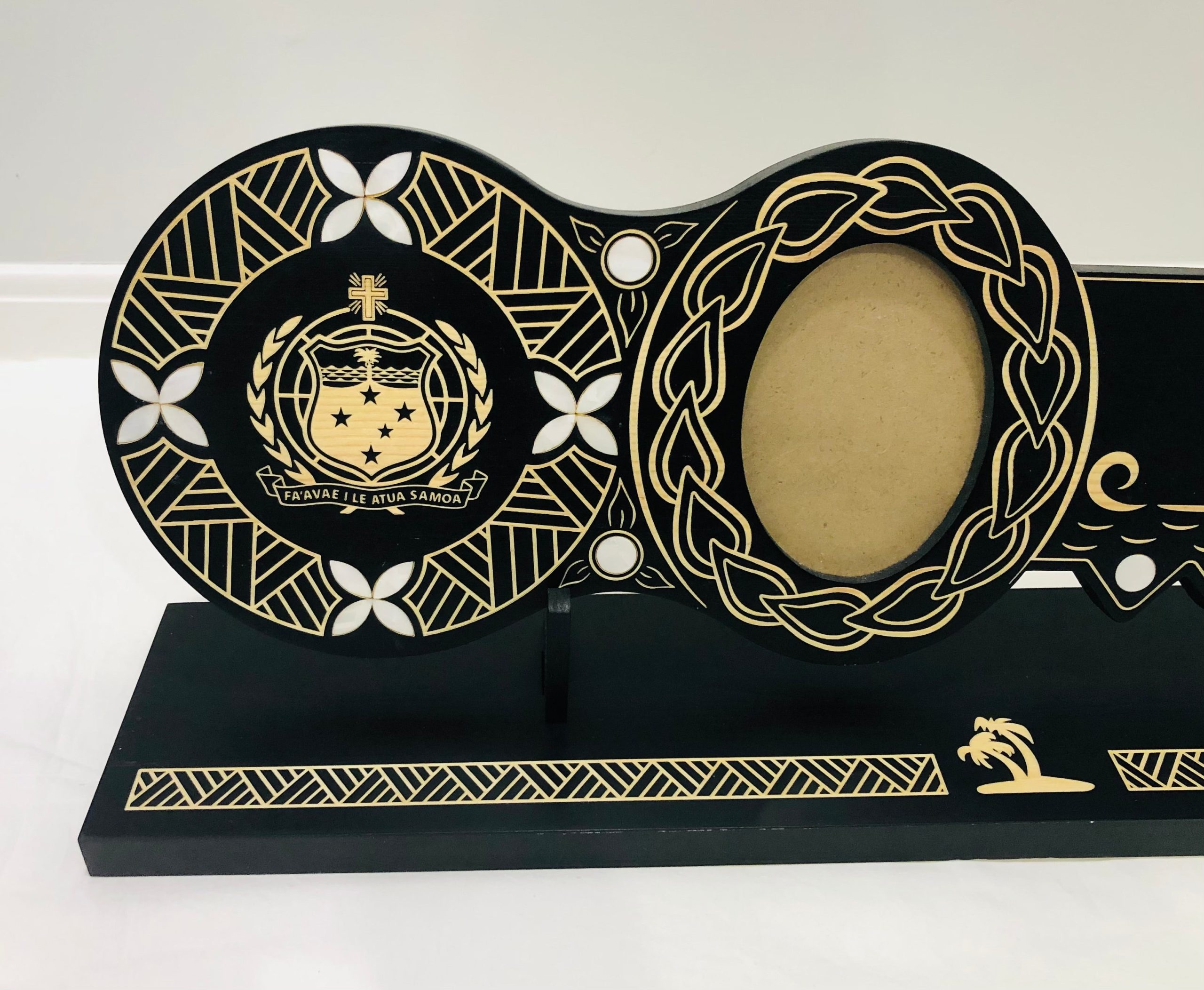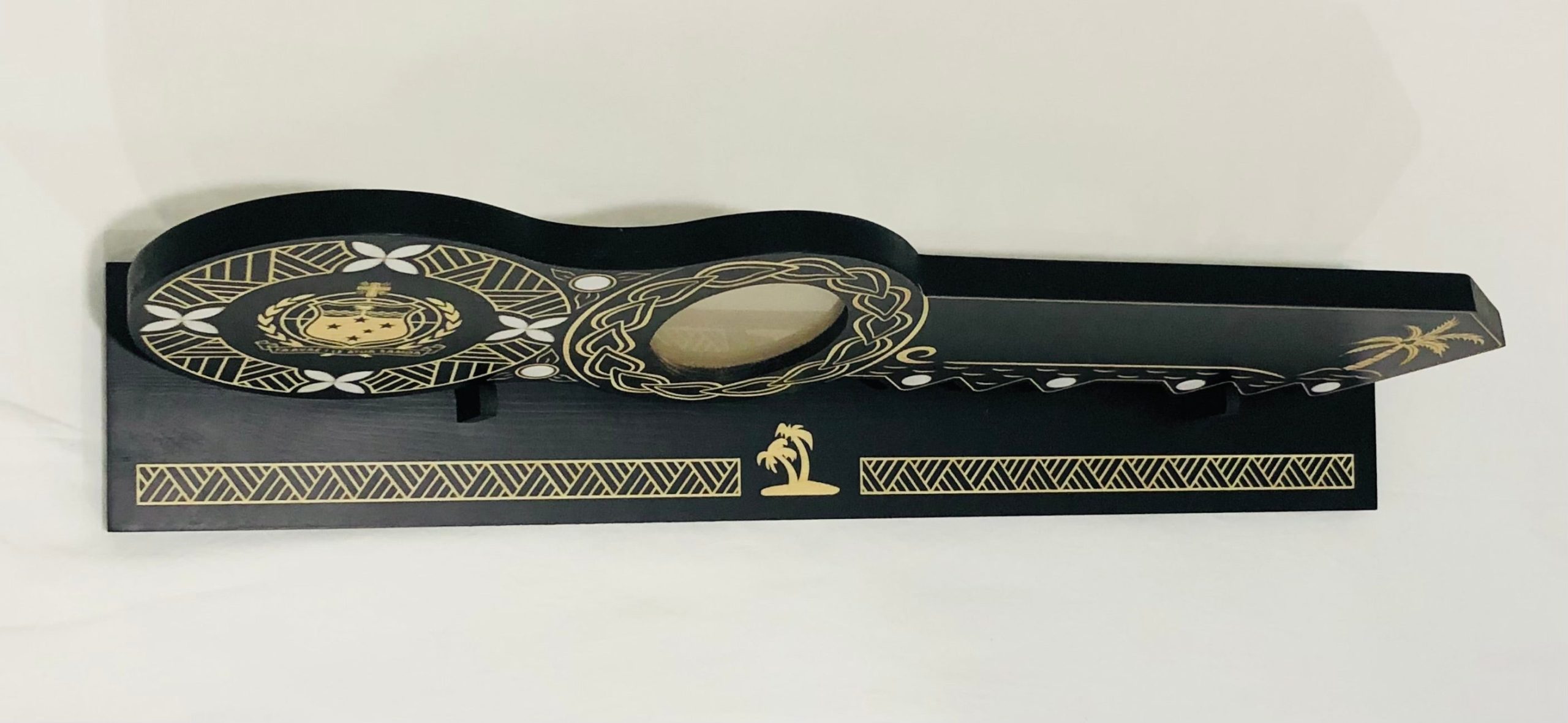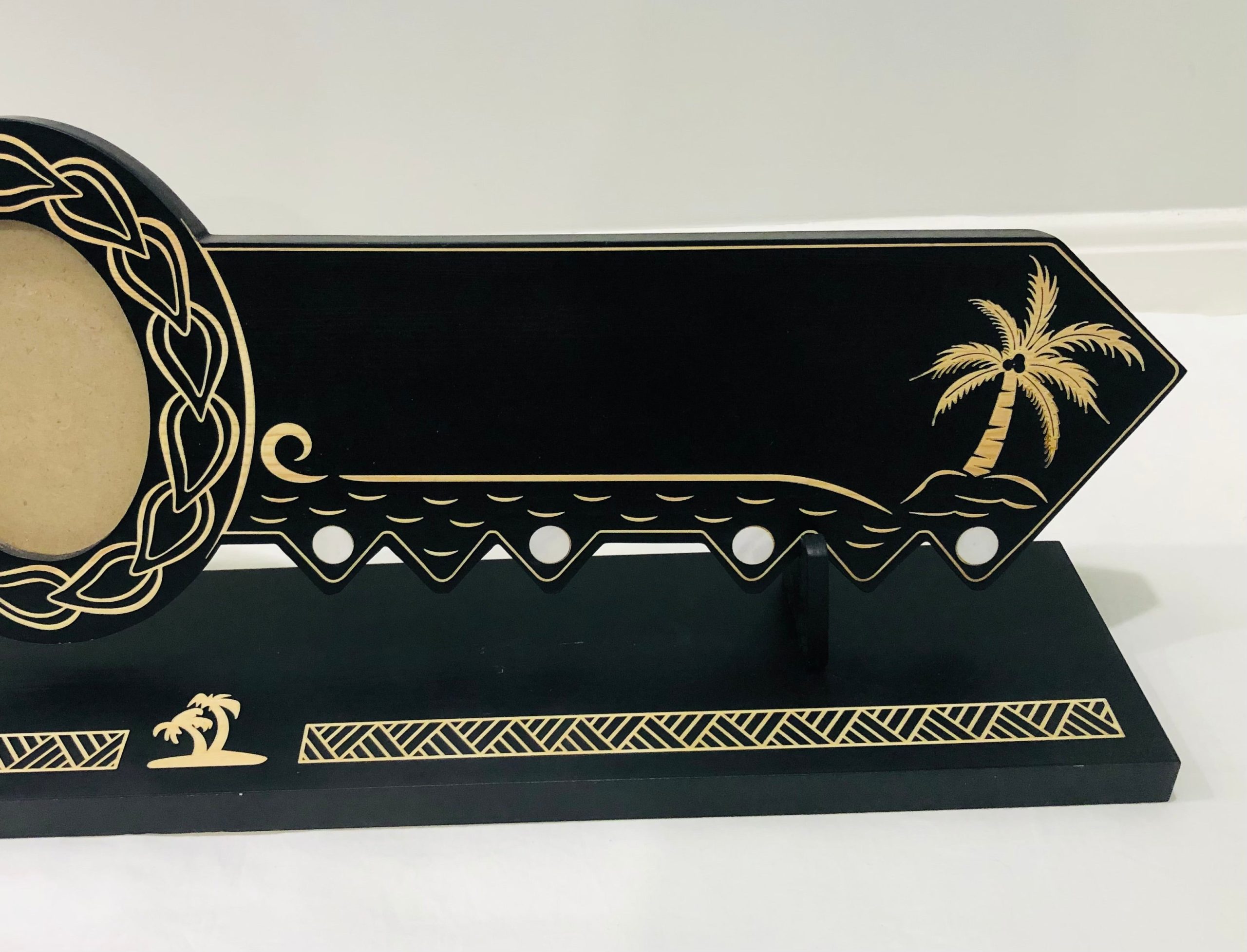 21st Island Design Key with Laser Engraved Patterns & Samoan Sila with White Mother Of Pearl Shell Inlays and Matching Stand – Design 2134 (Stand)