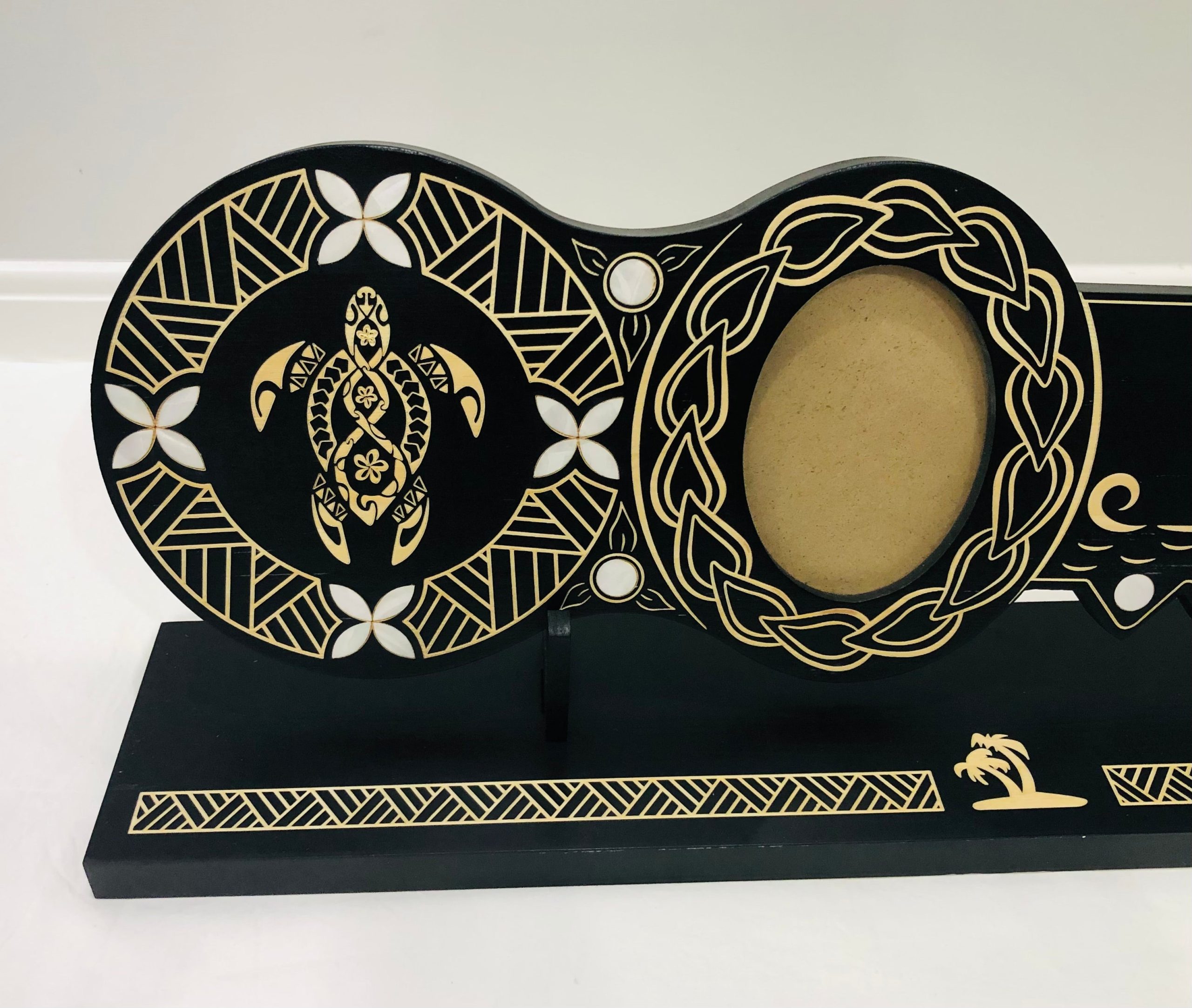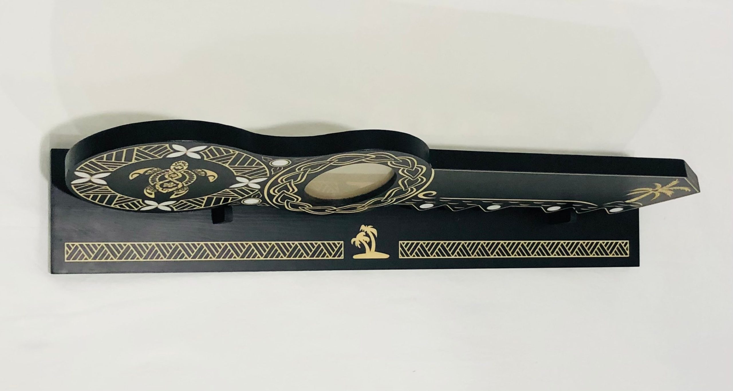 21st Island Design Key with Laser Engraved Patterns & Turtle with White Mother Of Pearl Shell Inlays and Matching Stand – Design 2135 (Stand)