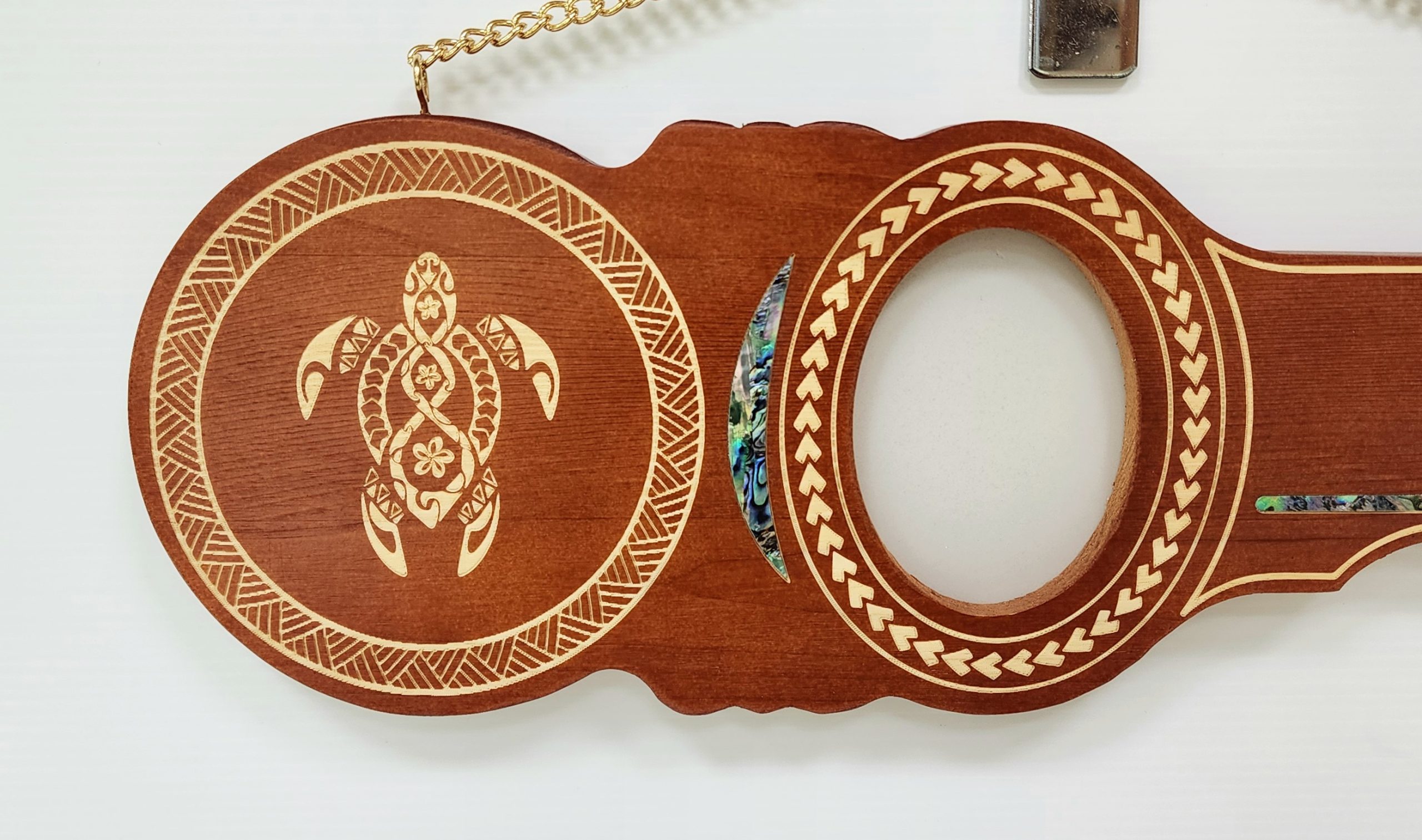 21st Island Design Wooden Key with Laser Engraved Patterns & Turtle with Paua Shell Inlay – SJ2430