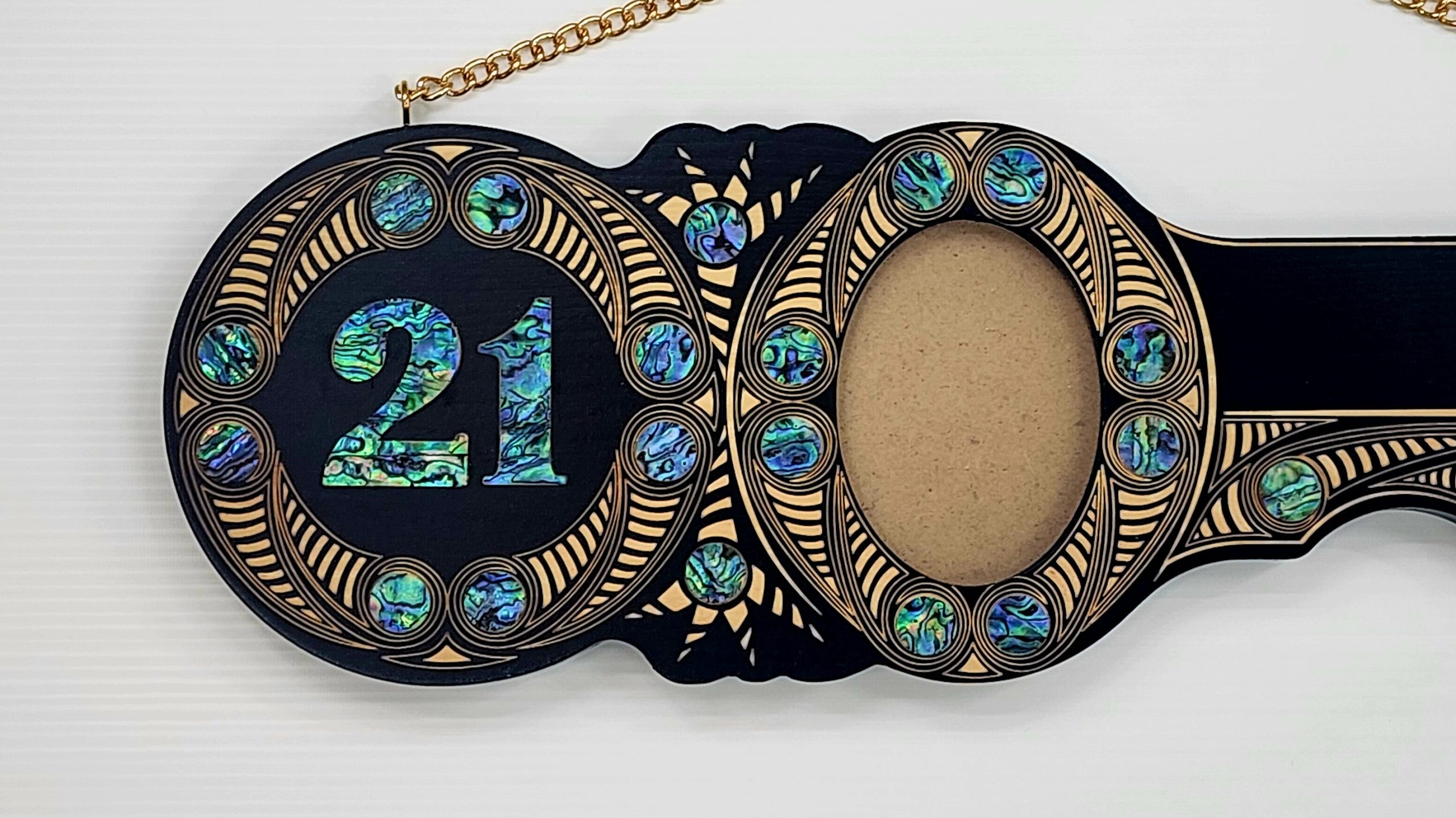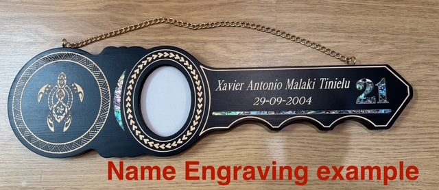 Celebrate a special 21st milestone with this beautifully crafted 21st Birthday Key, featuring exquisite Māori-inspired laser engravings and vibrant paua shell inlays. This stunning piece is designed to symbolize celebration, growth, and connection — a perfect keepsake for this important occasion.
