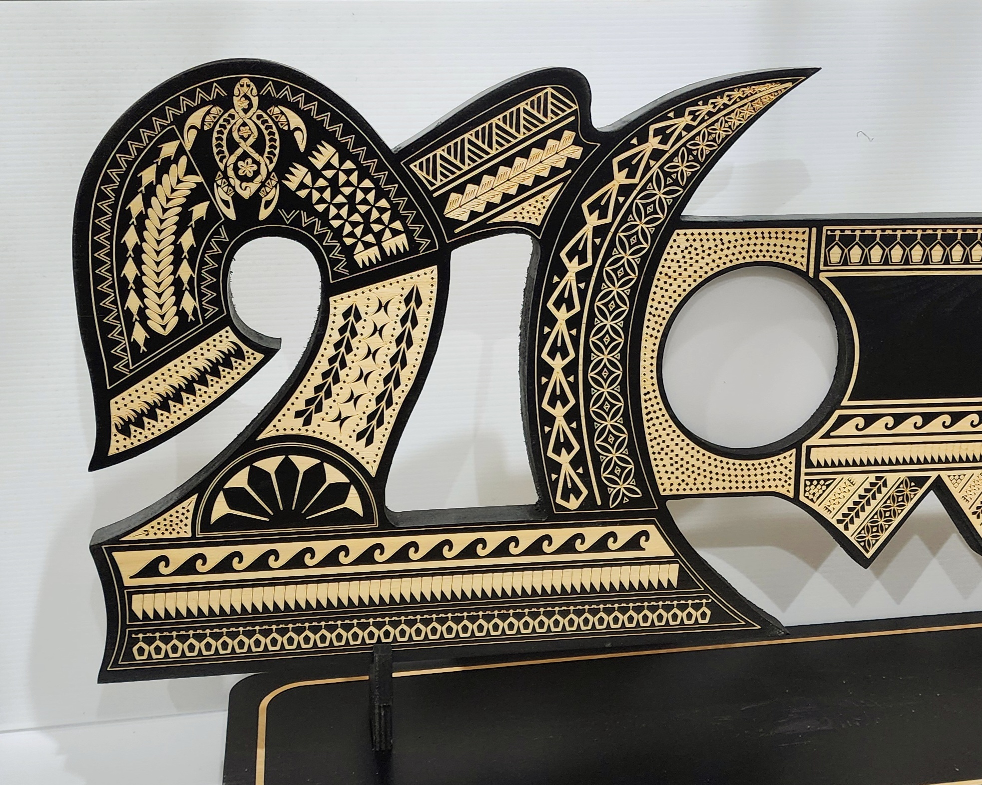 21st Wooden Key Black Shade Island Design On Stand With Polynesian Tattoo Design Hui Turtle Triple Twist