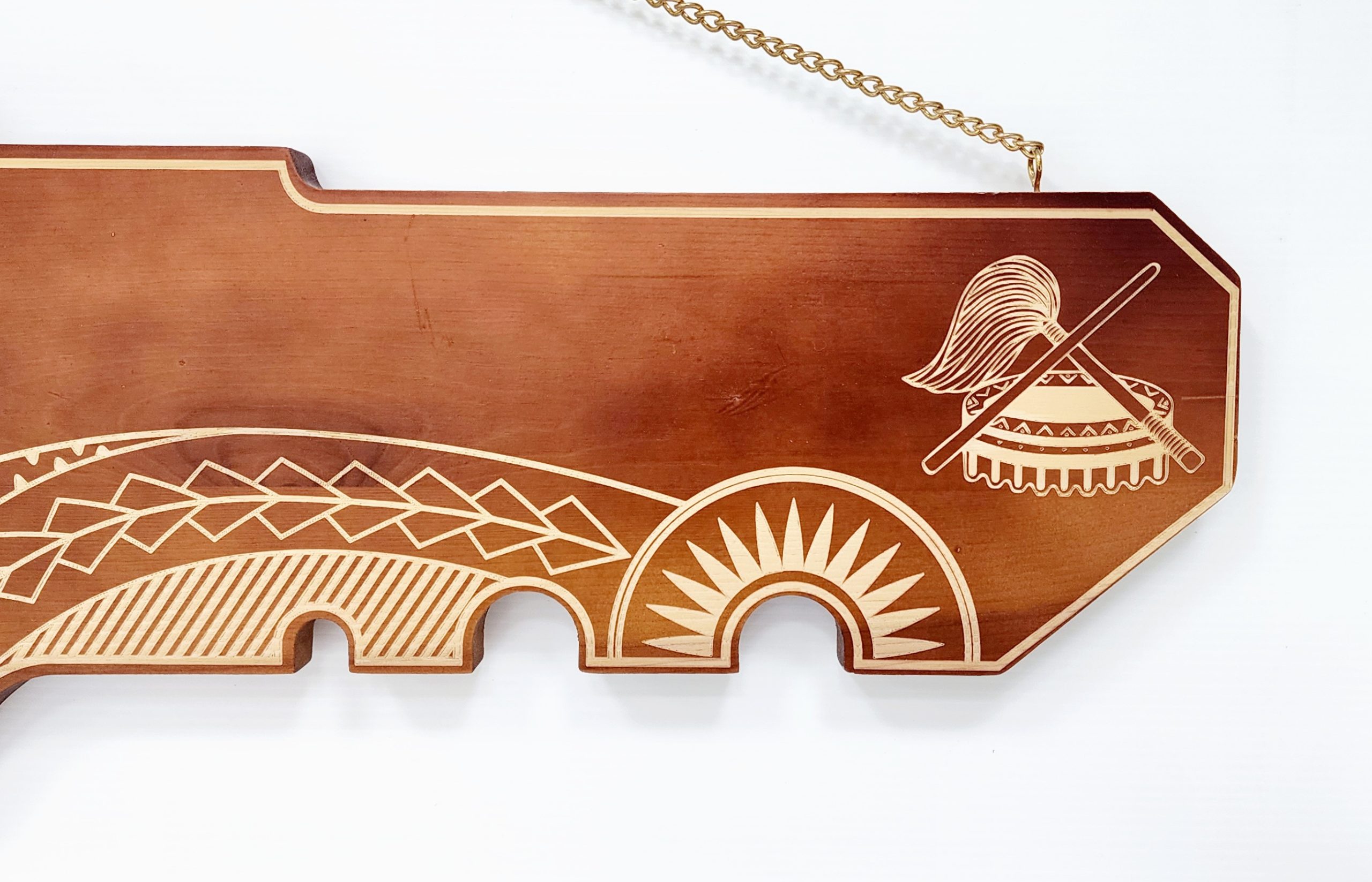 21st Wooden Key Brown Shade Island Design Key with Laser Engraved Patterns & Samoan Tanoa & Fue – SJ2156