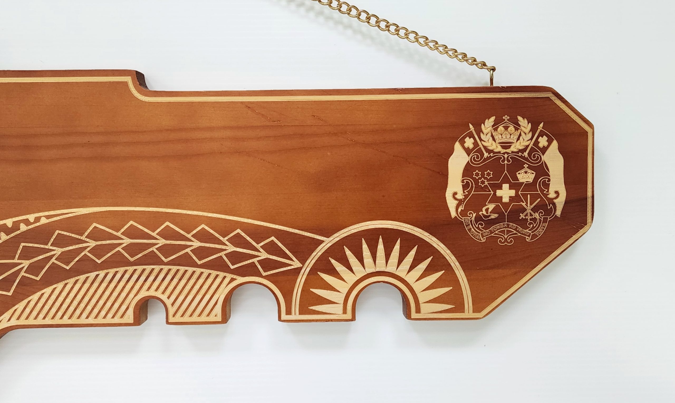 21st Wooden Key Brown Shade Island Design Key with Laser Engraved Patterns & Tongan Sila – SJ2152