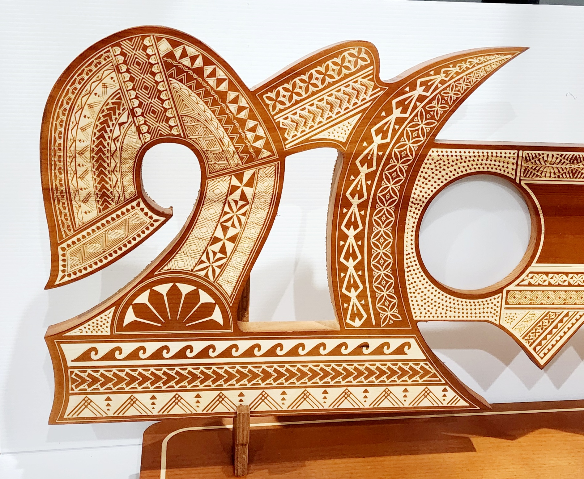 The is key made out of 20mm thick solid wood with island design laser carving around the key with round cutout space for a picture placement in the middle of the key. There is a hibiscus flower laser engraved on the far right handside of the key. The brown colour shade may vary due to the natural wood variations.