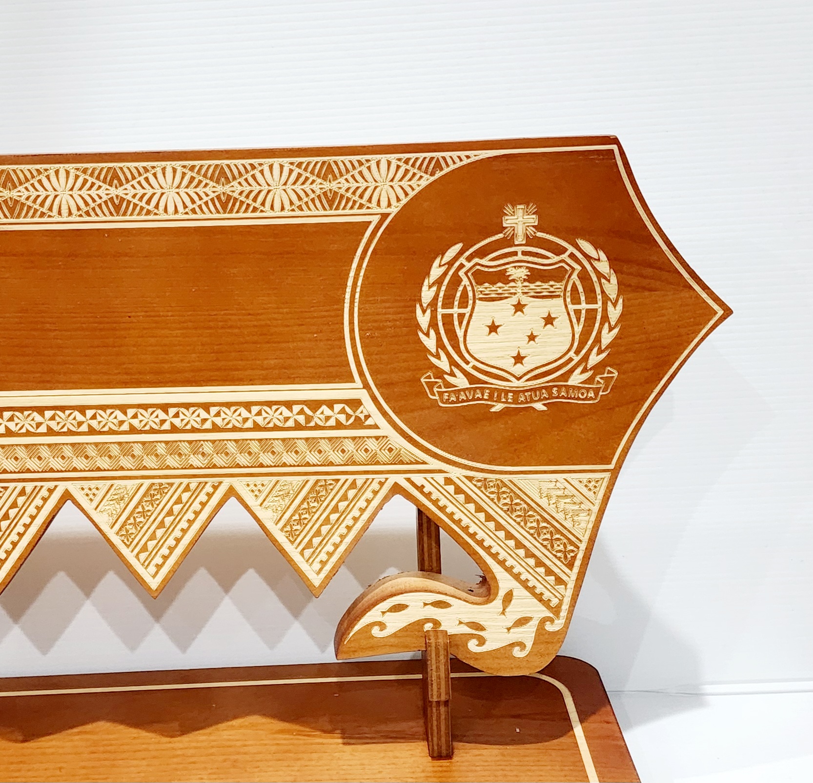 21st Wooden Key Brown Shade Island Design On Stand With Samoan Sila