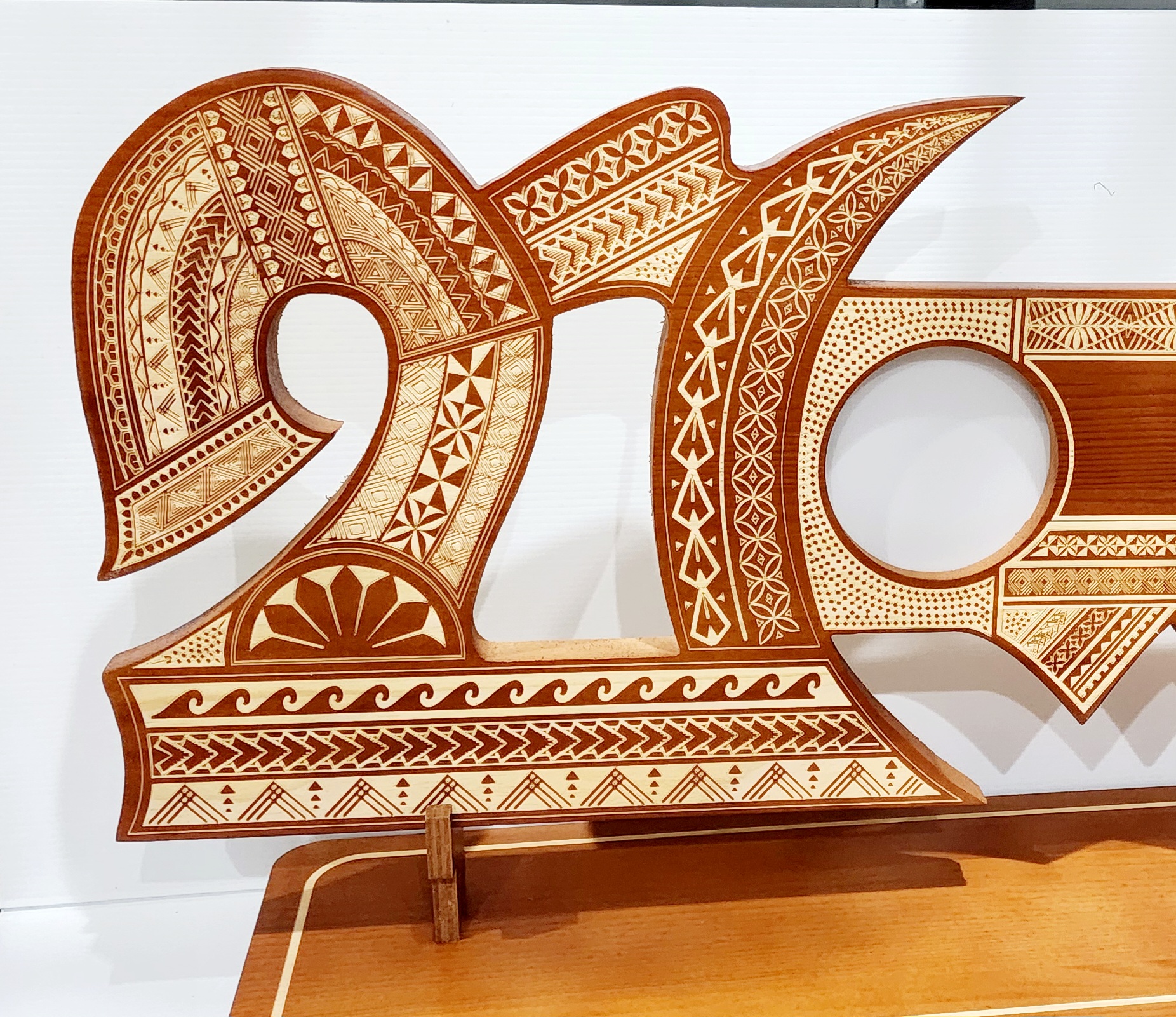 21st Wooden Key Brown Shade Island Design On Stand With Tongan Sila