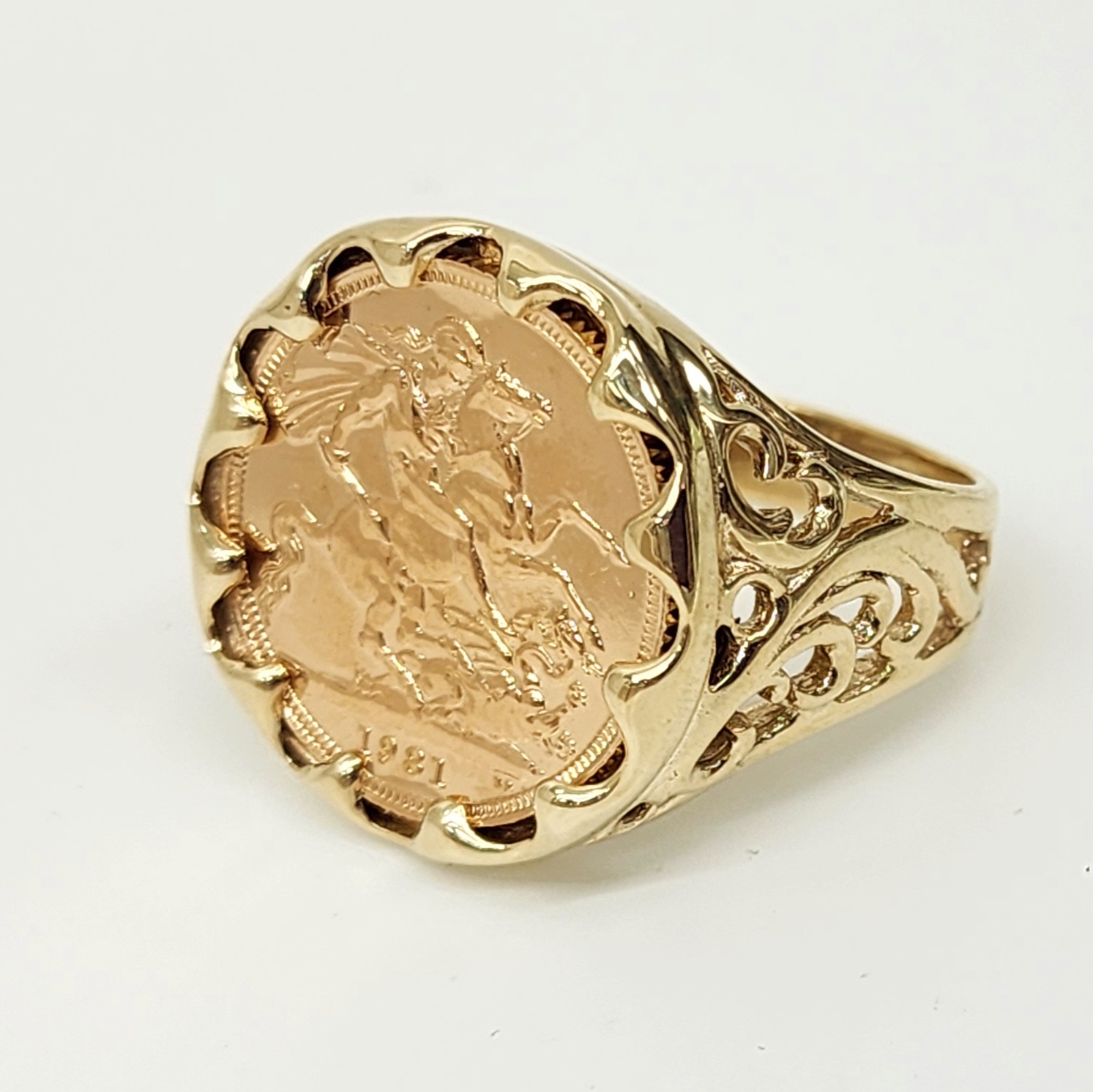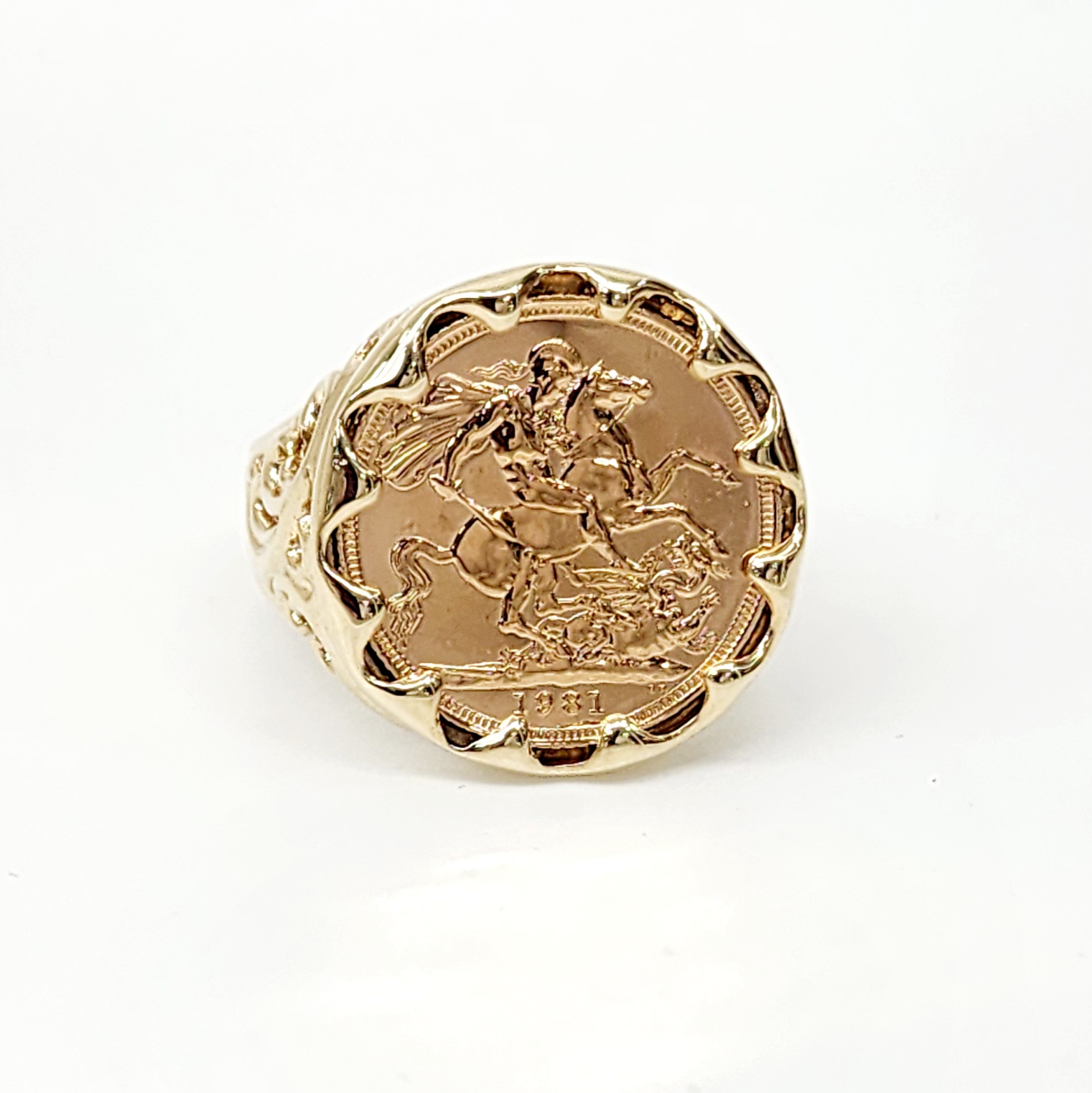 22ct Gold 1981 Full Sovereign Coin Ring with 9ct Gold Claw Set Ring Mount