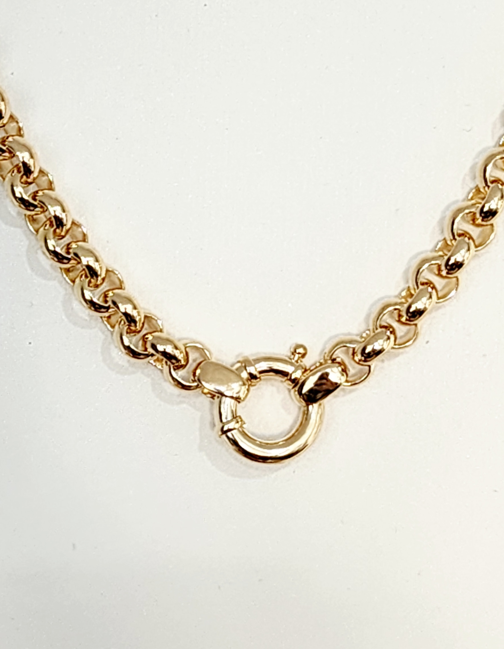 9ct Gold 60cm Classic 7.7mm Hallow Belcher chain with 16mm Diameter Bolt Ring Catch.