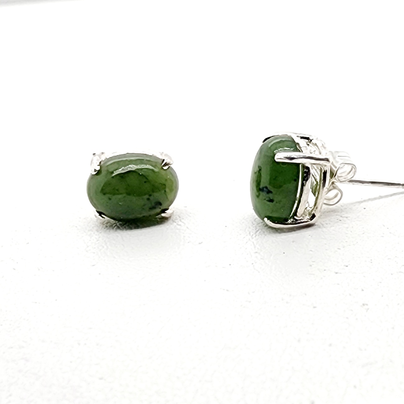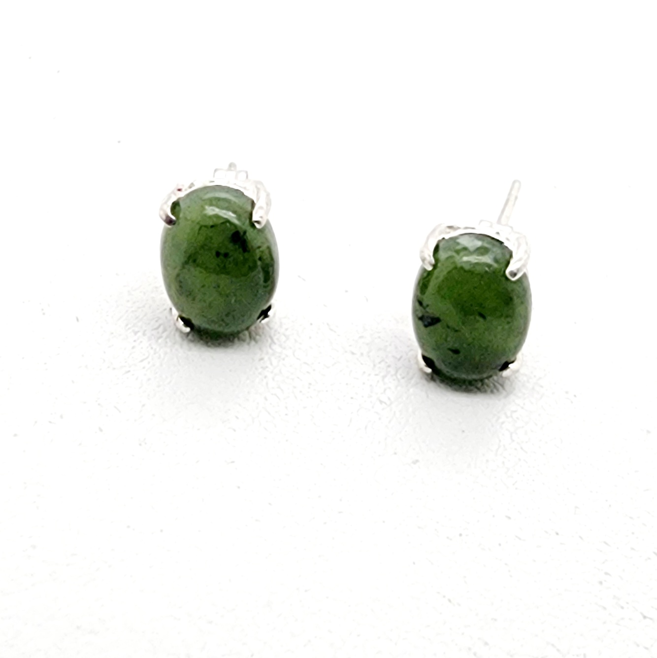 6mm x 8mm Oval polished New Zealand greensotne stud earrings with 4 Claw sterling silver findings. Genuine New Zealand Pounamu (Greenstone), sourced and hand carved in Aotearoa (New Zealand). Pounamu is of great cultural significance for Maori and is believed to enhance mana (prestige) of its possessor. When received as a gift Pounamu is said to gain value as a special treasure.