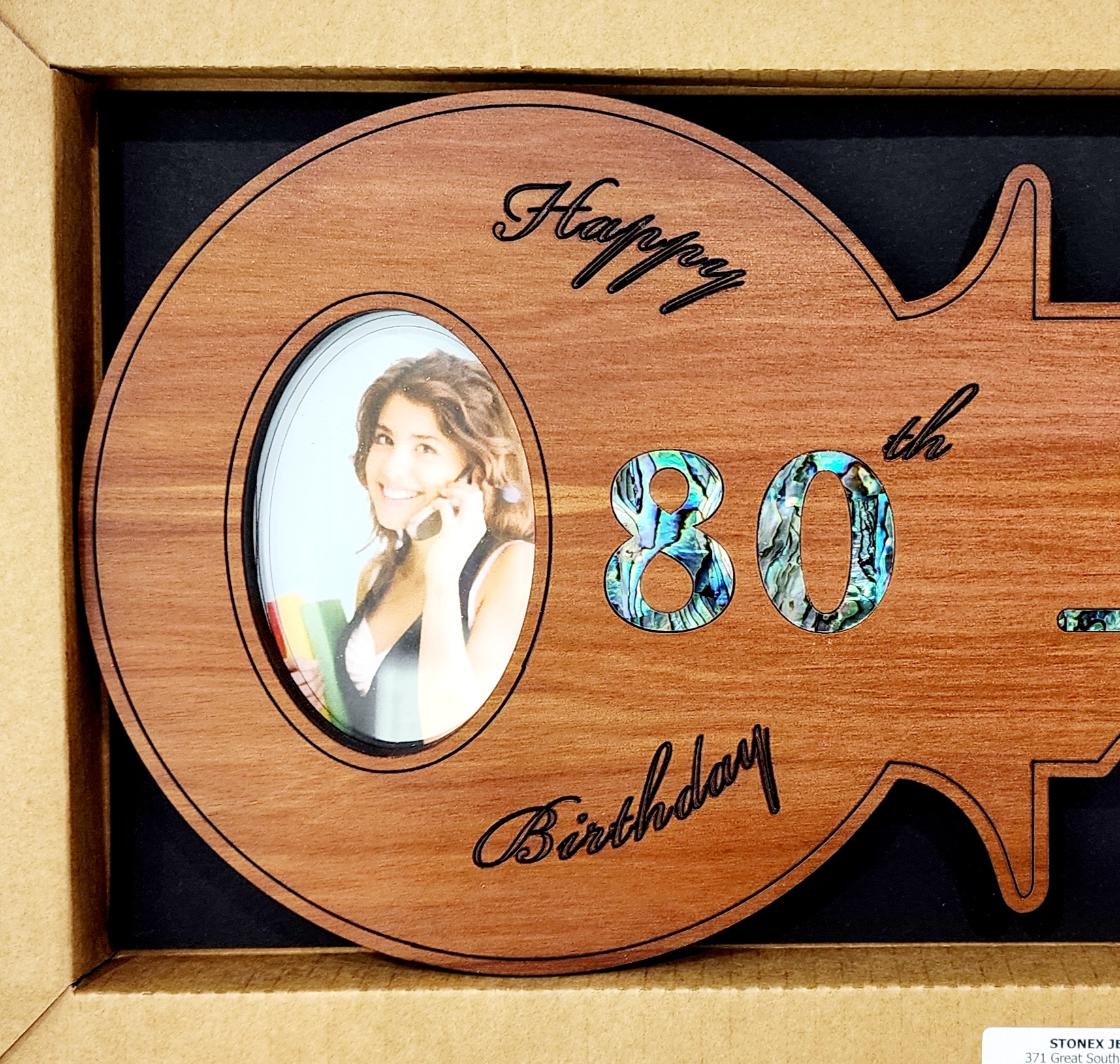 This 80th Key is made out of Rimu Veneer and Paua inlays. This 80th Key comes with a presentation box with a clear top and a Pen for signatures and messages at back. There is ?Happy Birthday? which is laser engraved and ?80? Paua Inlay near the photo.
