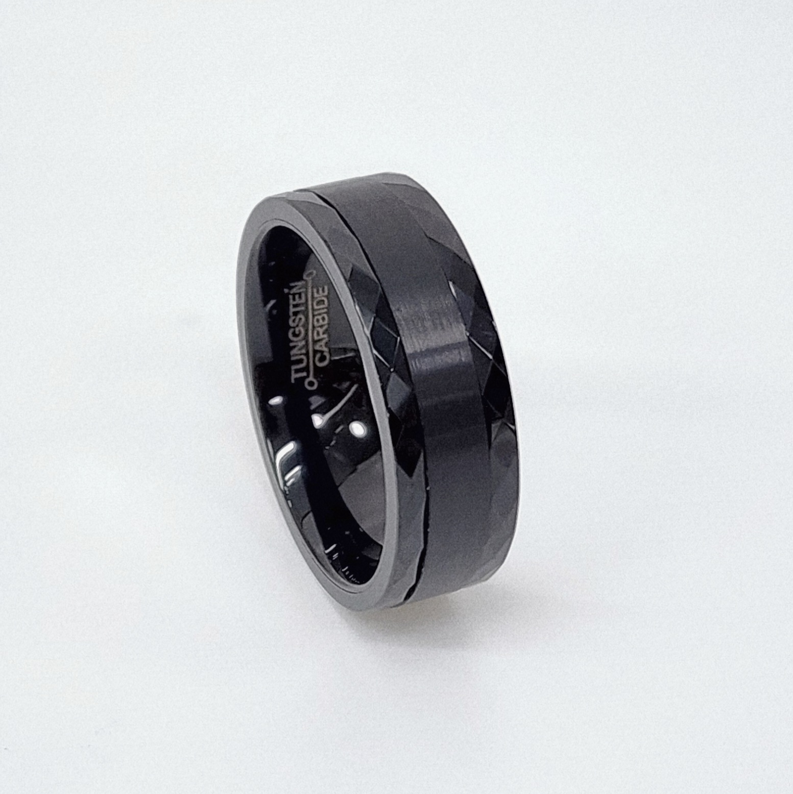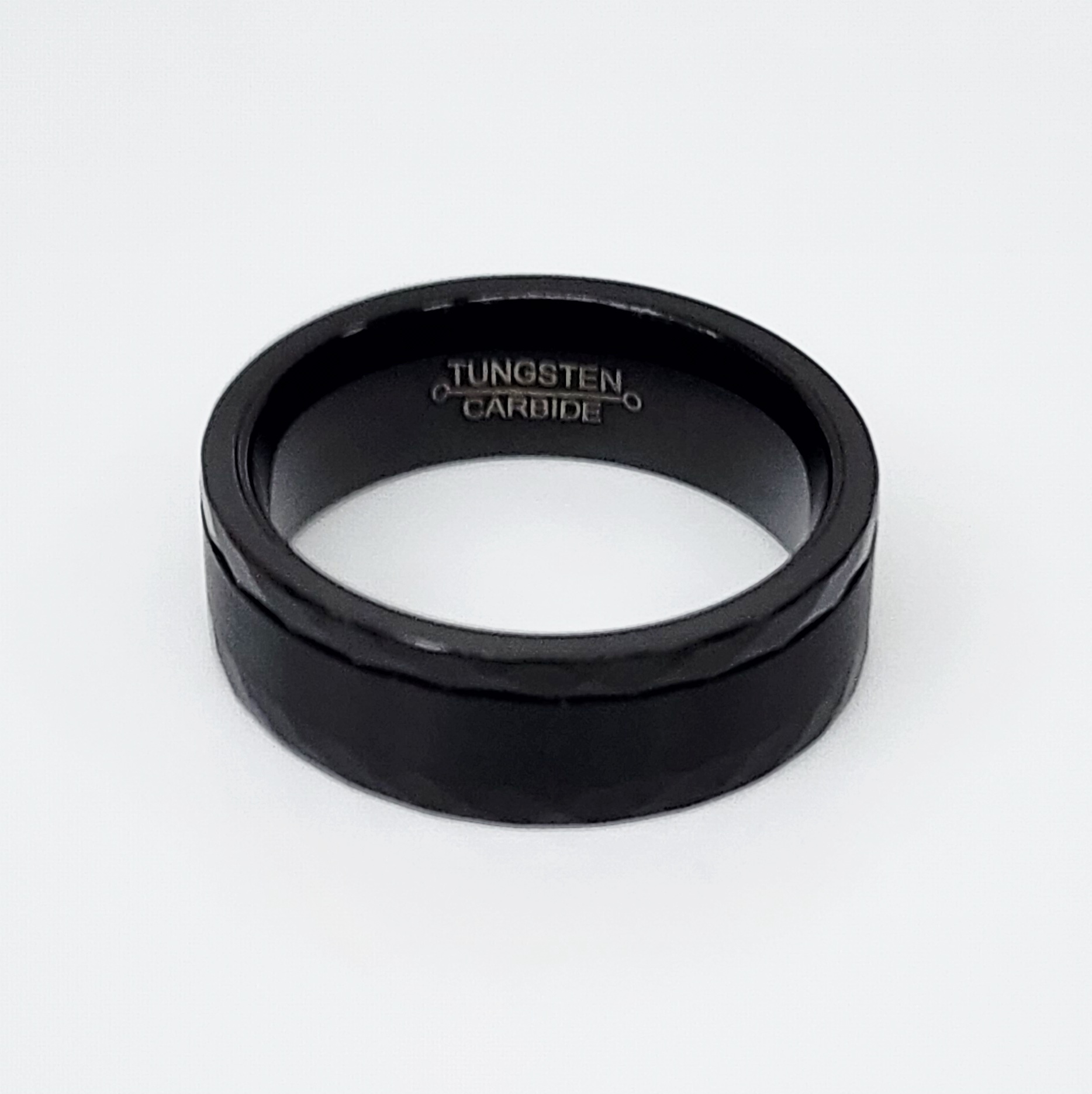 8mm Wide Black Tungsten Carbide Ring with Diamond Cut Edge and Brushed Centre Finish Band – TC07