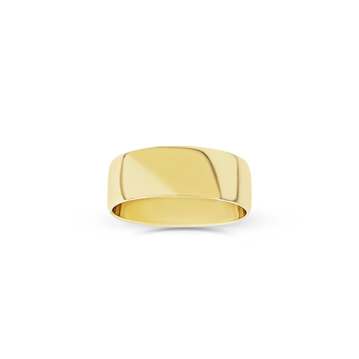 8.00mm Wide Half Round High Polished Plain Wedding Band 9ct Yellow Gold