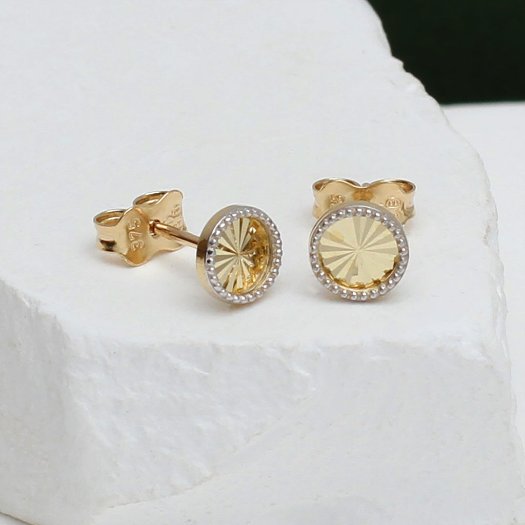 9ct Two-Tone Gold 6mm Sunray Stud Earrings