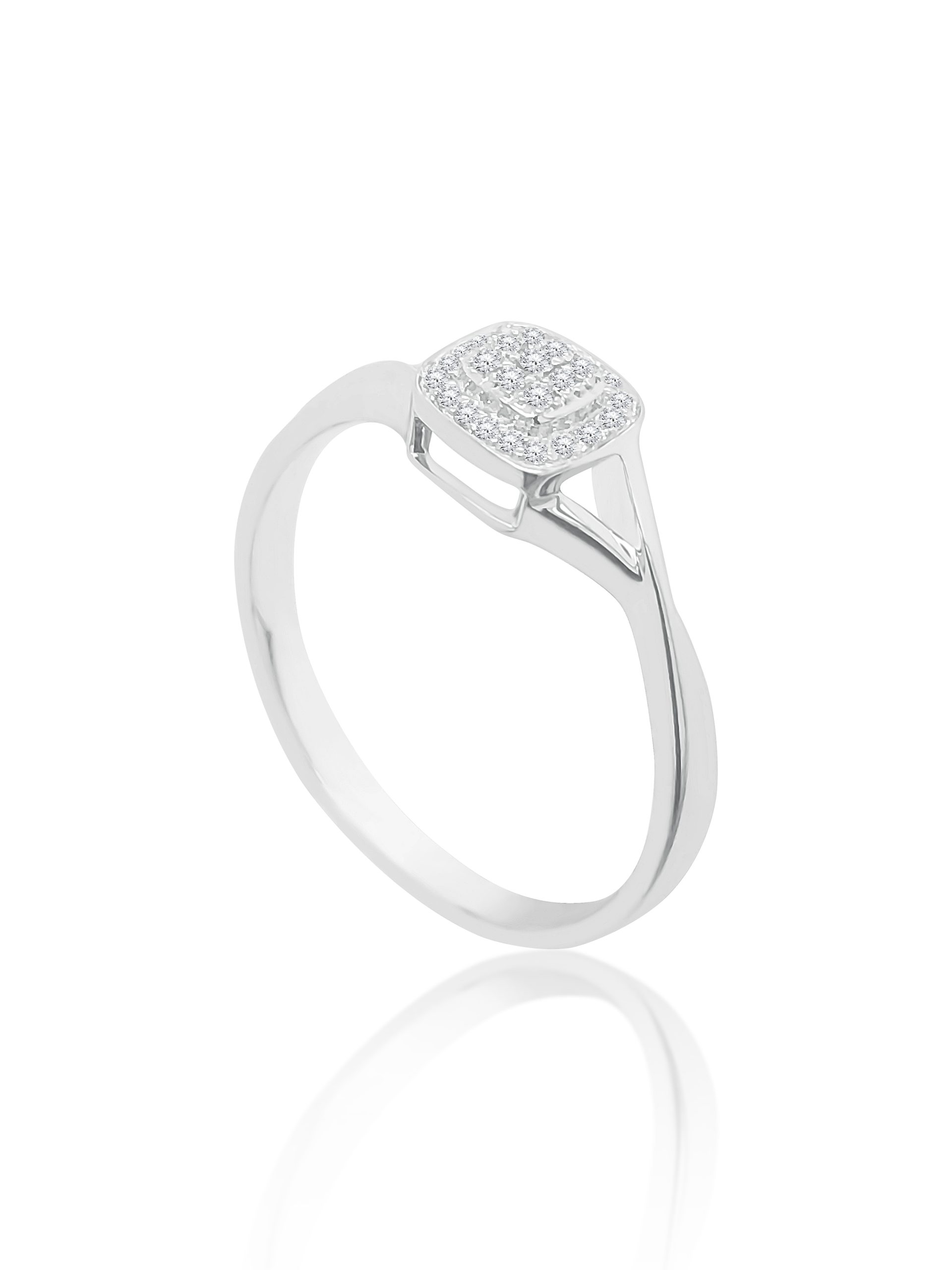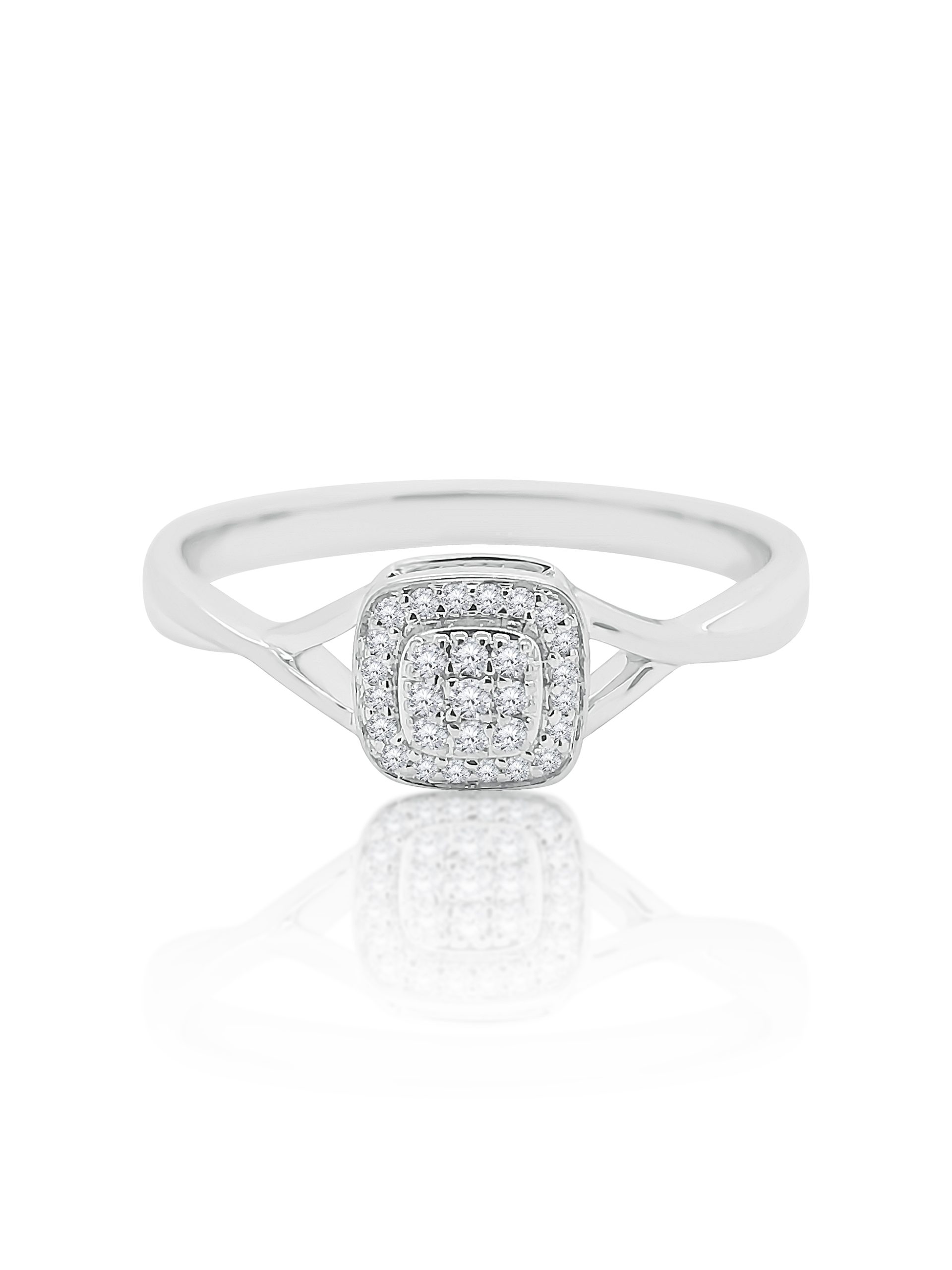 9ct White Gold 0.13ct Diamond Cushion Halo Cluster Ring