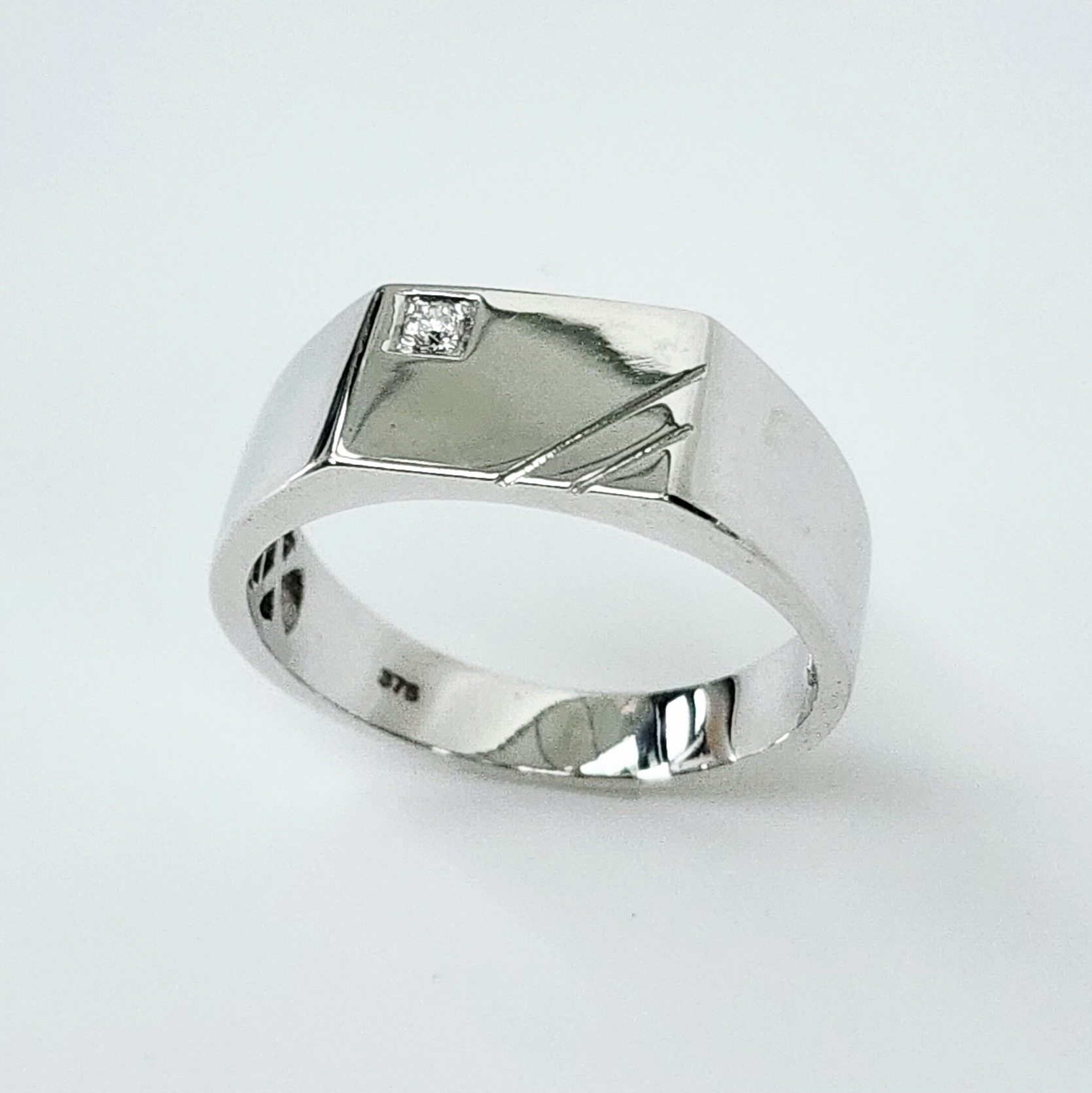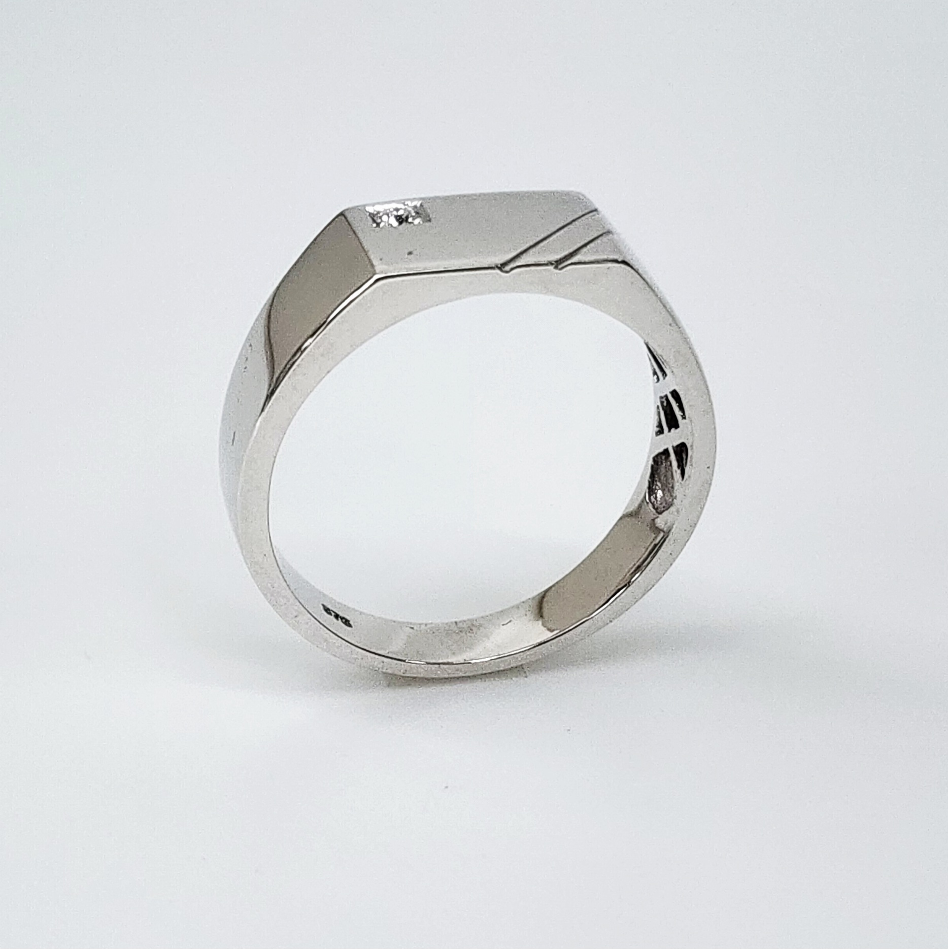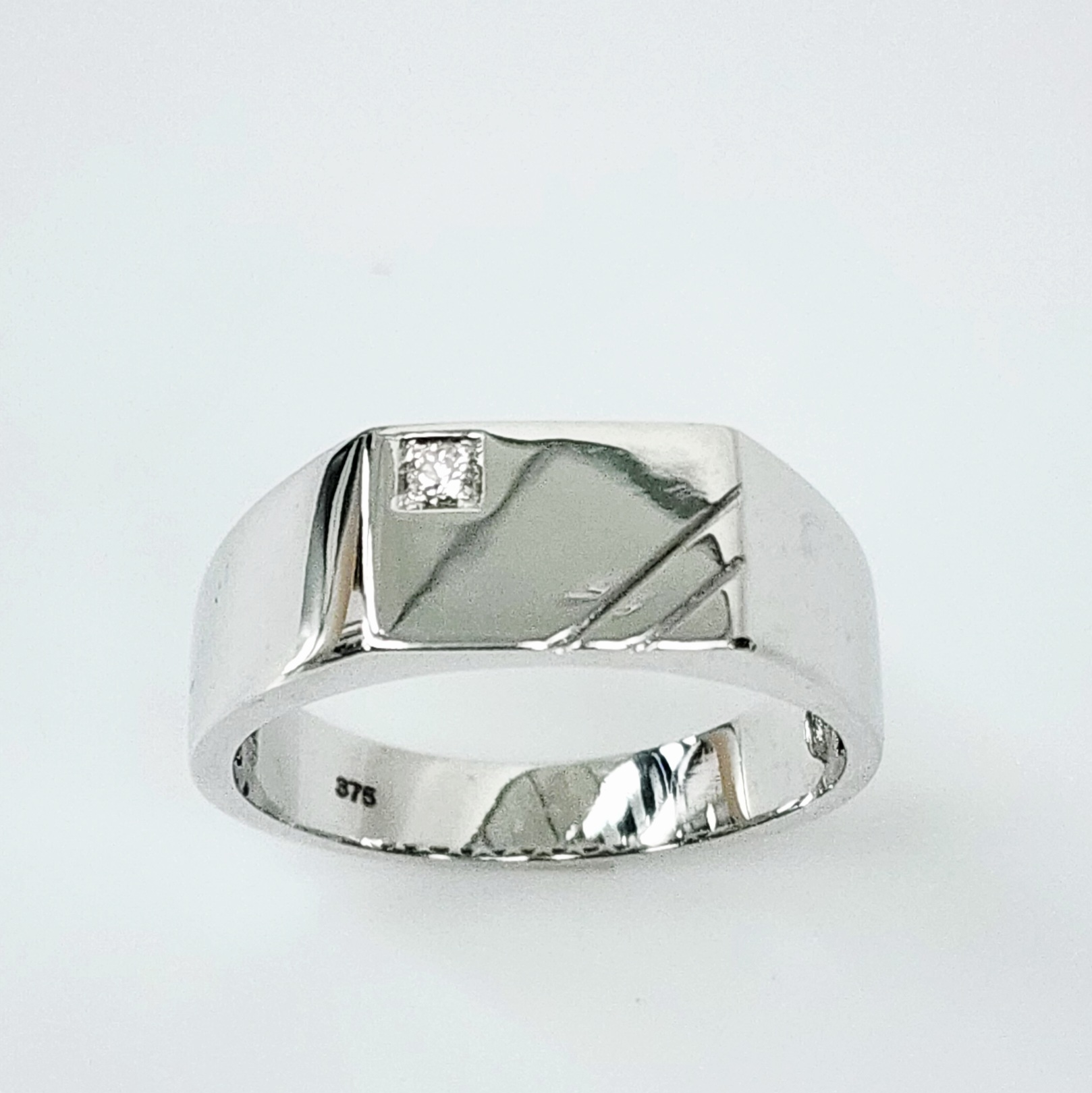 9ct White Gold Gents Signet Ring with Diamond Setting – D8180/9W