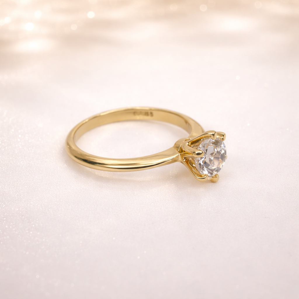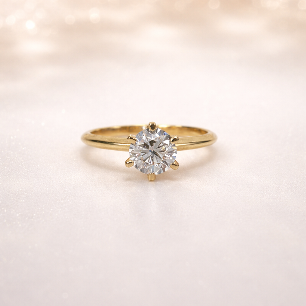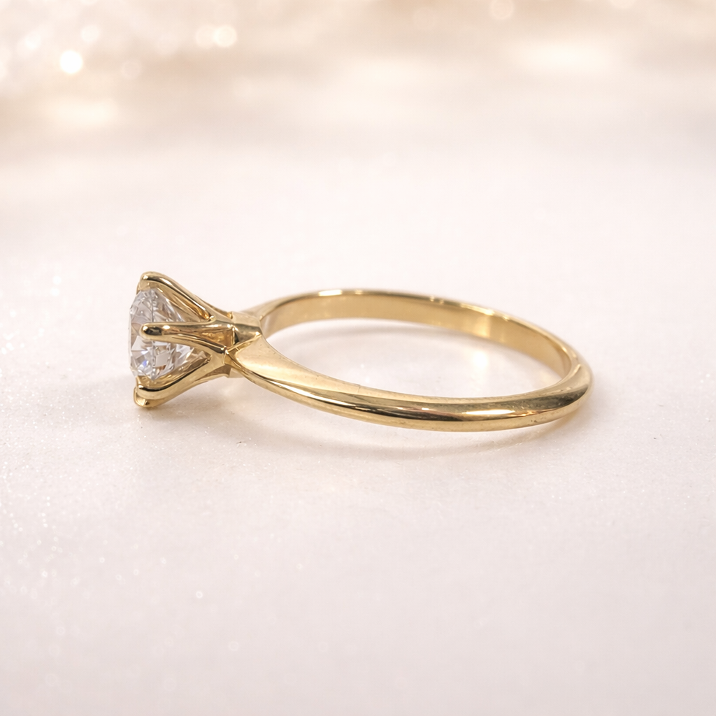 9ct Yellow Gold 1.08ct Lab Grown Diamond Solitaire Ring – Round Cut EF VS | 6 Claw Setting – AURG595