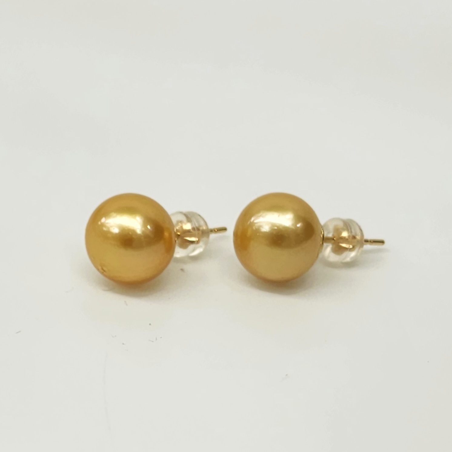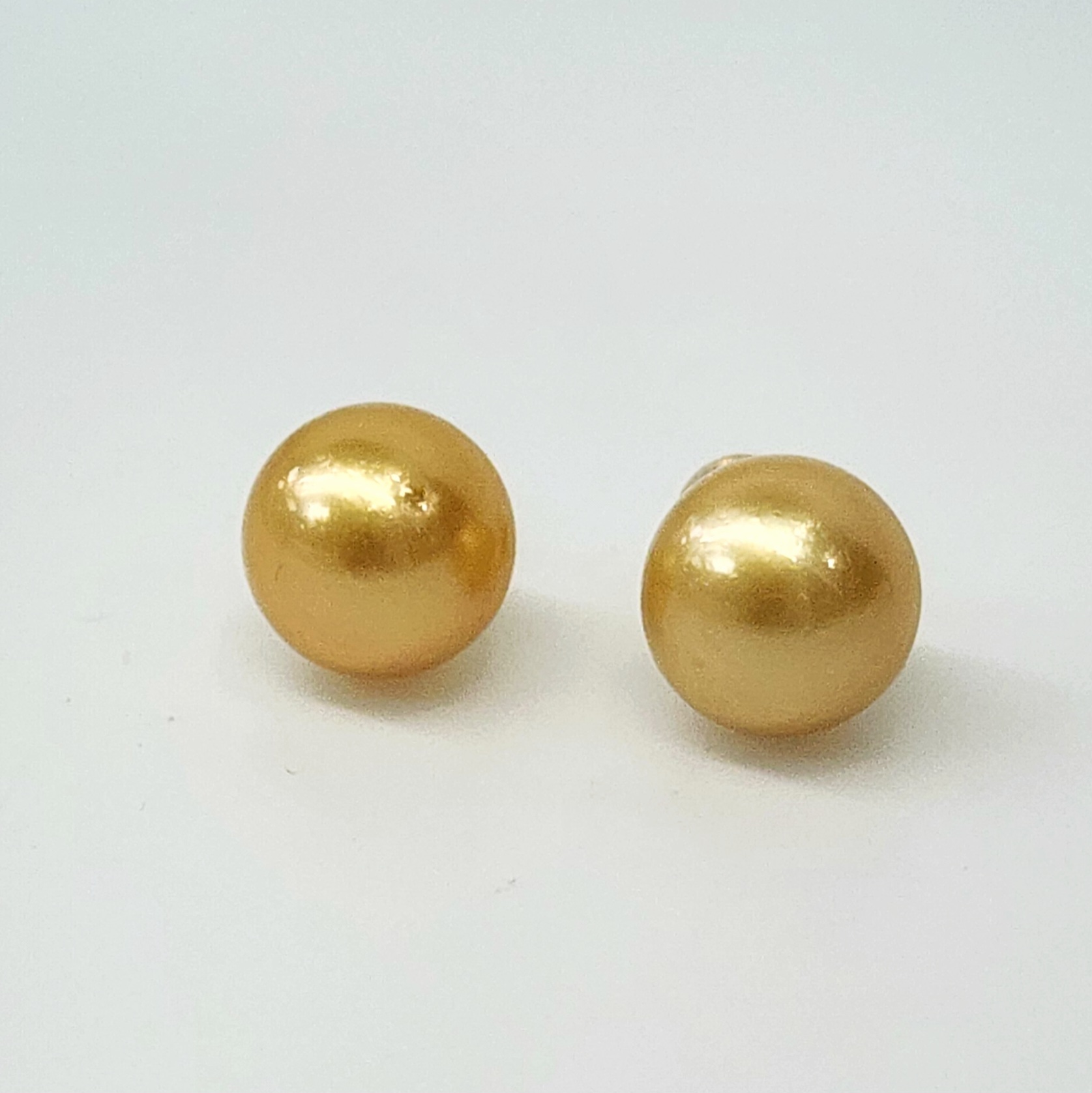 9ct Yellow Gold 11mm Southsea Golden Pearl Stud Earrings
