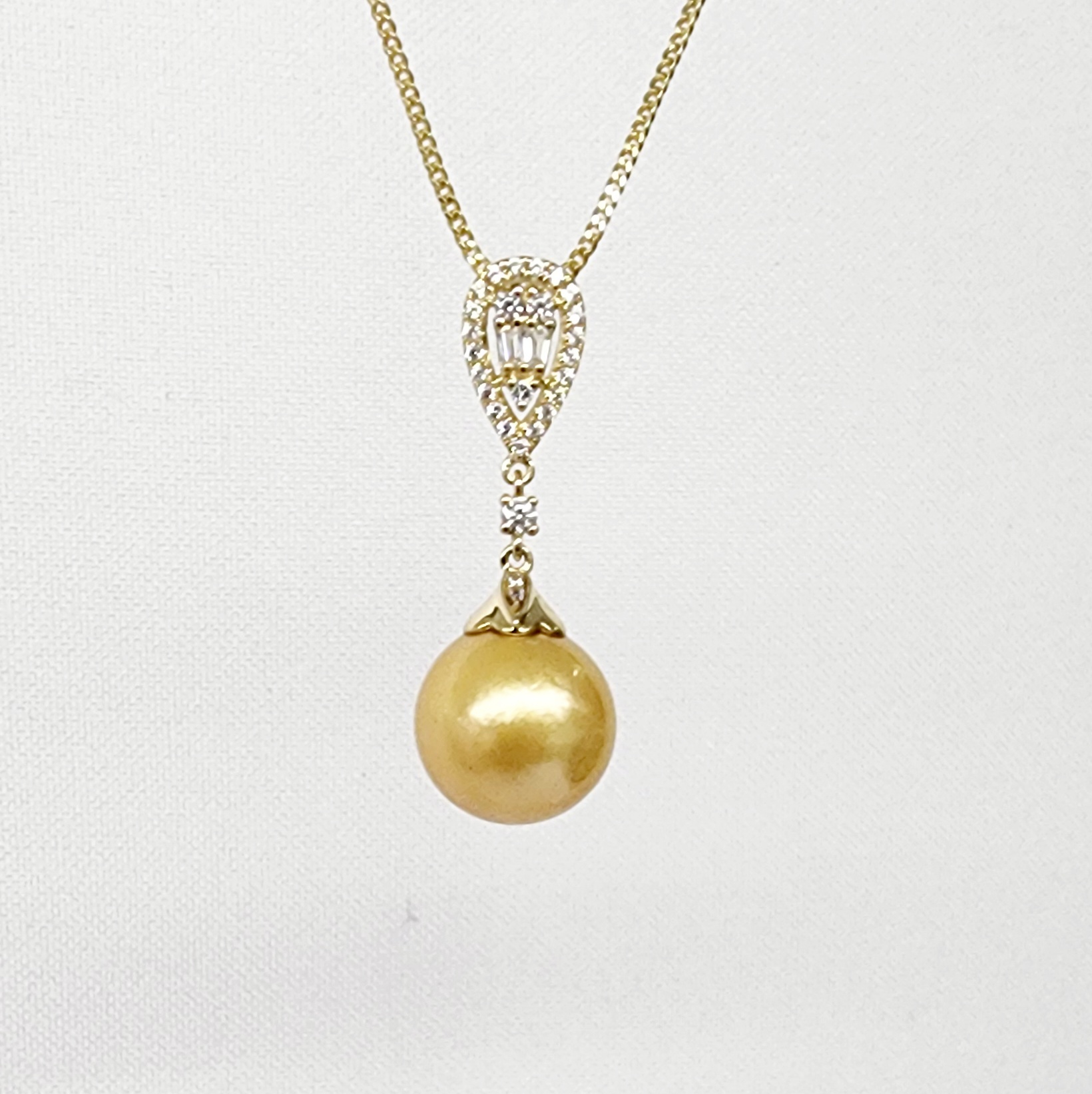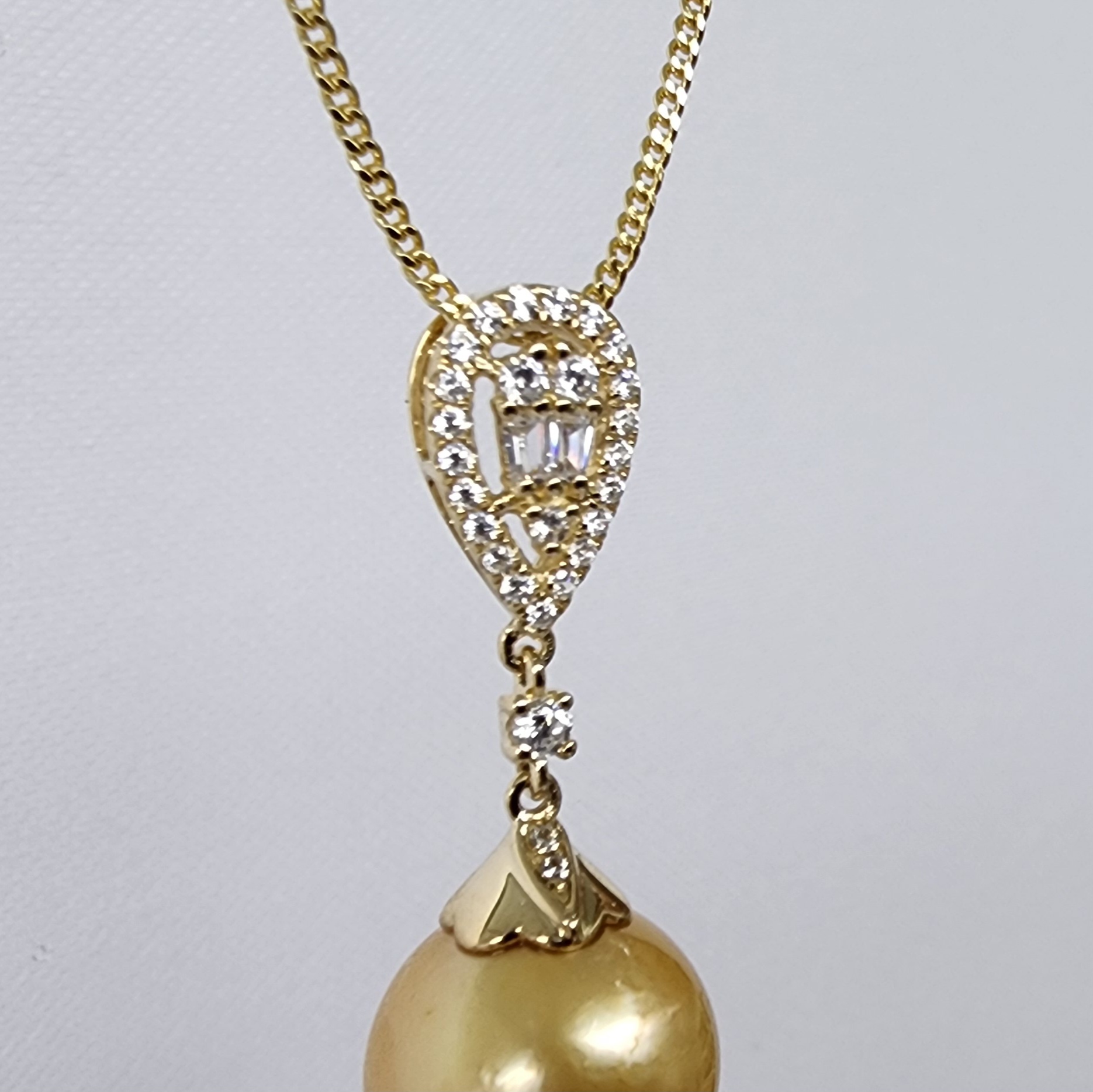 9ct Yellow Gold 12mm Round Southsea Golden Pearl with Cubic Zirconia Setting Pendant – YP20041155/3