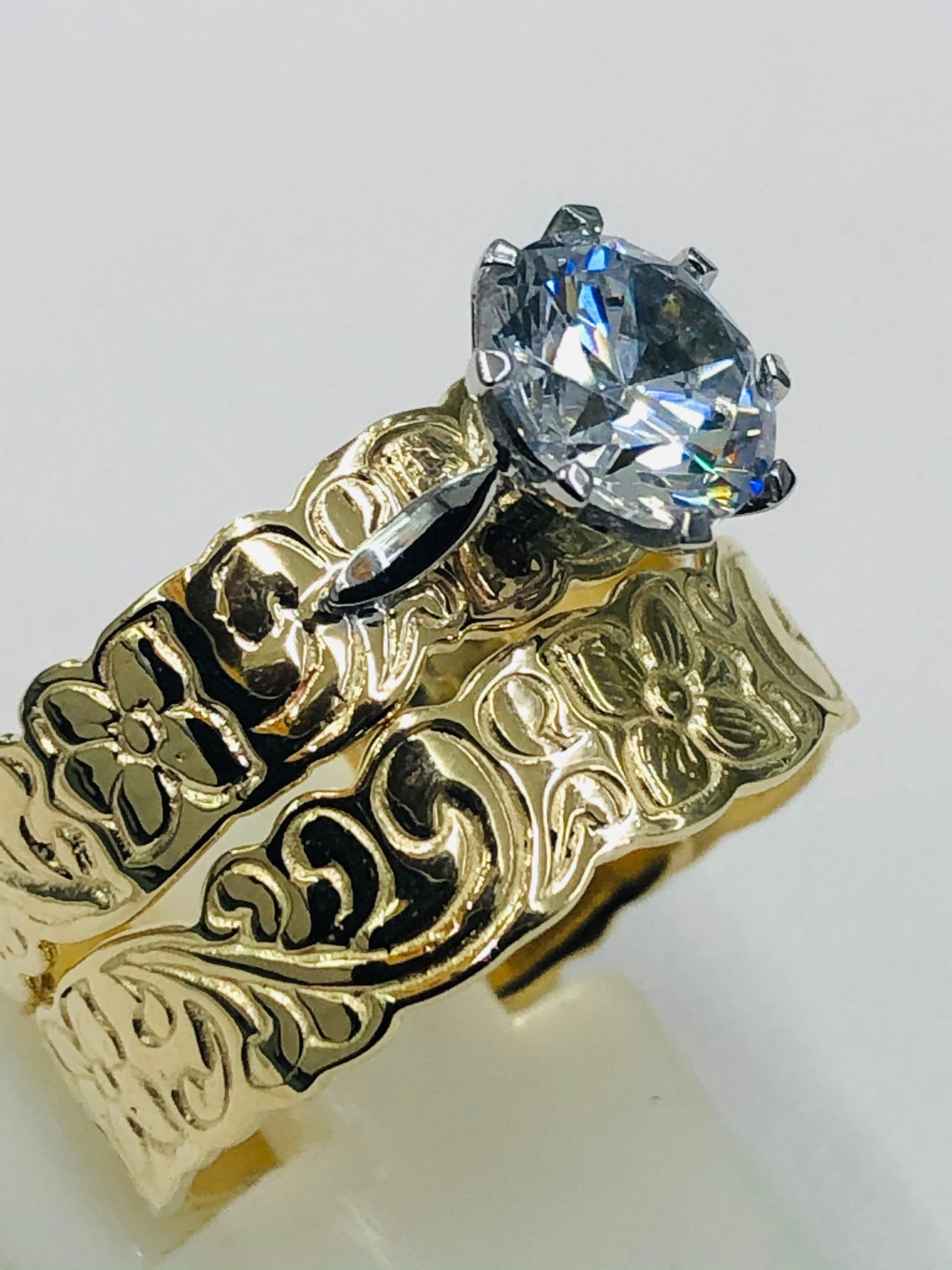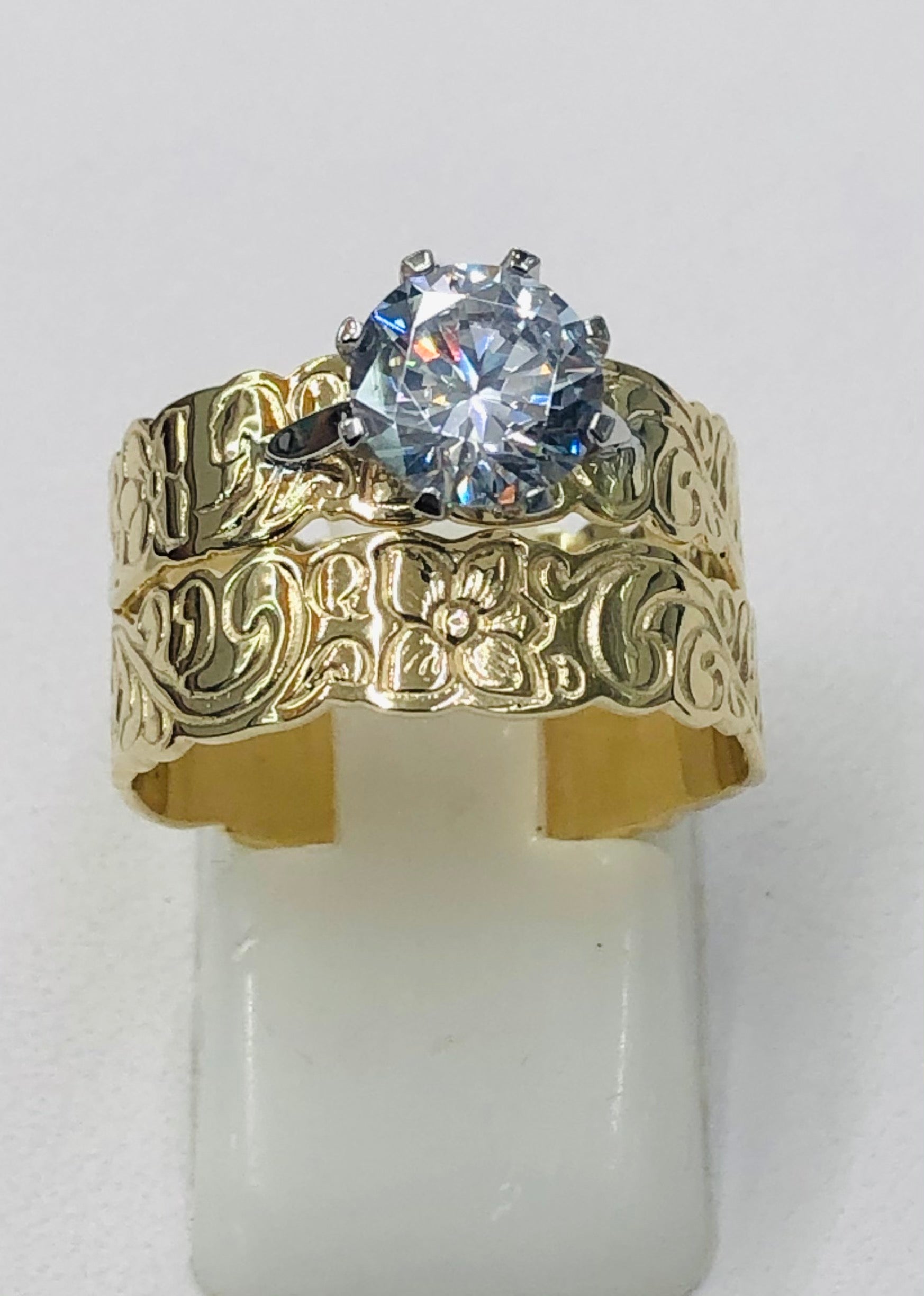 9ct Yellow Gold 2 Piece Hawaiian Design 5mm Wide Set With 7.50mm Round Cubic Zirconia Stone Setting