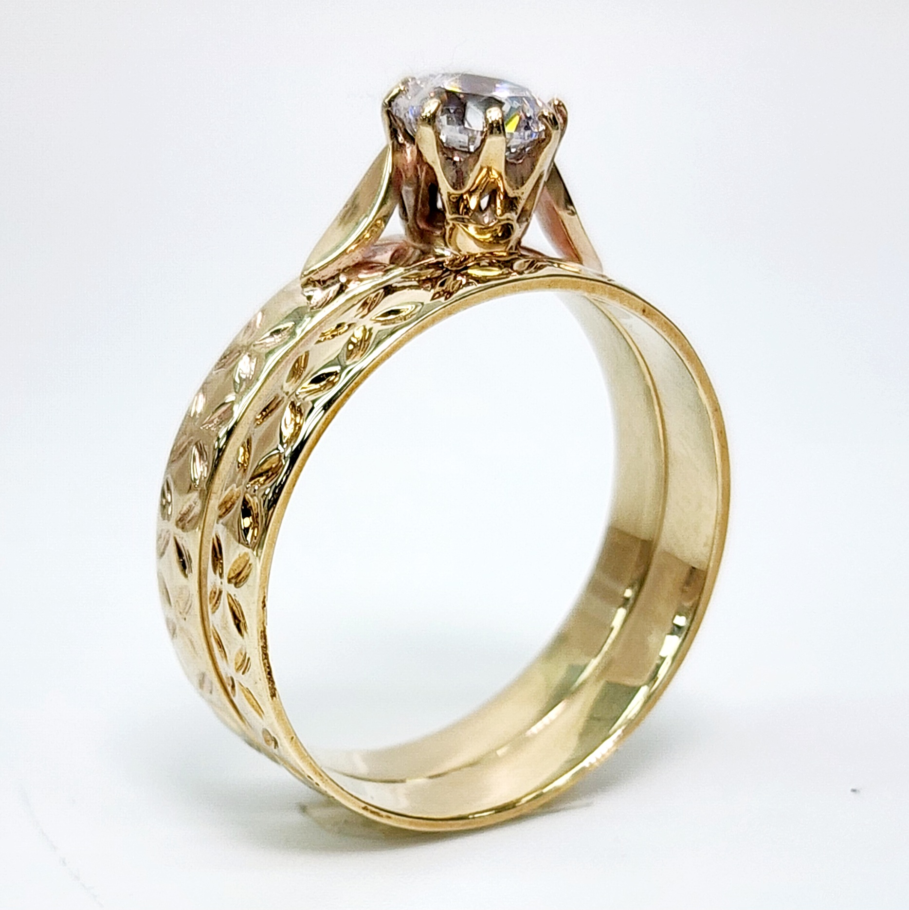 9ct Yellow Gold 2 Piece Wedding Set with Polynesian Design and Cubic Zirconia Setting