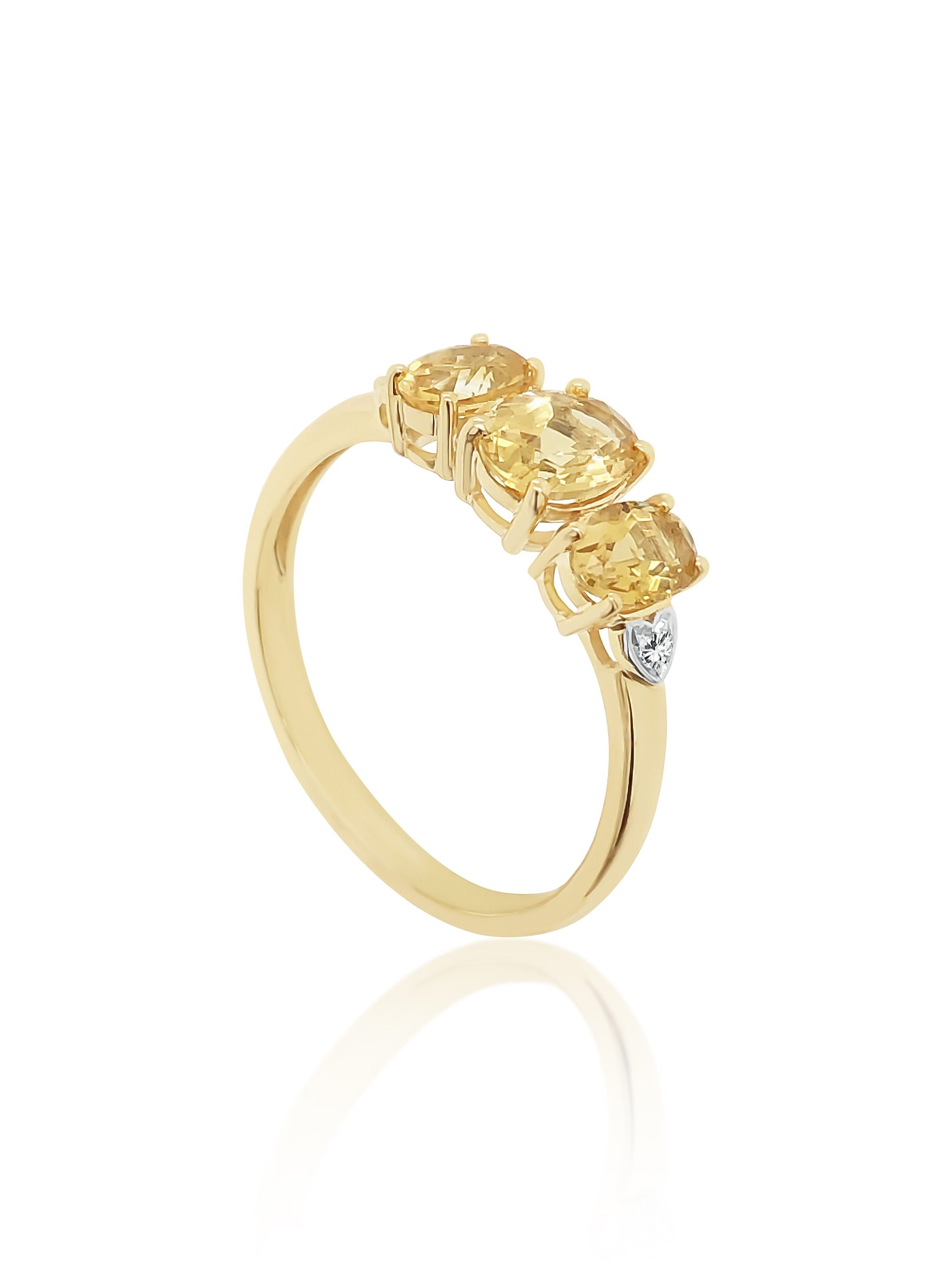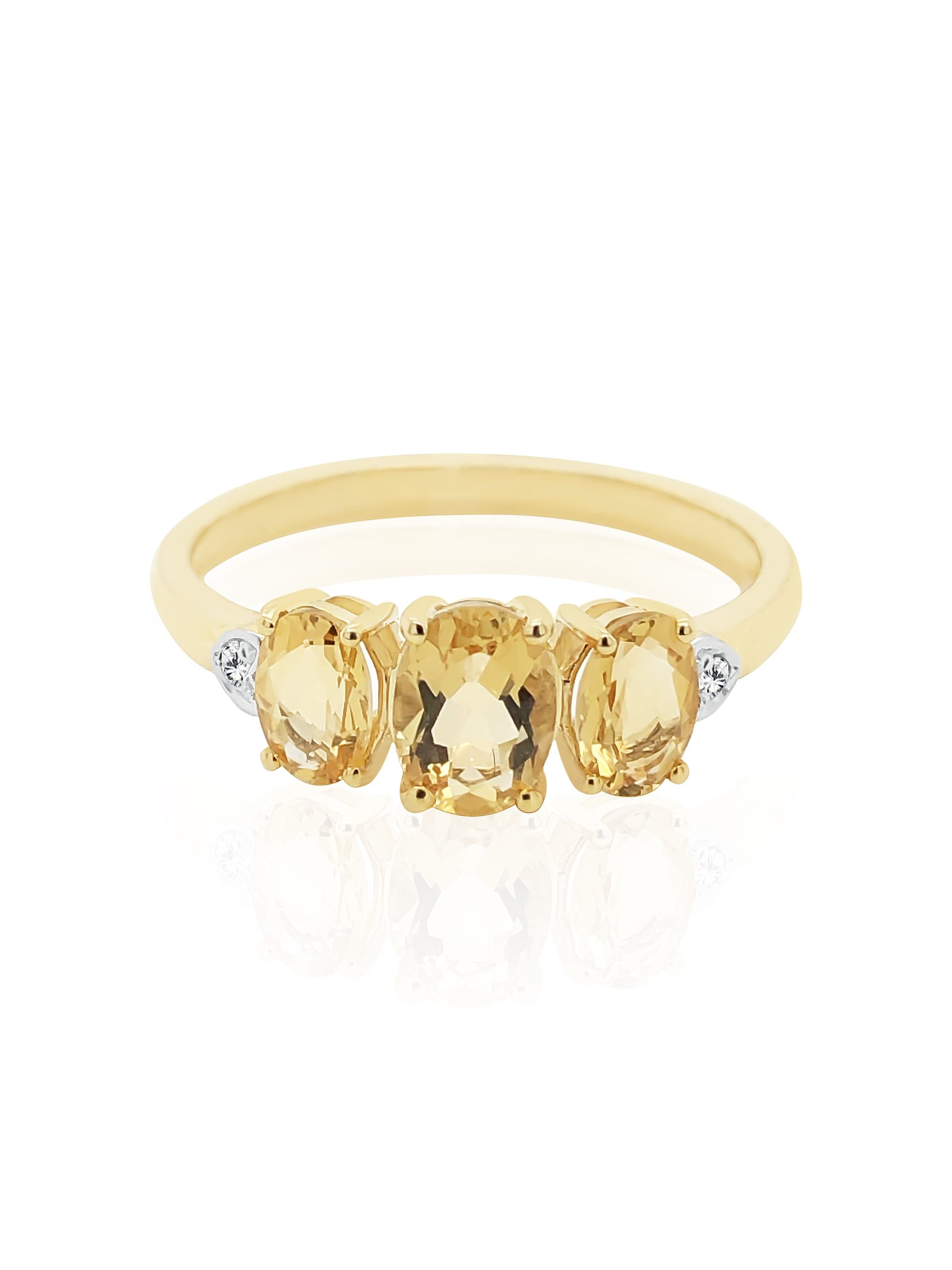 9ct Yellow Gold 3 Stone Citrine Ring with Diamonds