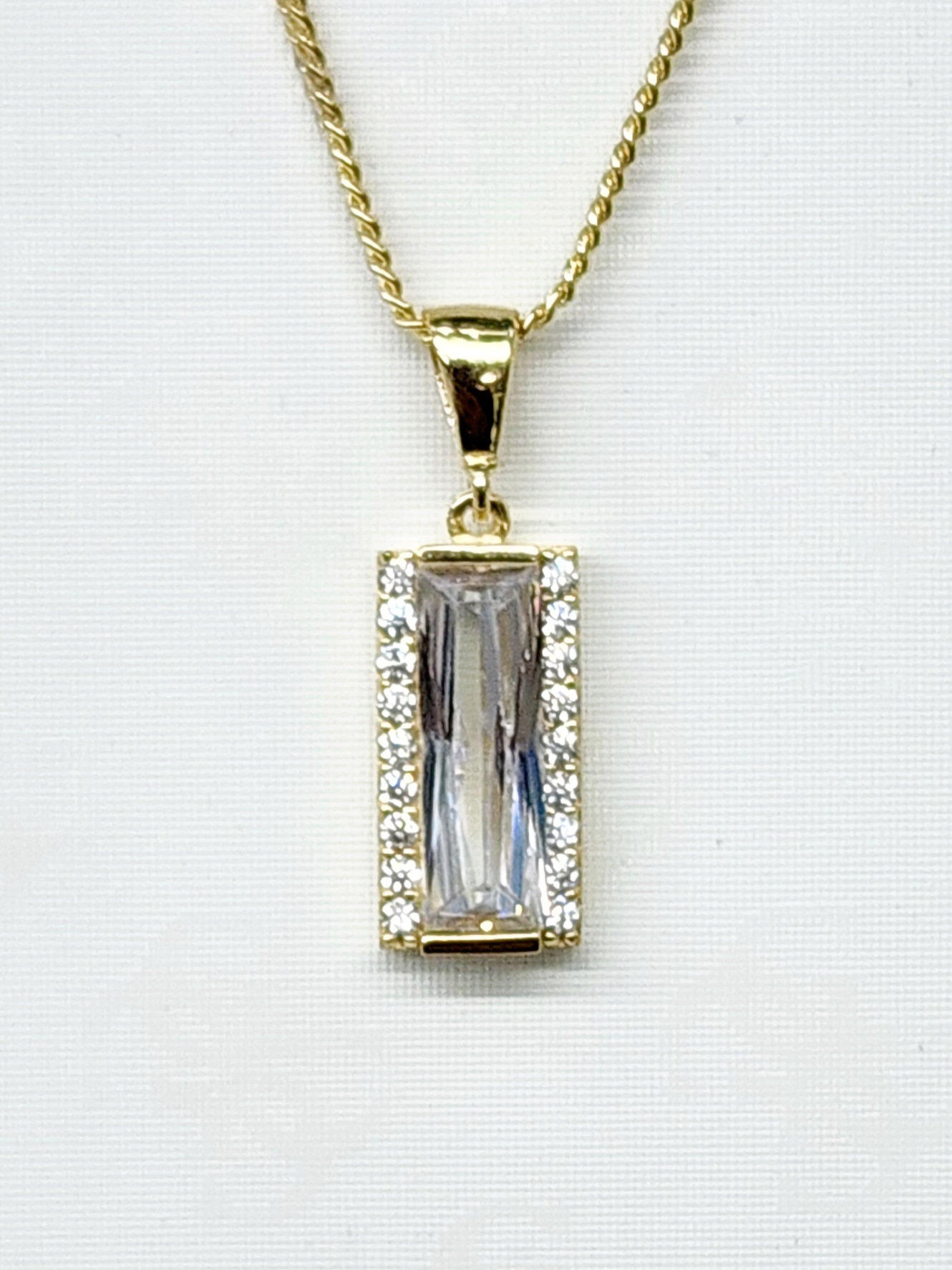 9ct Yellow Gold 6.7mm x 13mm Rectangle CZ with CZ Border Pendant