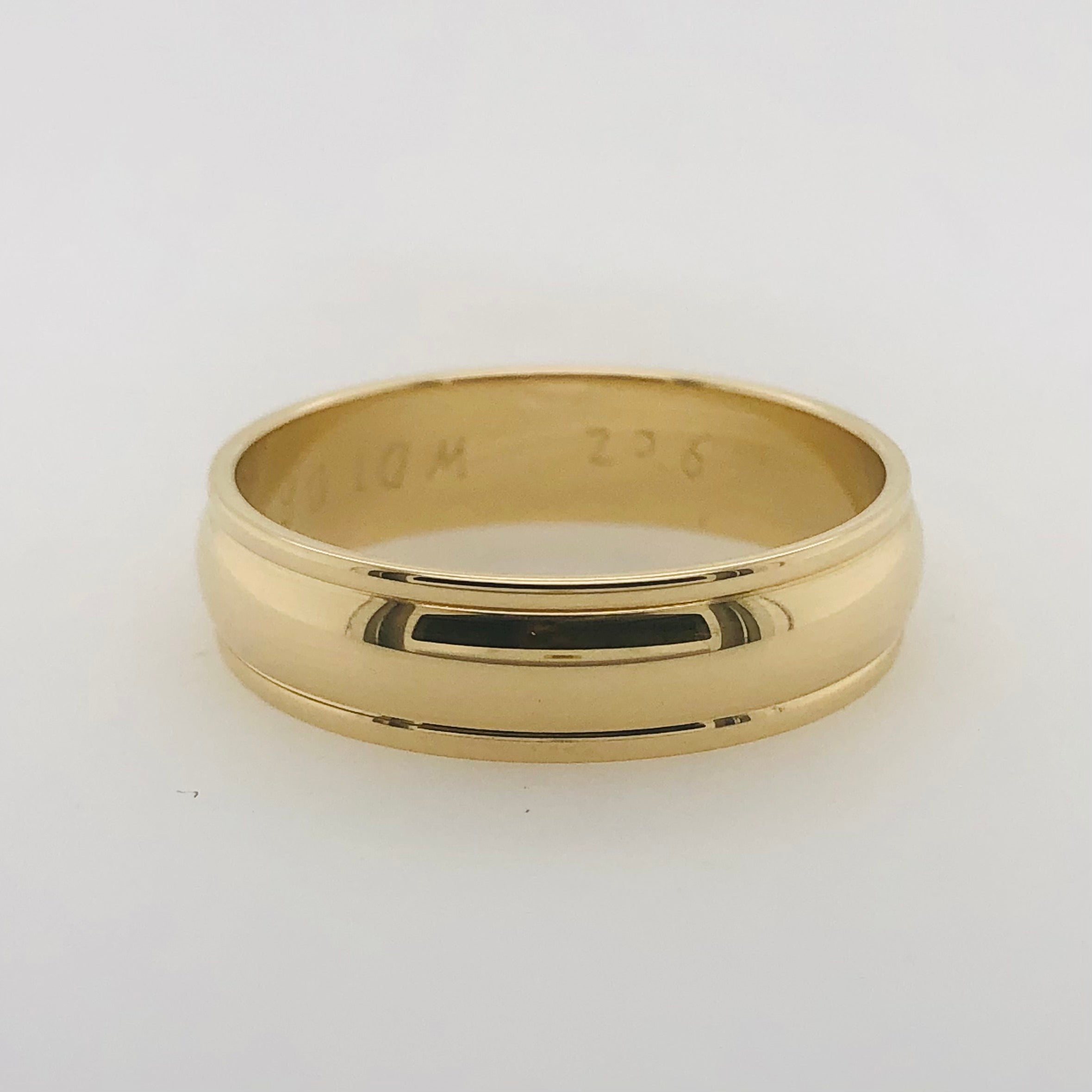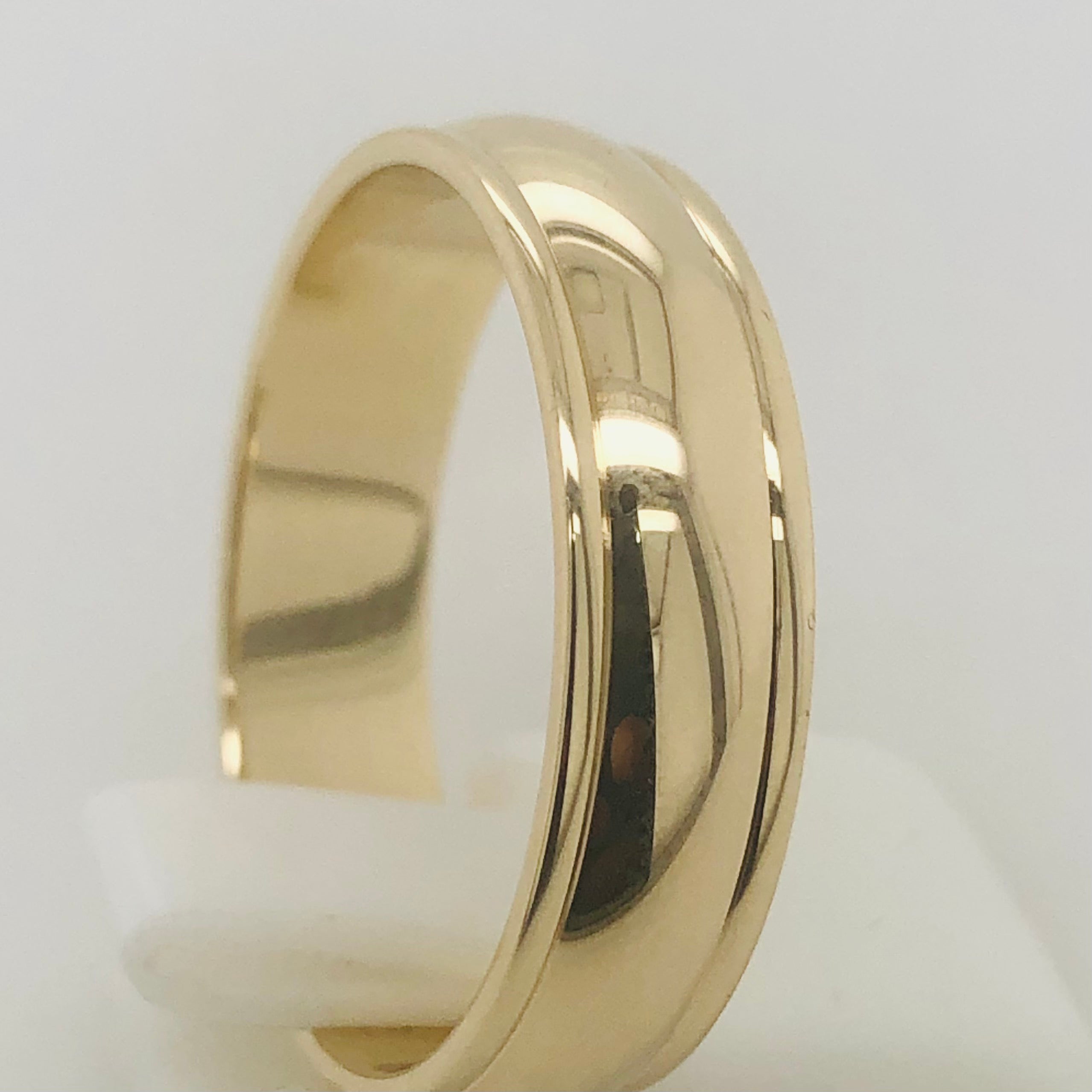 Simple yet elegant, this 6mm wide wedding band in 9ct yellow gold is the epitome of timeless style. Its smooth finish and classic design make it a perfect symbol of enduring love.