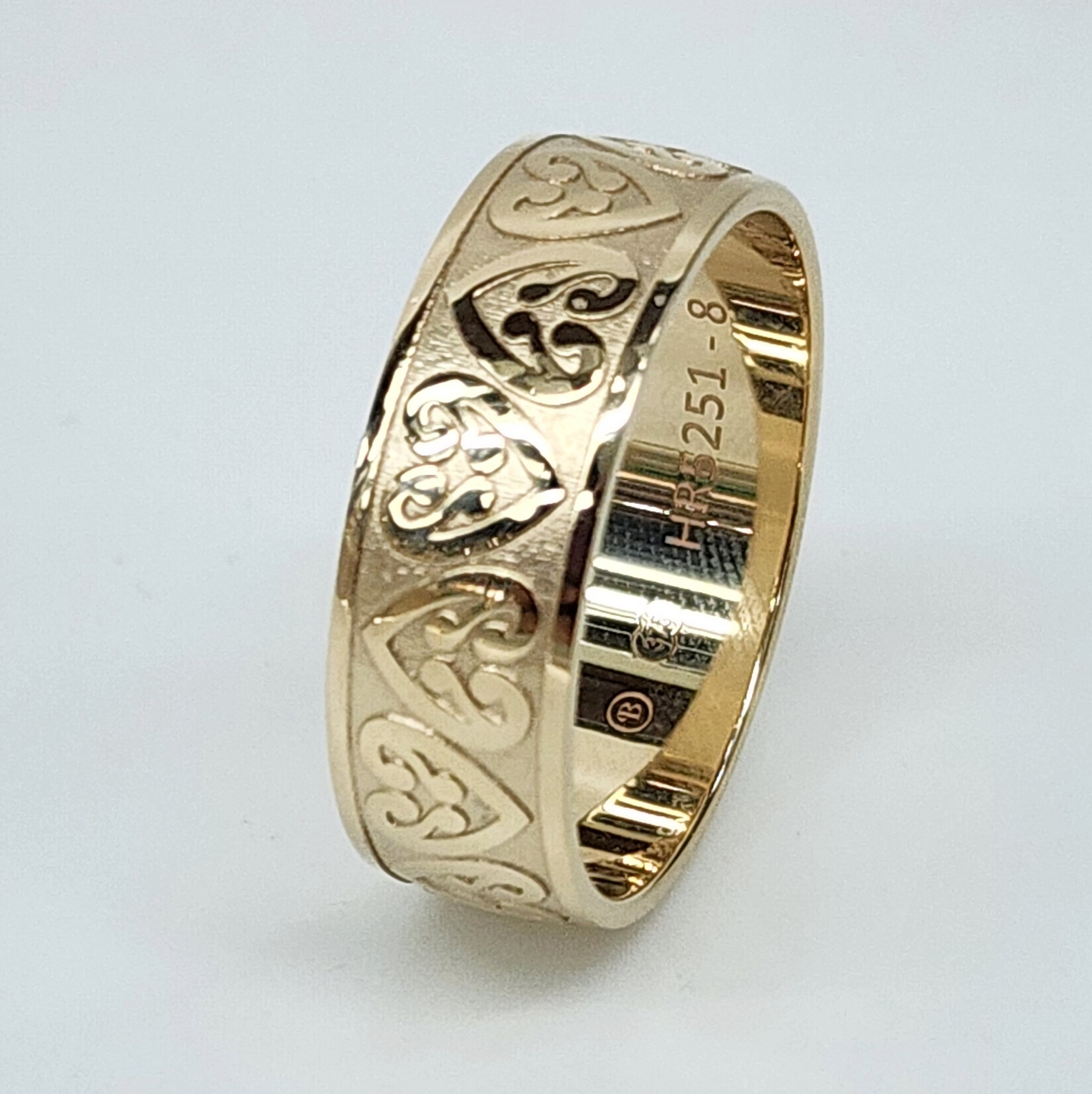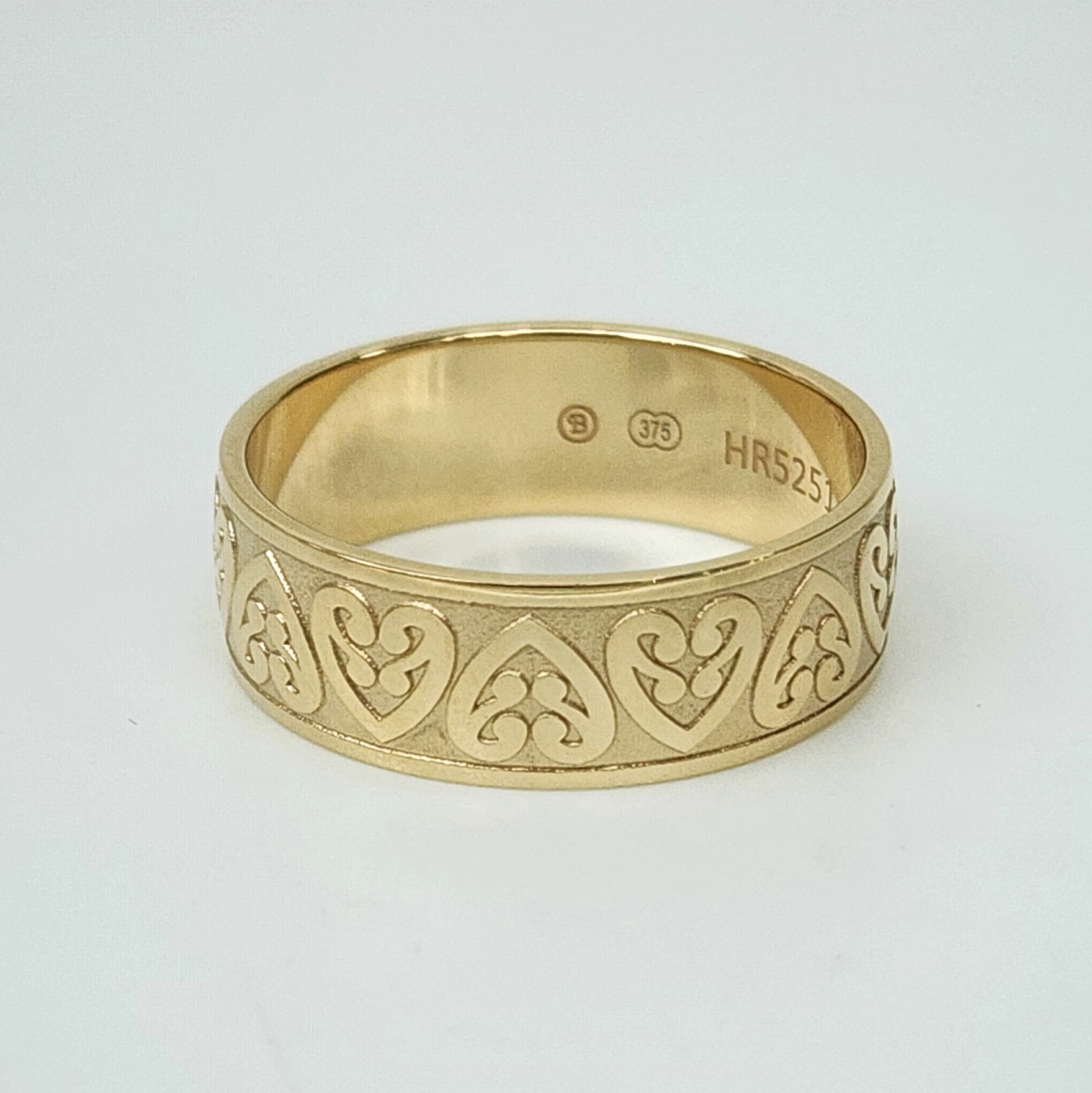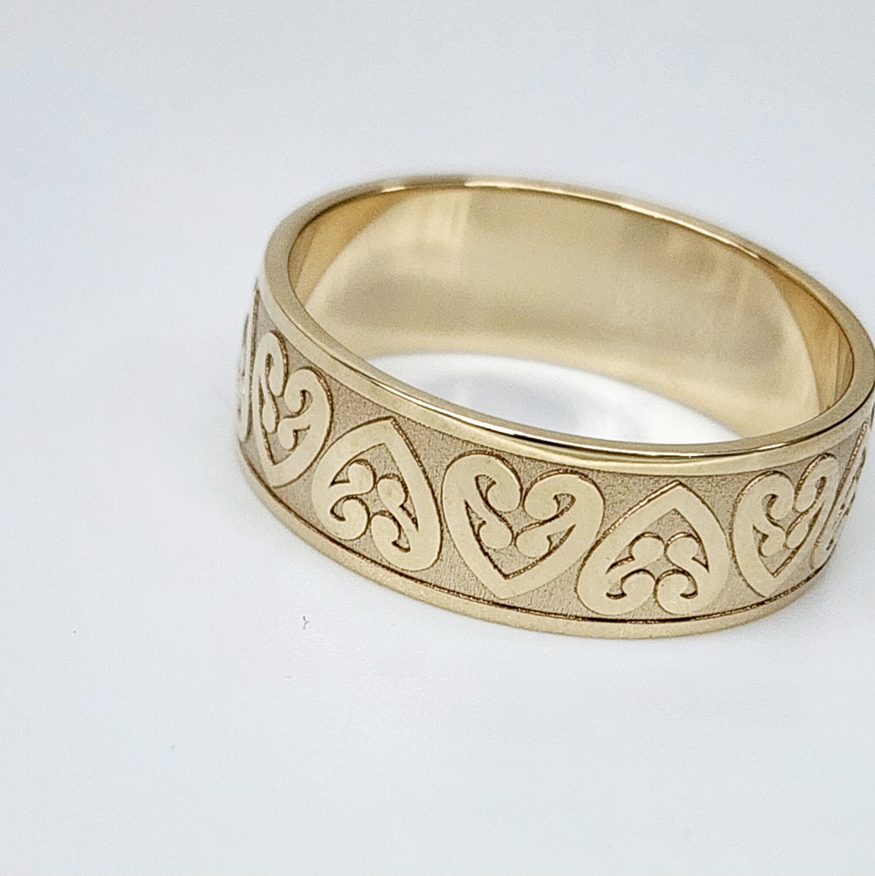 9ct Yellow Gold 8mm Wide Kowhaiwhai Patterned Wedding Ring