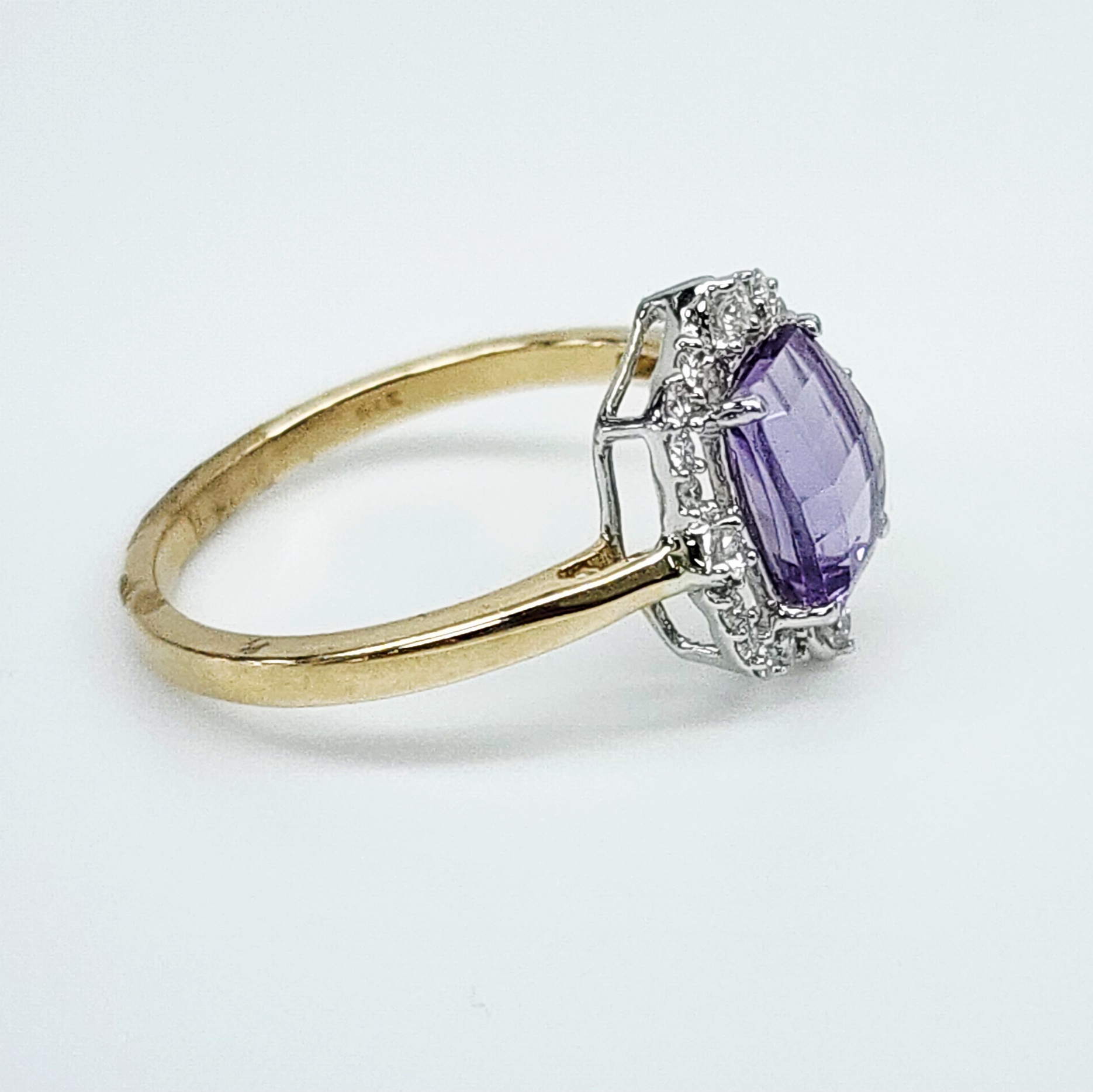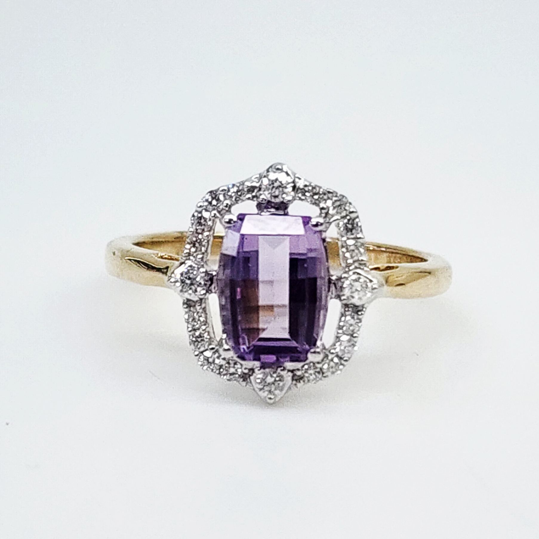9ct Yellow Gold Amethyst & Diamond Halo Ring 6x8mm Cushion, TDW 0.18ct – 5R0017