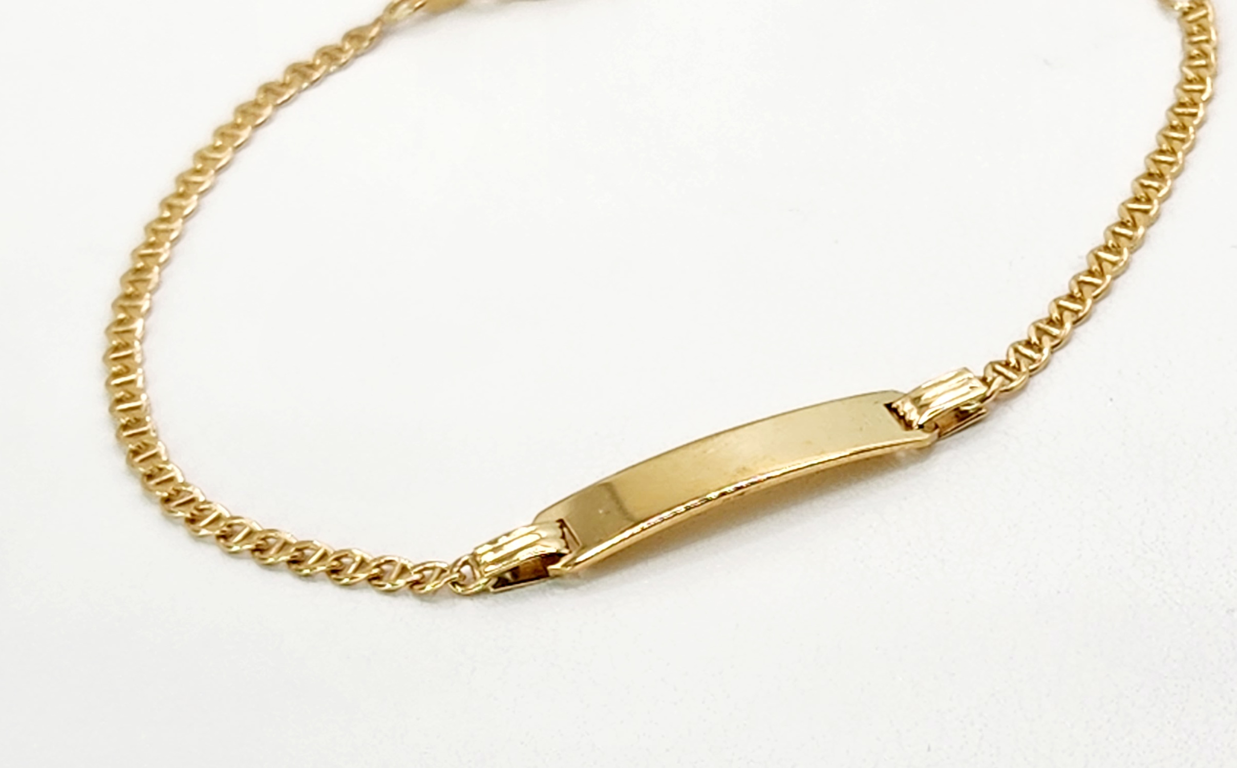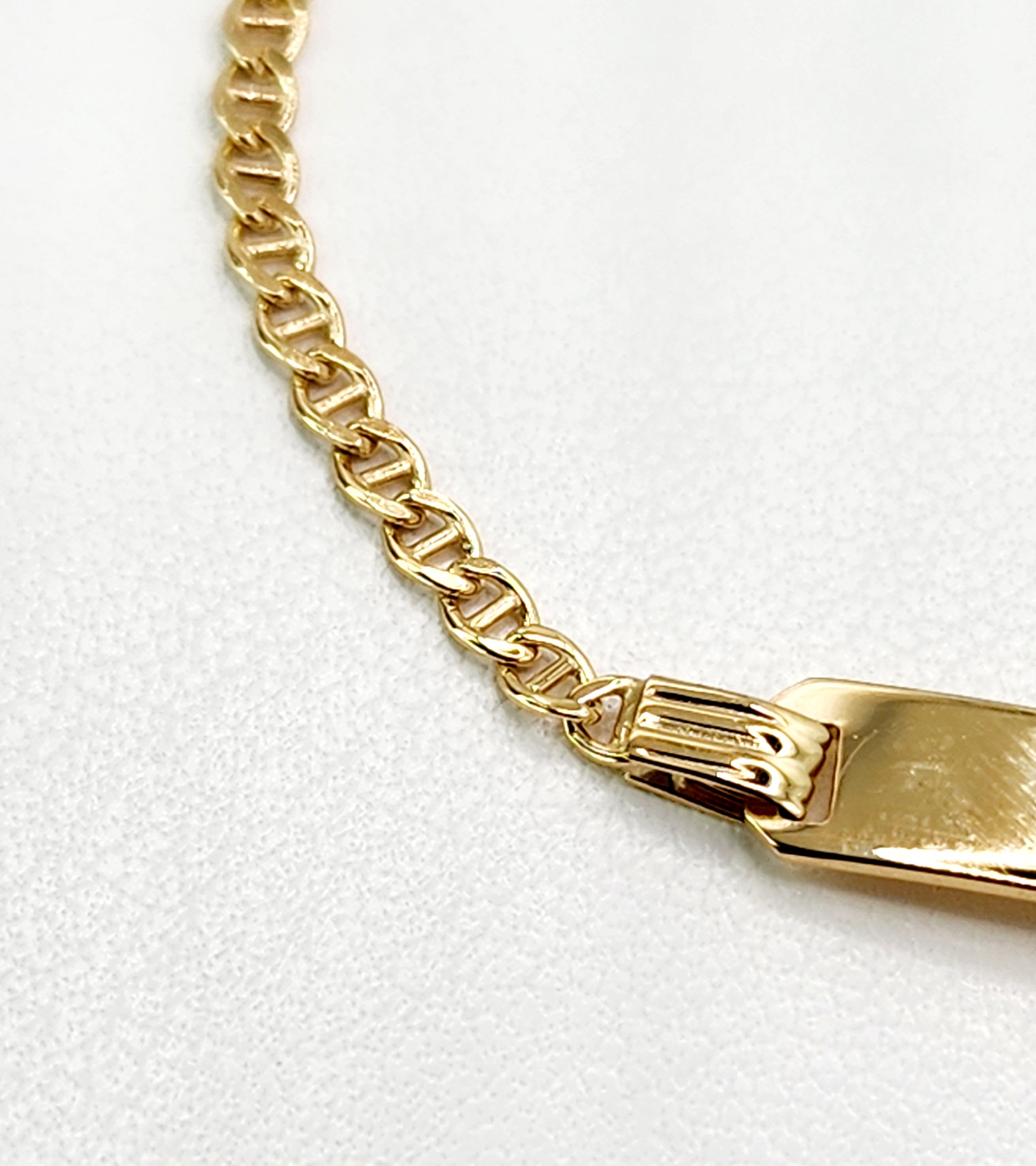 A wonderful gift to engrave your special message, this 9ct yellow gold anchor link bracelet features a plain ID plate in the centre.