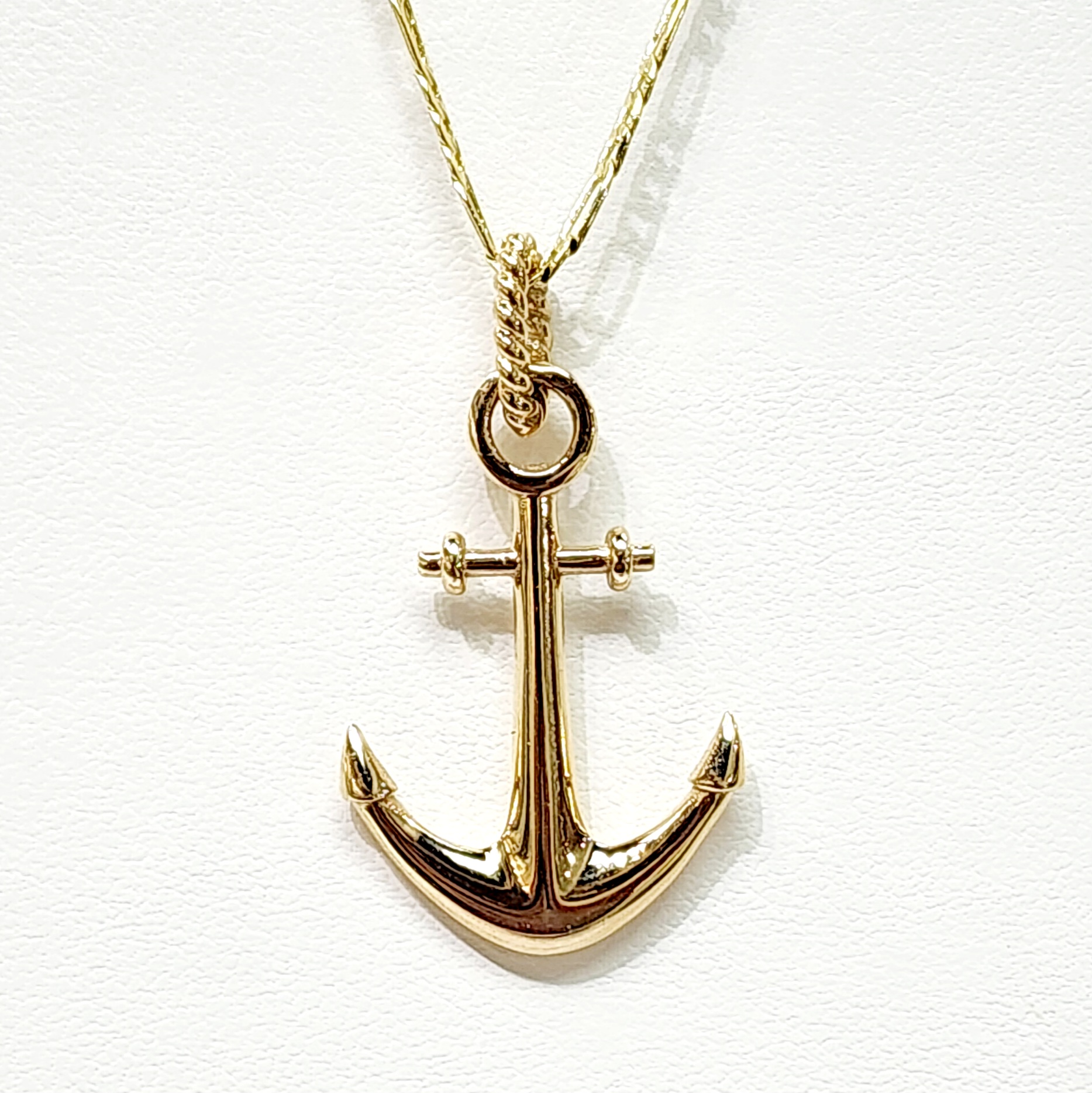 This anchor pendant takes the form of a real marine anchor, it is made of solid gold. The anchor is 33 millimeters high and 20 millimeters wide.