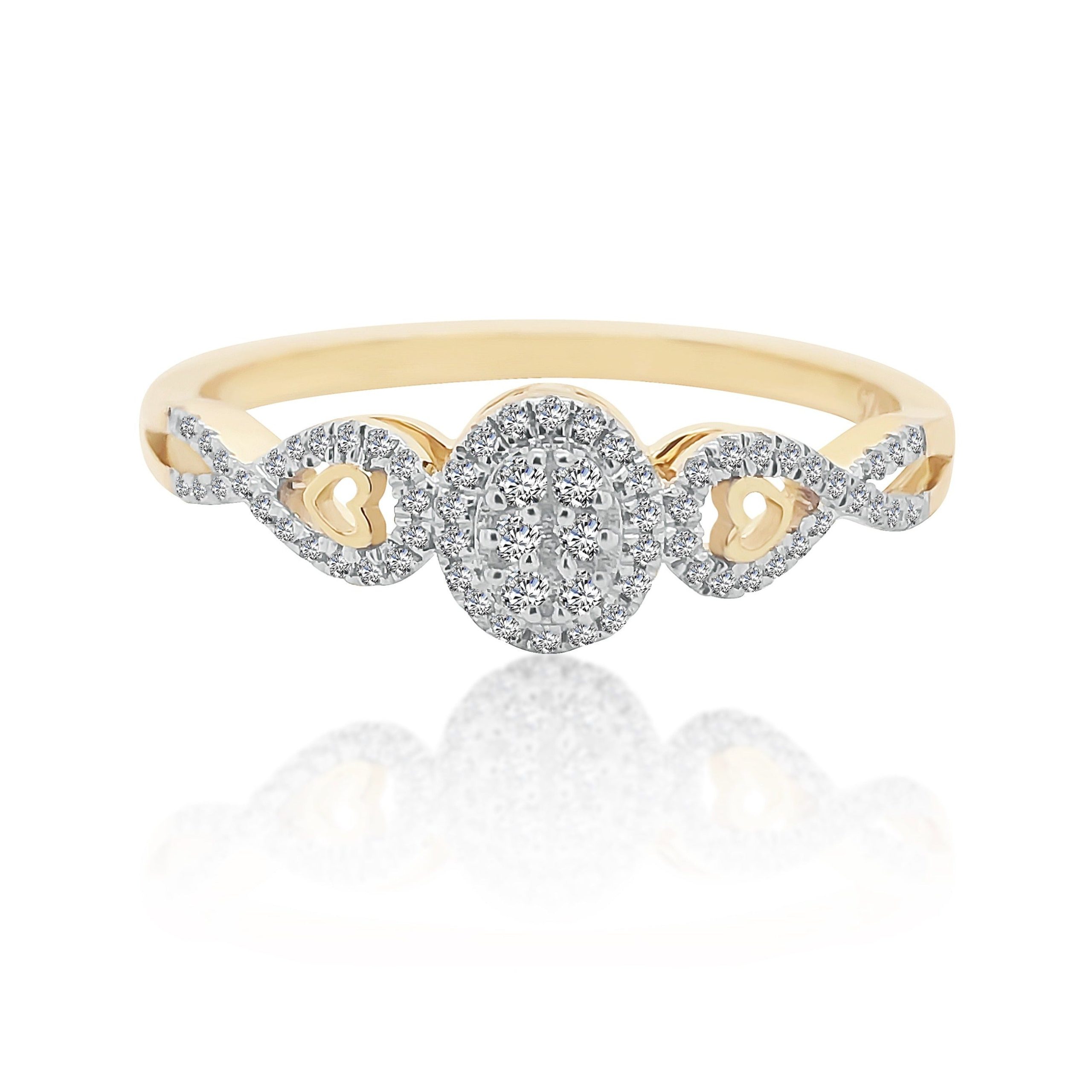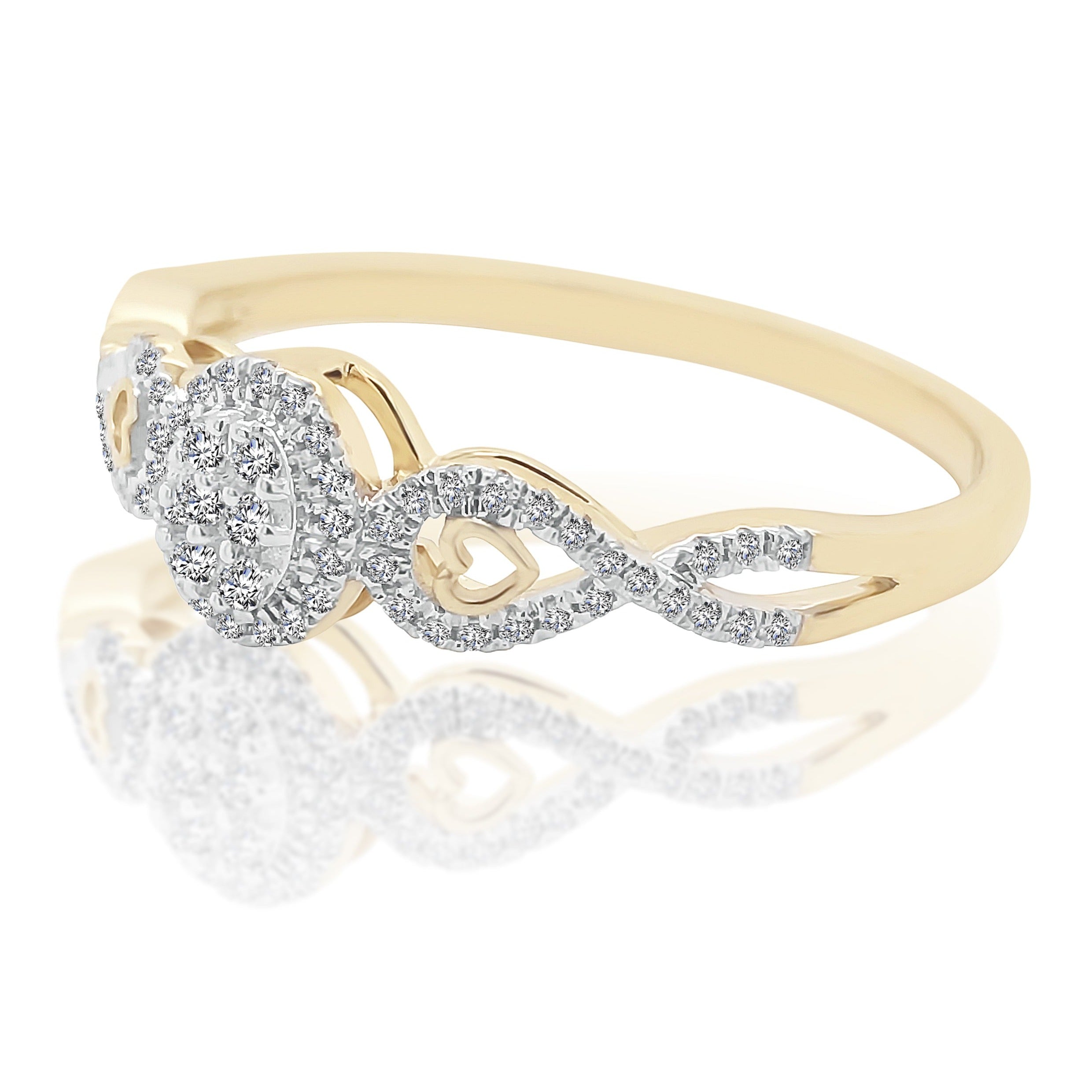 This exquisite 9ct yellow gold crossover oval cluster ring features sparkling cubic zirconia stones and stone-set shoulders, offering an eye-catching and elegant design for any occasion.
