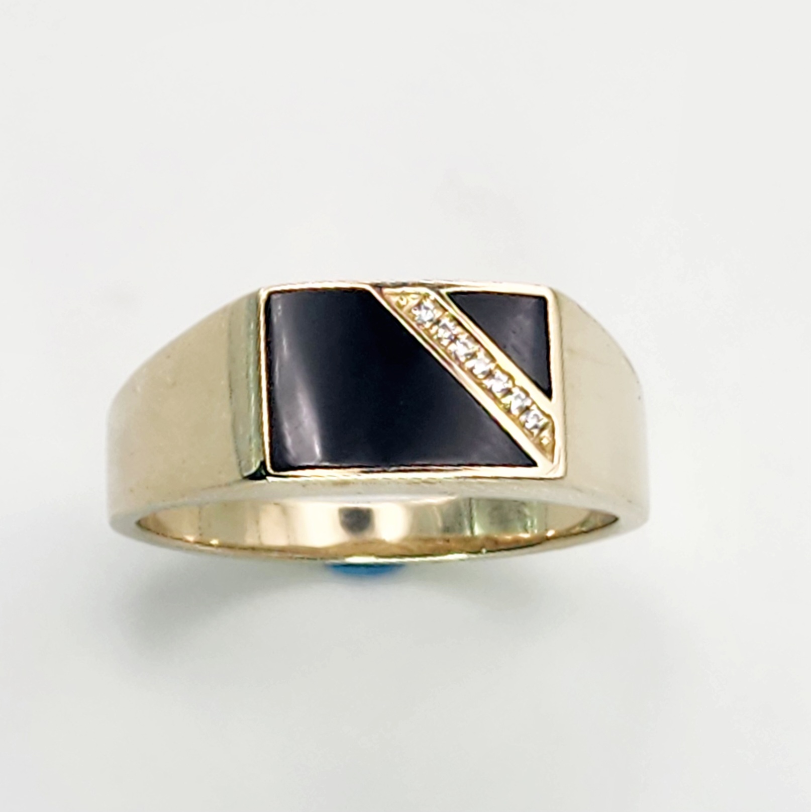 9ct Yellow Gold Black ONYX and Cubic Zirconia Ring
