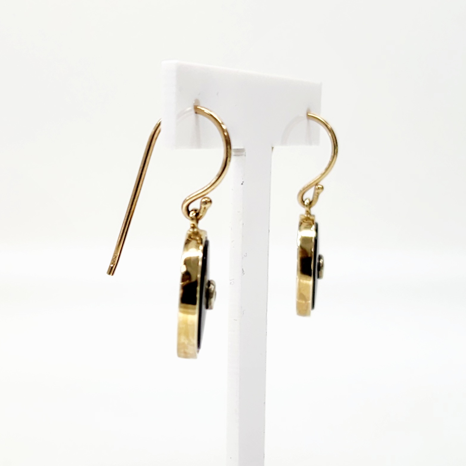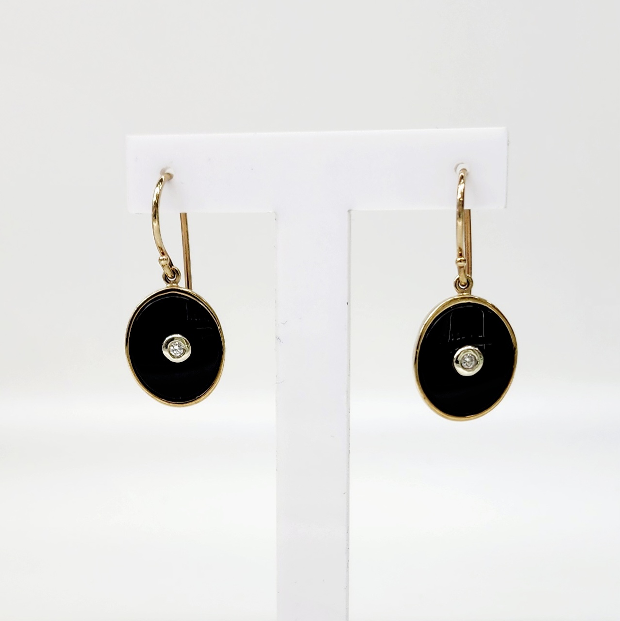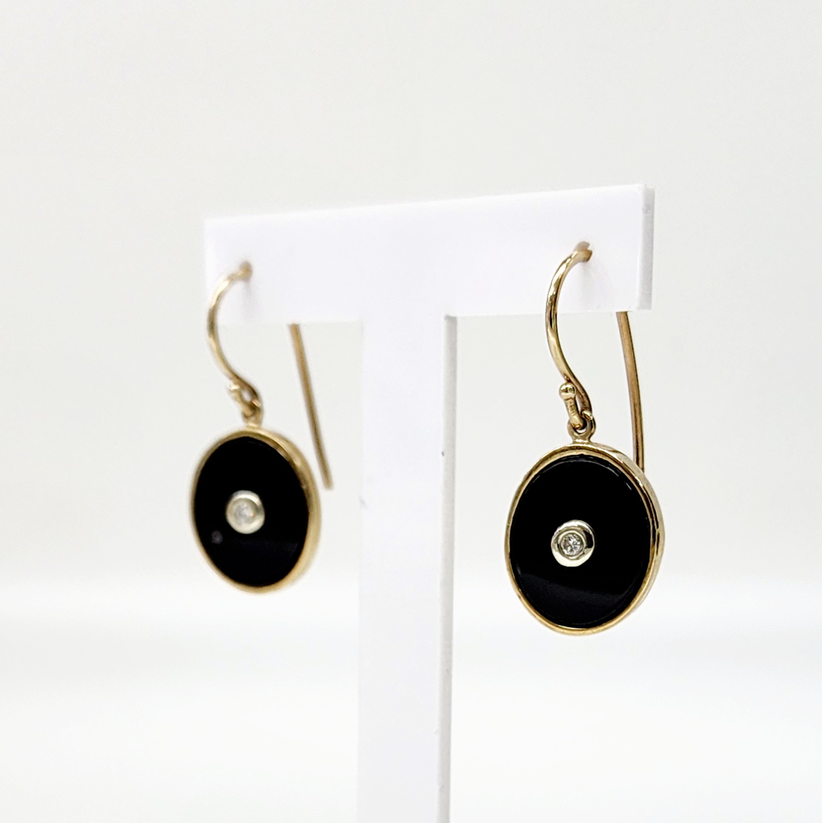 9ct Yellow Gold Black Onyx & Diamond Oval Bezel Set Hook Earrings