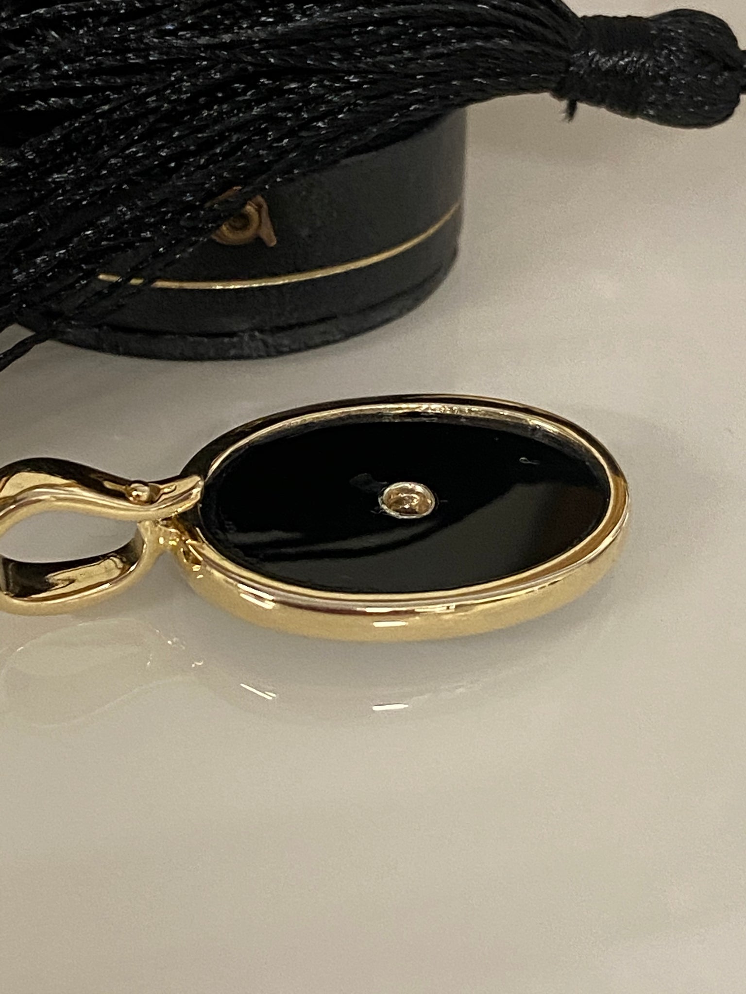 9ct Yellow Gold Black Onyx & Diamond Oval Enhancer Pendant